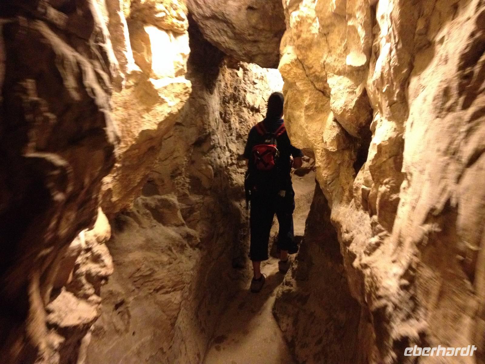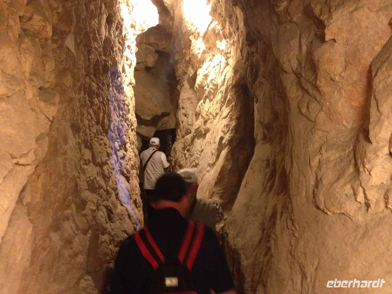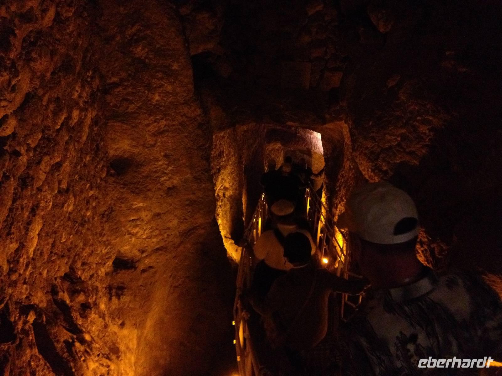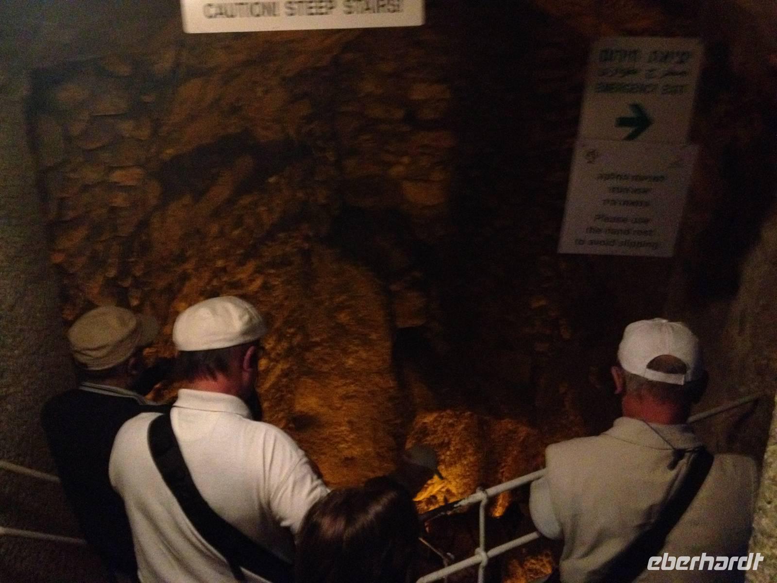 Durch einen ausgetrockneten Wasserkanal (wir hatten aber auch die Wahl für den noch funktionierenden Kanal) wandelten wir auf den Spuren der Geschichte im unterirdischen Jerusalem.