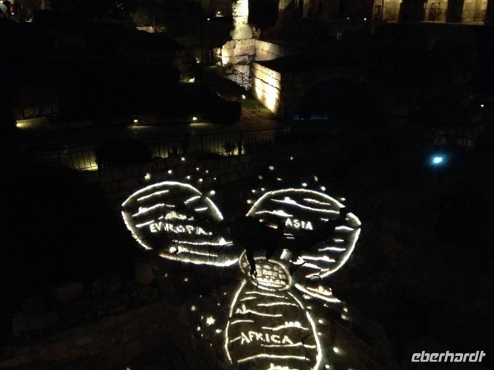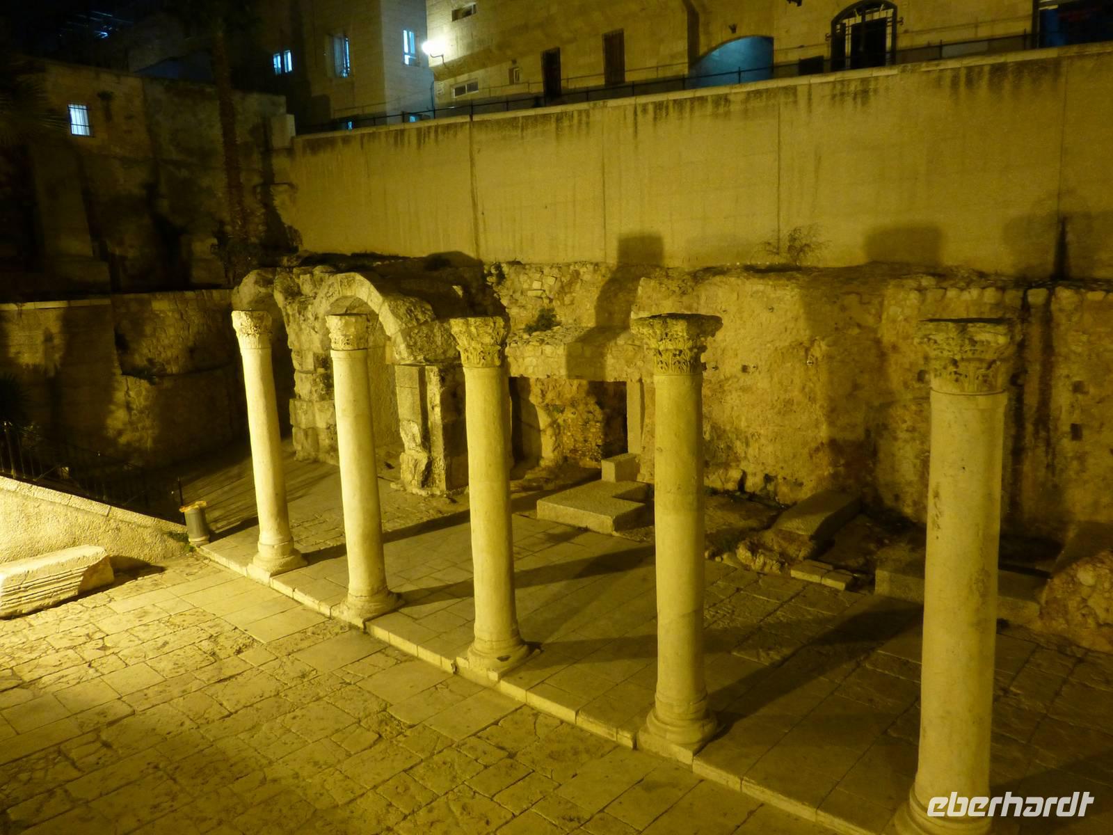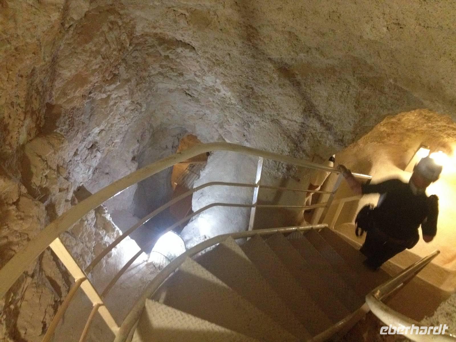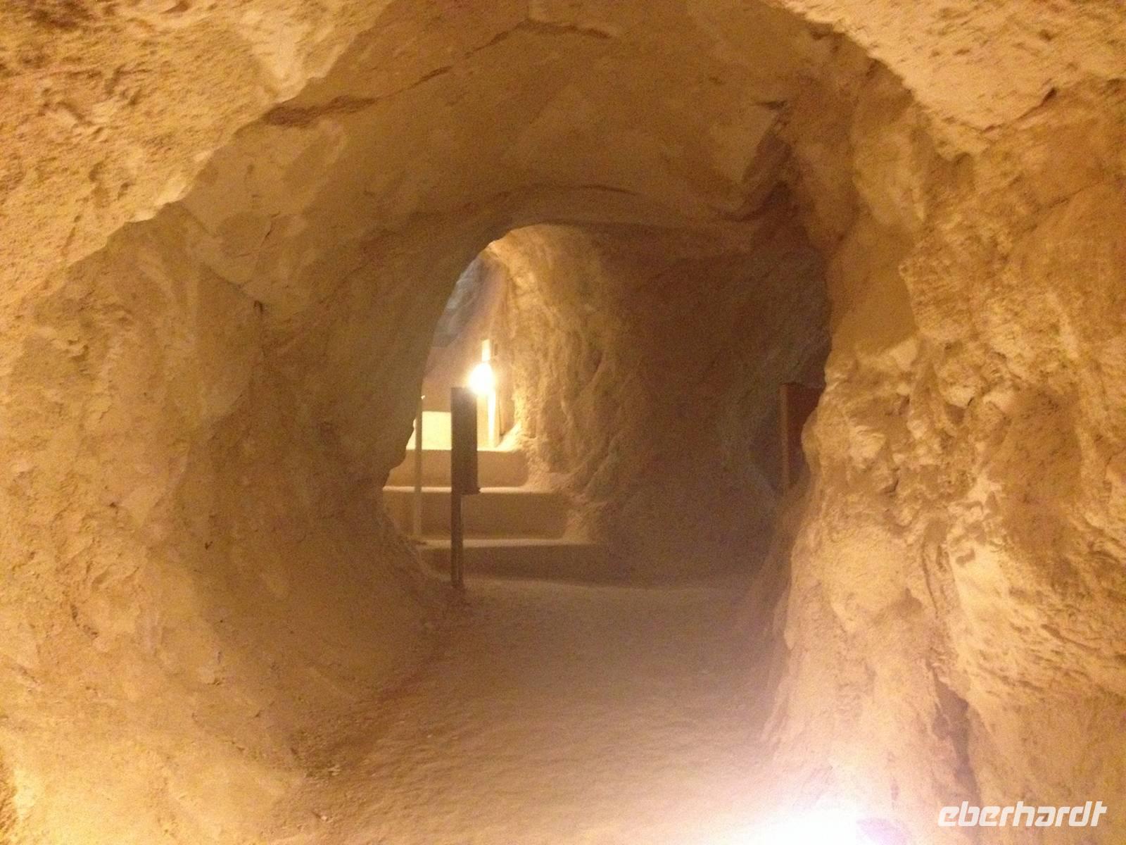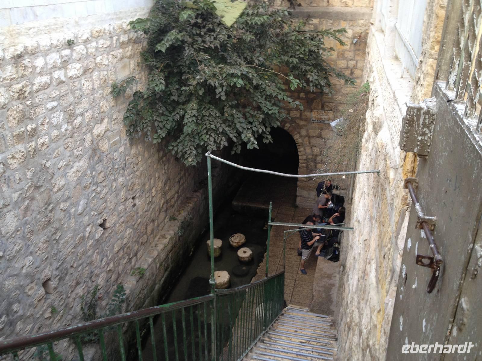 Durch einen ausgetrockneten Wasserkanal (wir hatten aber auch die Wahl für den noch funktionierenden Kanal) wandelten wir auf den Spuren der Geschichte im unterirdischen Jerusalem.