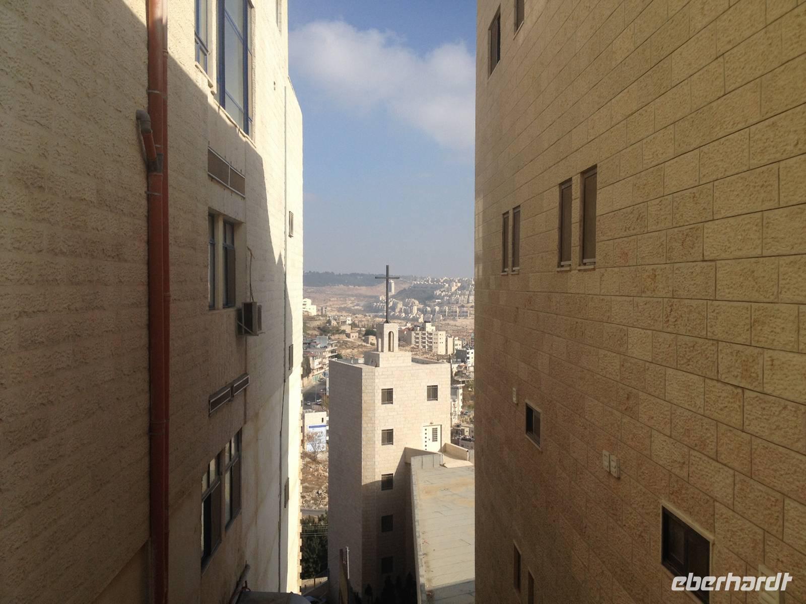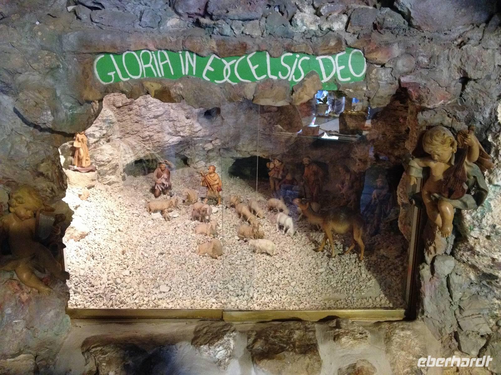 Auf dem Weg zurück nach Bethlehem besuchten wir noch die Hirtenfelder in Bait Sahur. Die Stadt befindet sich der Überlieferung nach auf dem Gebiet, wo laut Neuem Testament jene Hirten lagerten, denen die Geburt Jesu Christi zuerst verkündet wurde. Dies ist zwar historisch nicht belegt, die Nähe zu Betlehem und die heute noch ideale Weidelandschaft mit Höhlen lassen diese Lokalisierung aber logisch erscheinen.