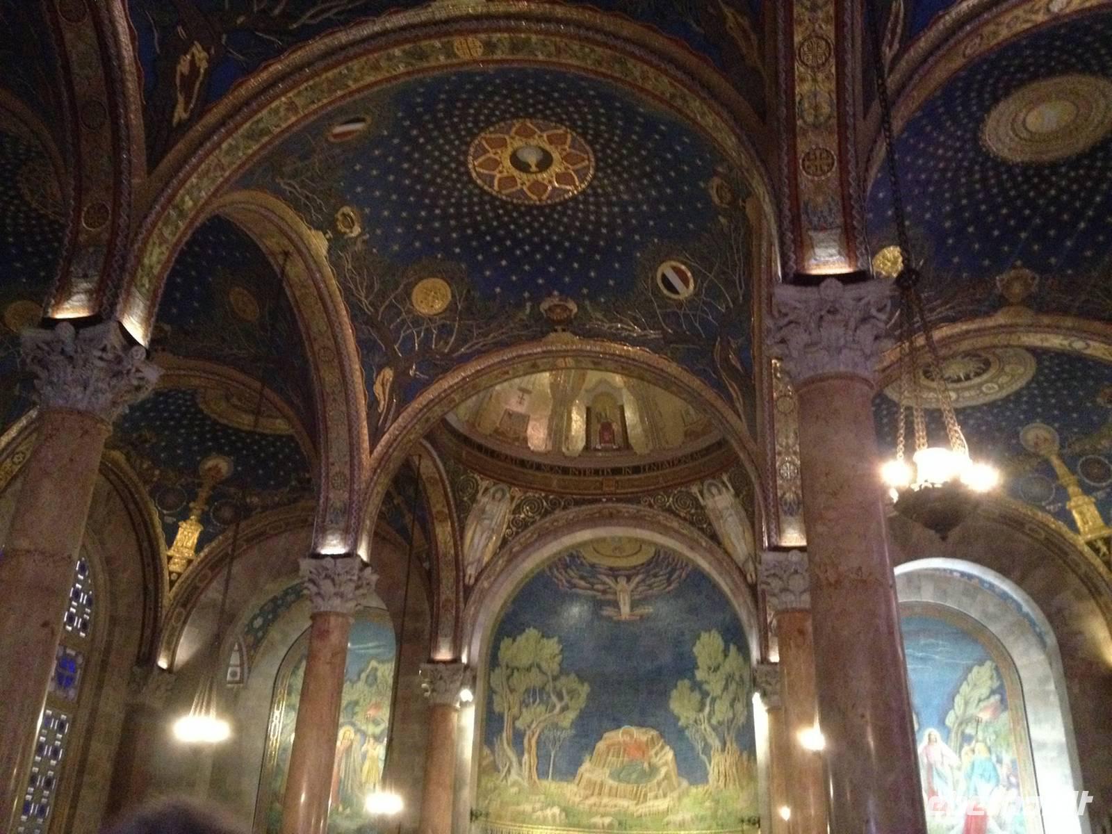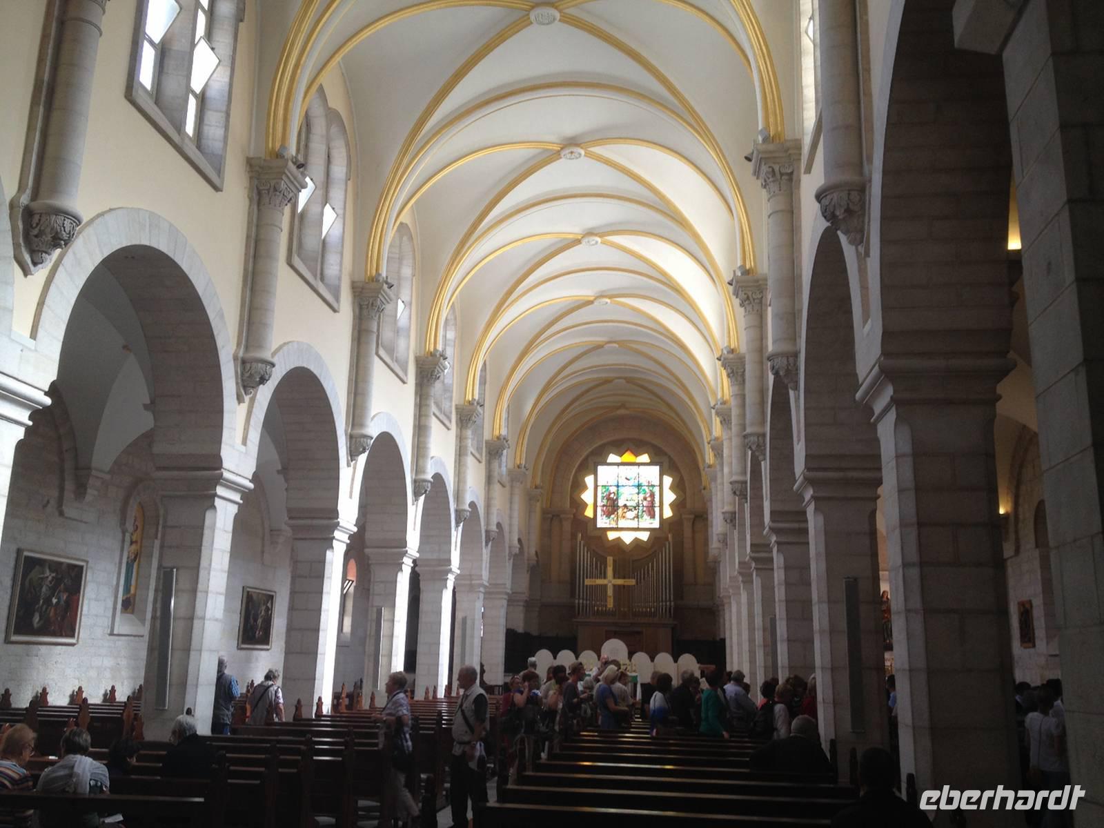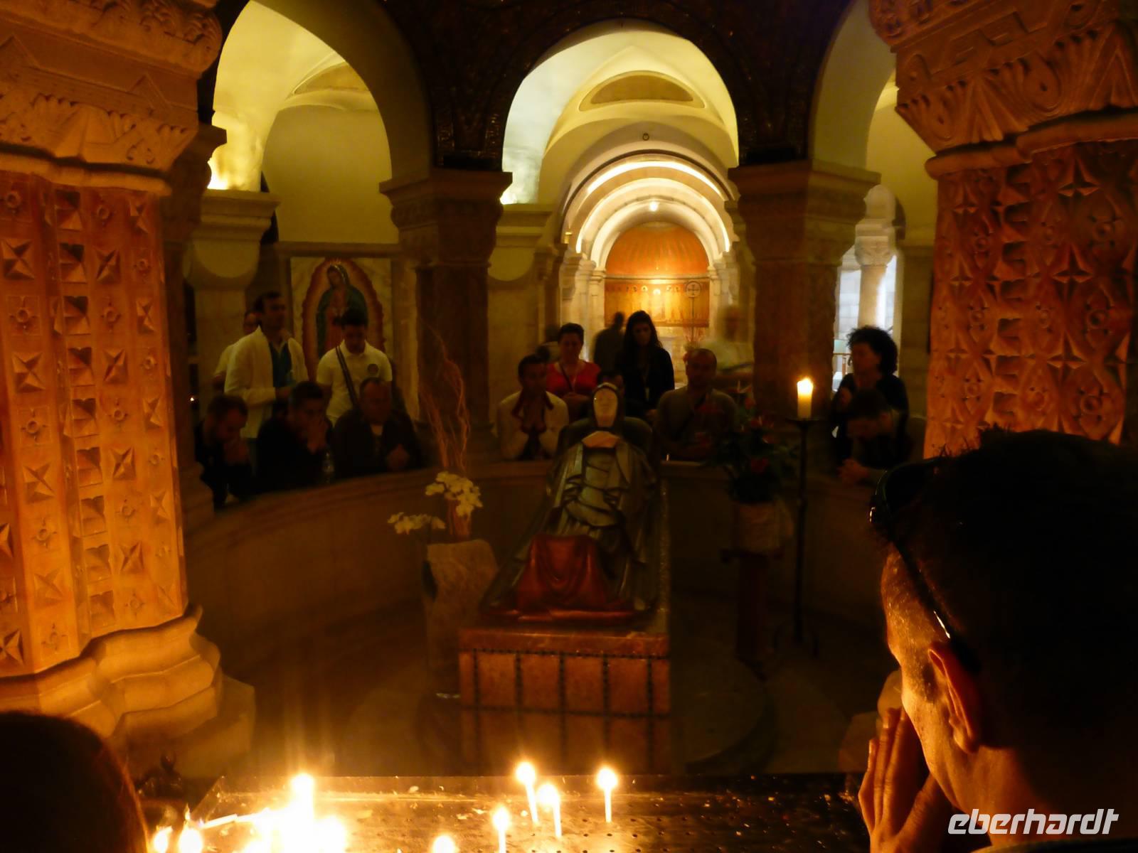 Im Mittelpunkt der Kirche besichtigten wir den 1,5 m tiefer liegenden Altarvorraum mit der Verkündigungsgrotte bevor wir in der Oberkirche die zahlreichen Mosaike und Wandmalereien, die von Christen aus aller Welt gestiftet wurden.