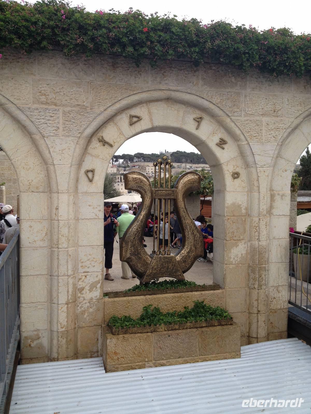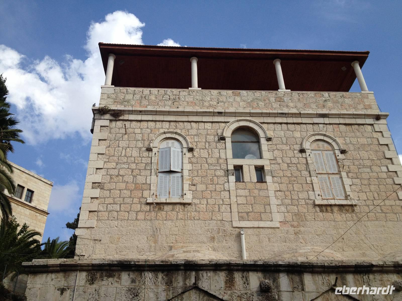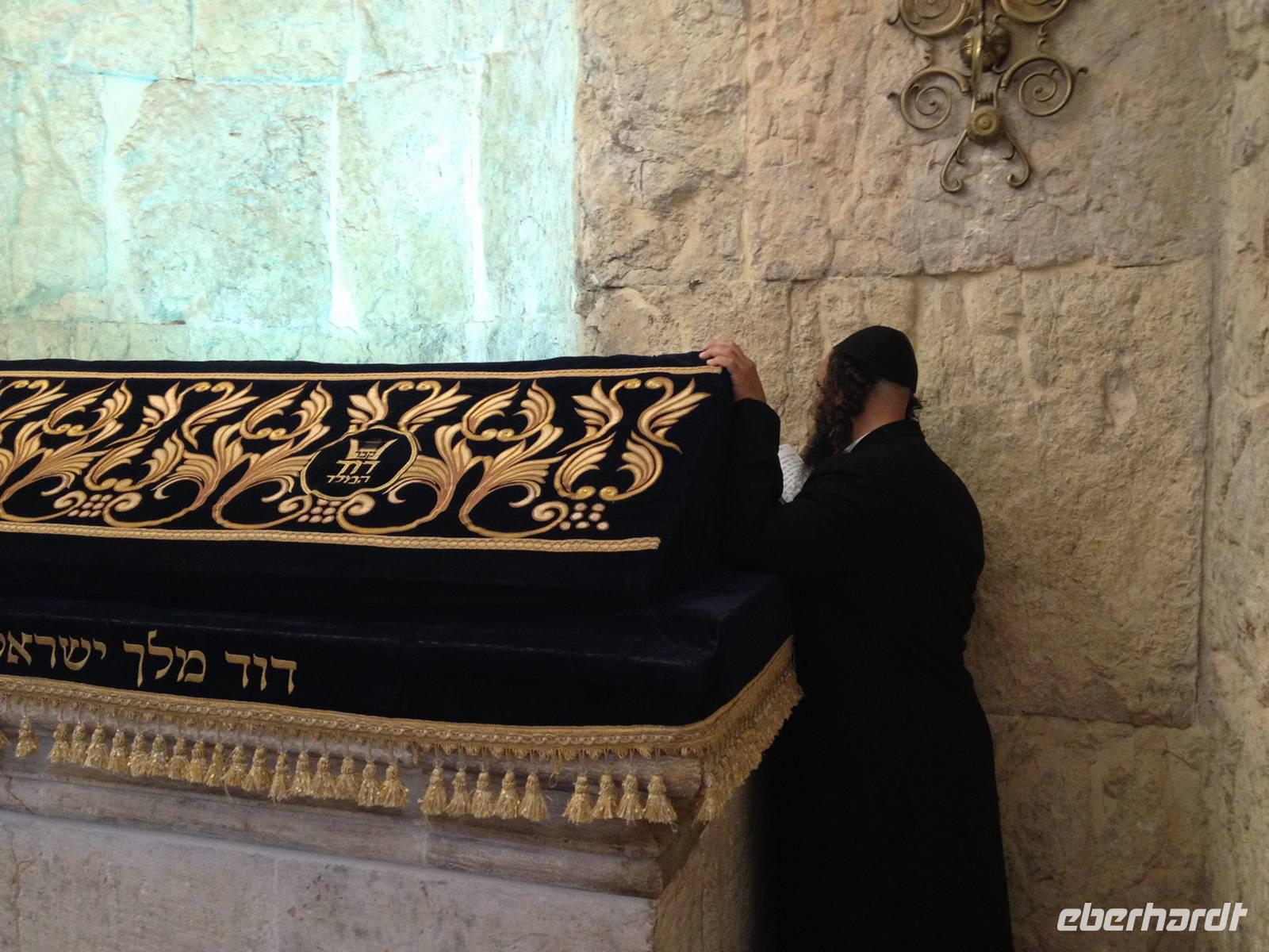 Doch die höchste Verehrung zollt die jüdische Glaubenstradition dem Davidsgrab, welches wir (streng nach Männlein und Weiblein getrennt) besuchten. Hier an diesem heiligen Ort werden heute noch Psalmen vorgelesen. Darüber befindet sich der Abendmahlsaal, den uns David natürlich nicht vorenthielt.