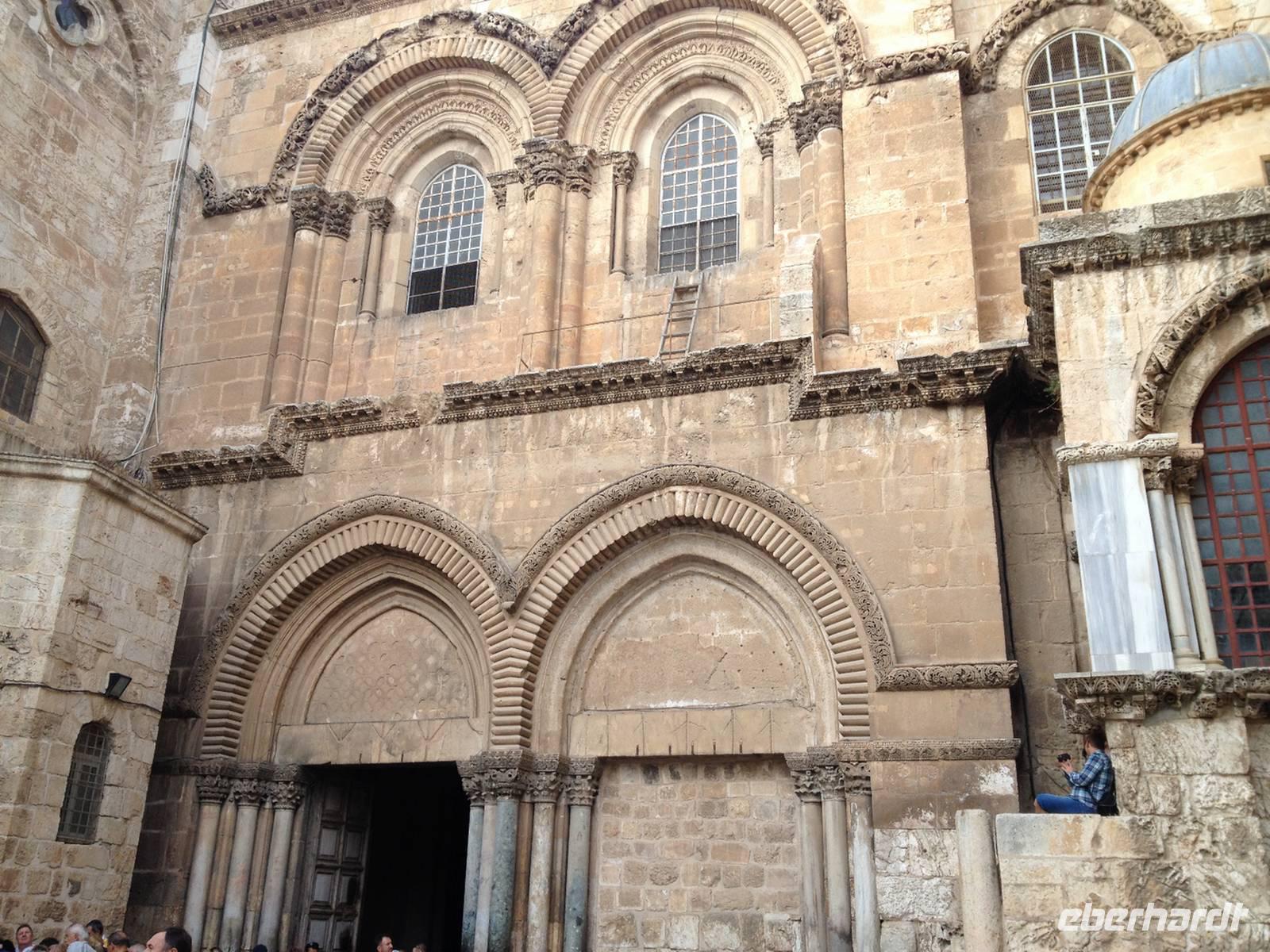 Über den „Hintereingang" (Wohnviertel der äthiopischen Geistlichen) kamen wir zum Haupteingang dieser berühmtesten und immer noch umstrittensten Kirche der Christenheit.