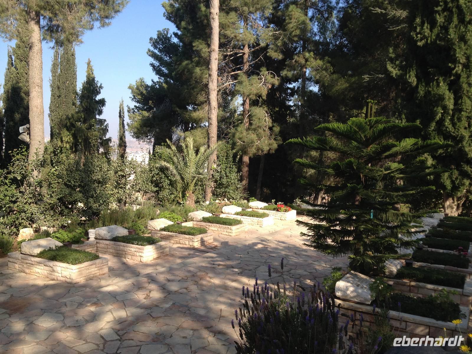 Auf diesem Hügel befindet sich seine Grabstätte, die wir gemeinsam mit David besuchen. Hier beginnt auch jeweils die Zeremonie des israelischen Unabhängigkeitstages. Außerdem wurden auf dem Herzl-Berg seit der Staatsgründung zahlreiche politische Führer und bedeutende Zionisten begraben (z.B. Jitzchak Rabin Generalstabschef der israelischen Streitkräfte sowie Verteidigungsminister und Ministerpräsident Israels).