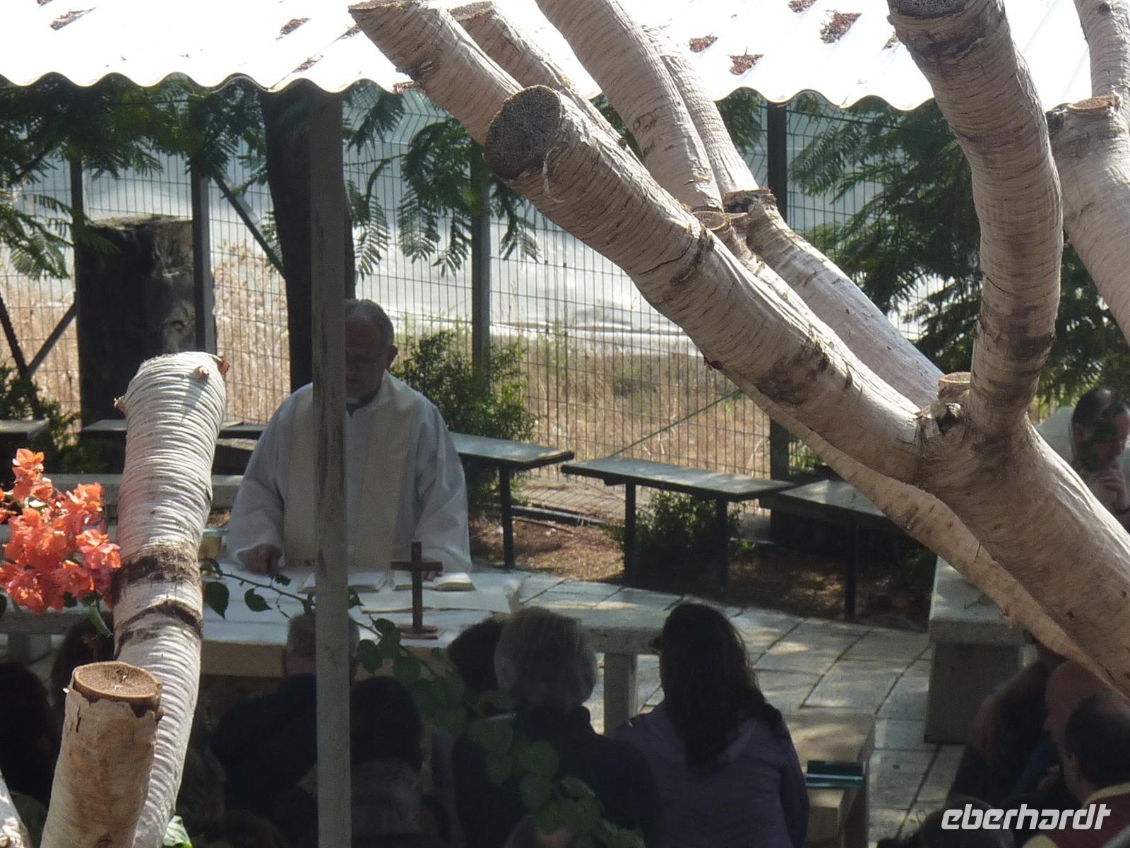 Heute befinden sich auf dem Berg ein Kloster und eine Kirche. Unser nächster Stopp war Kapernaum. Während seines öffentlichen Lebens wirkte Jesus hier über einen langen Zeitraum. Er hielt sich oft in Kapernaum auf, hier lebten viele seiner Apostel. Über den Überresten des Petrus-Hauses befinden sich die Reste einer einfachen byzantinischen Kirche, die an diesem Platz erbaut worden ist.direkt nach Tabgha fahren. In Tabgha besichtigten wir die Brotvermehrungskirche - dort hat nach biblischer Überlieferung Jesus mit fünf Broten und zwei Fischen 5000 Männer sowie Frauen und Kinder gesättigt. Unser nächstes Ziel war Kapernaum. Anschließend fuhren wir zu einem Restaurant wo uns der sogenannte Petrusfisch serviert wurde. Nach dem Essen fuhr die Reisegruppe weiter zu den Gollanhöhen, während ich mit einem Reisegast das Krankenhaus in Tiberias aufsuchte, da er leider unglücklich gefallen war. Am späten Abend waren wir wieder alle am beim Abendessen versammelt und ließen den Tag bei einem Glas Wein ausklingen.