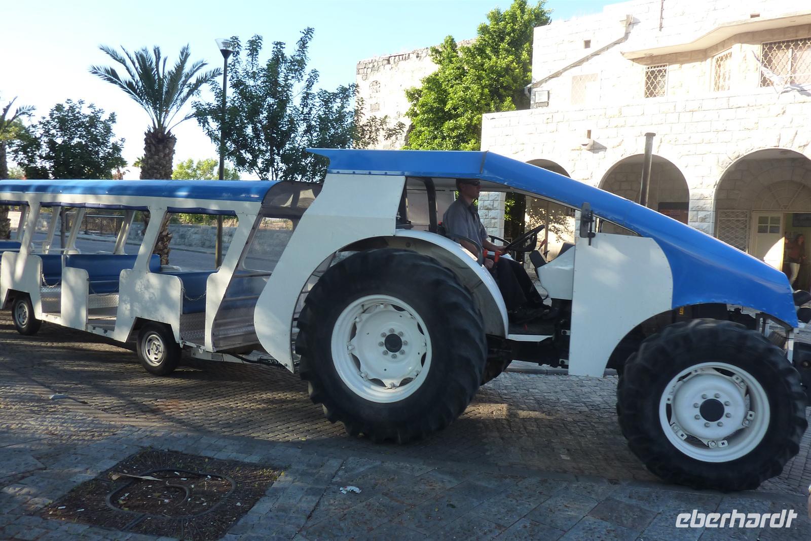 Beit She'an muss den ersten Gläubigen Jesu bekannt gewesen sein, denn sie war die Hauptstadt der Dekapolis-Städte, durch die Jesus mit seinem Wort Wunder wirkte und seine Lehren verbreitete. Tel Beit Shean mit seiner 5.000-jährigen Geschichte ragt majestätisch über den Ruinen der römischen und spatter christlichen Stadt, die darunter Gestalt annahm. Um nach Beit She’an zu gelangen fuhren wir mit einer Shuttle-Bahn.