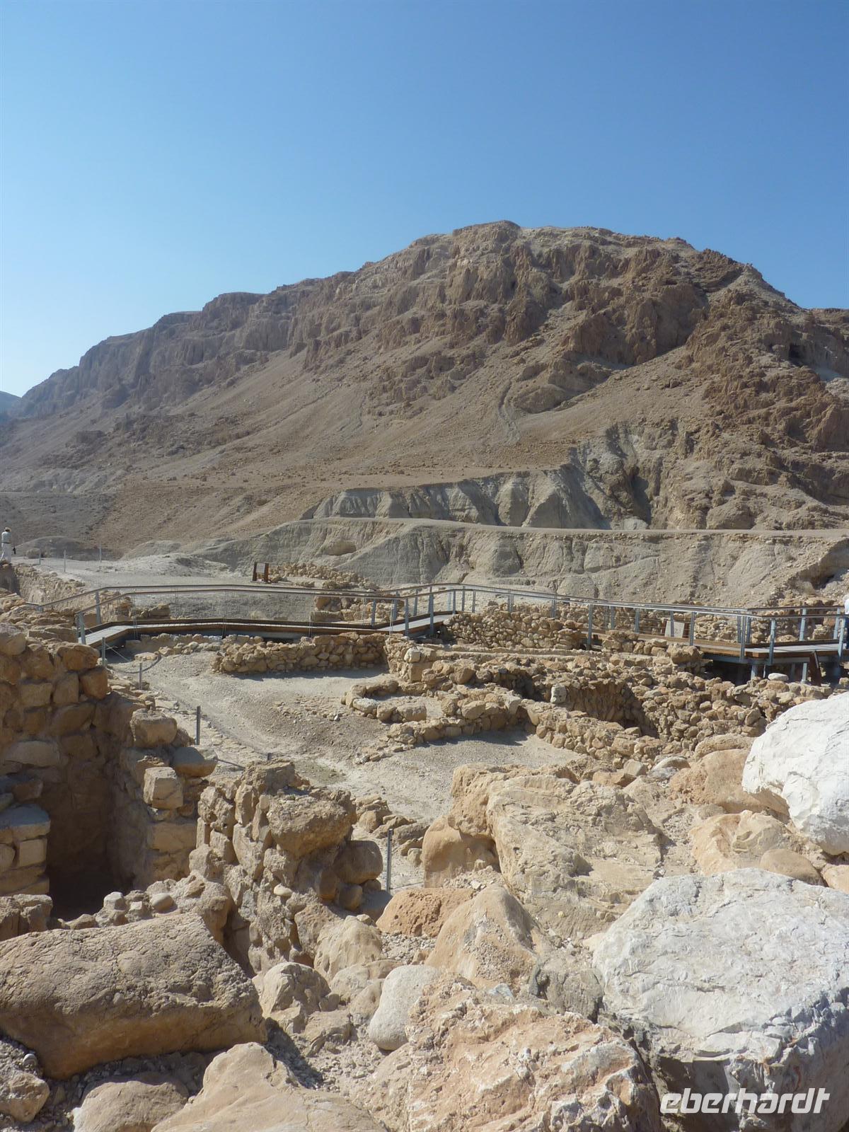 Massada - unser Ziel für heute. Um die Stadt zu erreichen mussten wir mit der Seilbahn hinauffahren. Masada ist ein Ort, an dem vor rund 2000 Jahren große Schlachten noch mit Felsbrocken und brennenden Pfeilen ausgetragen wurden, aber ebenso ein Gefecht des unerbittlichen geistigen Widerstands und des unerschütterlichen Glaubens. Im Jahr 73 entschieden sich die 960 jüdischen Zeloten, die sich auf dem Gipfel von Masada angesiedelt hatten, Selbstmord zu begehen. Bei einer Führung erläuterte David und alles ganz genau. Anschließend hatten wir die Möglichkeit wieder mit der Seilbahn hinunter zu fahren oder den steilen Abstieg zu Fuß zu bewältigen. Mit einigen Gästen entschieden wir uns für den 45 Minütigen Fußmarsch. Unser Mittagessen verbrachten wir in einem „Beduinenzelt“. Auch hier wurde uns wieder Fladenbrot, Salate und Humus (einen Dip aus Kircherbsen) gereicht. Das Beduinenzelt befand sich direkt neben einen kleinen Flugplatz. Die Beduinenbetreiber boten einen Rundflug über das Tote Meer. Fast alle Gäste entschieden sich für den 20-minütigen Rundflug und genossen dabei eine einmalige Aussicht. Bevor wir wieder zum Hotel zurück kehrten, hielten wir noch an einen öffentlichen Badestrand, da einige aus unserer Reisegruppe sich gern noch mal von Wasser treiben lassen wollten.