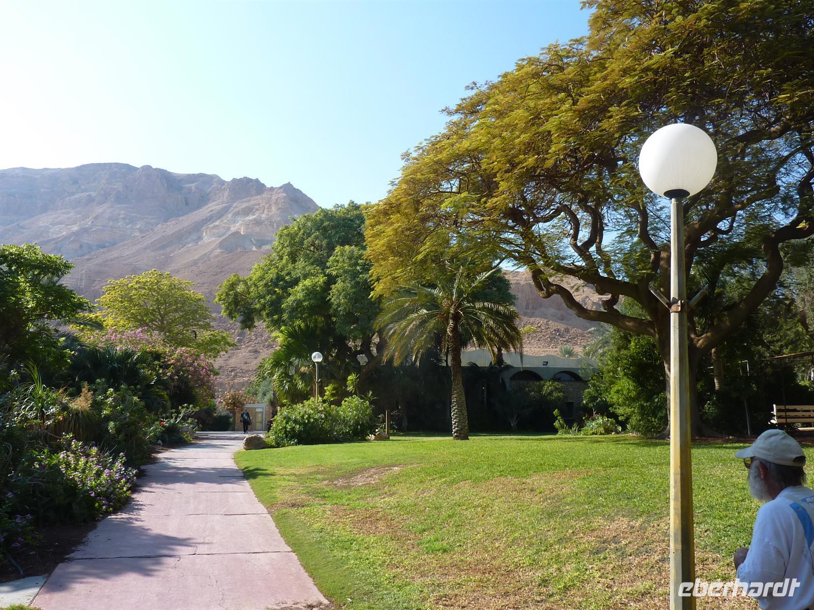 In dieser 21 km südlich von Jericho gelegener Stadt entdeckte ein junger Beduine im Jahre 1947 in einer Grotte die ersten Schriftrollen. Die wertvollen Manuskripte enthalten Vorschriften und Regeln der Gemeinschaft sowie die ältesten Bibeltexte, die in archaischer hebräischer Sprache verfasst worden sind. Darunter fanden sie auch die nahezu unbeschädigten Rollen des Buches Jesaja. Danach fuhren wir zum Kibbuz „Ein Gedi“. Ein Kibbuz Mitglied führte uns durch die große Anlage und den riesigen Botanischen Garten.