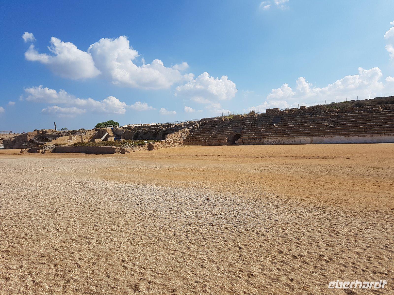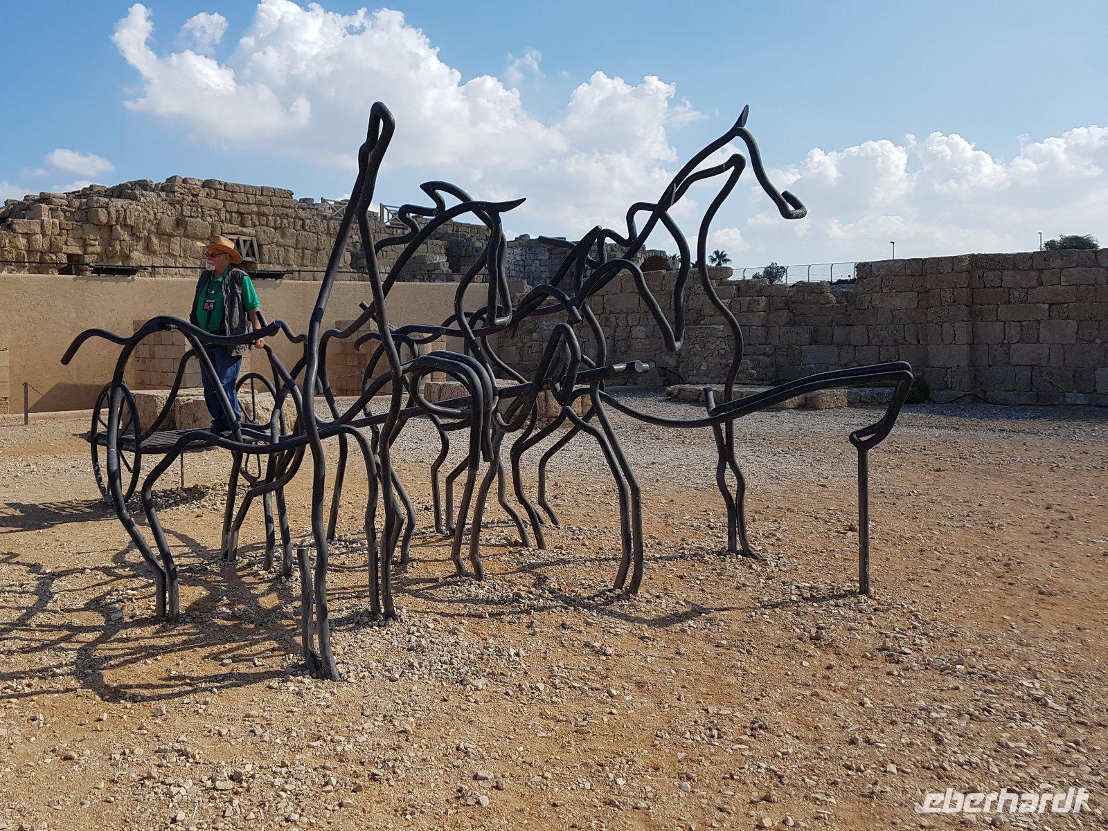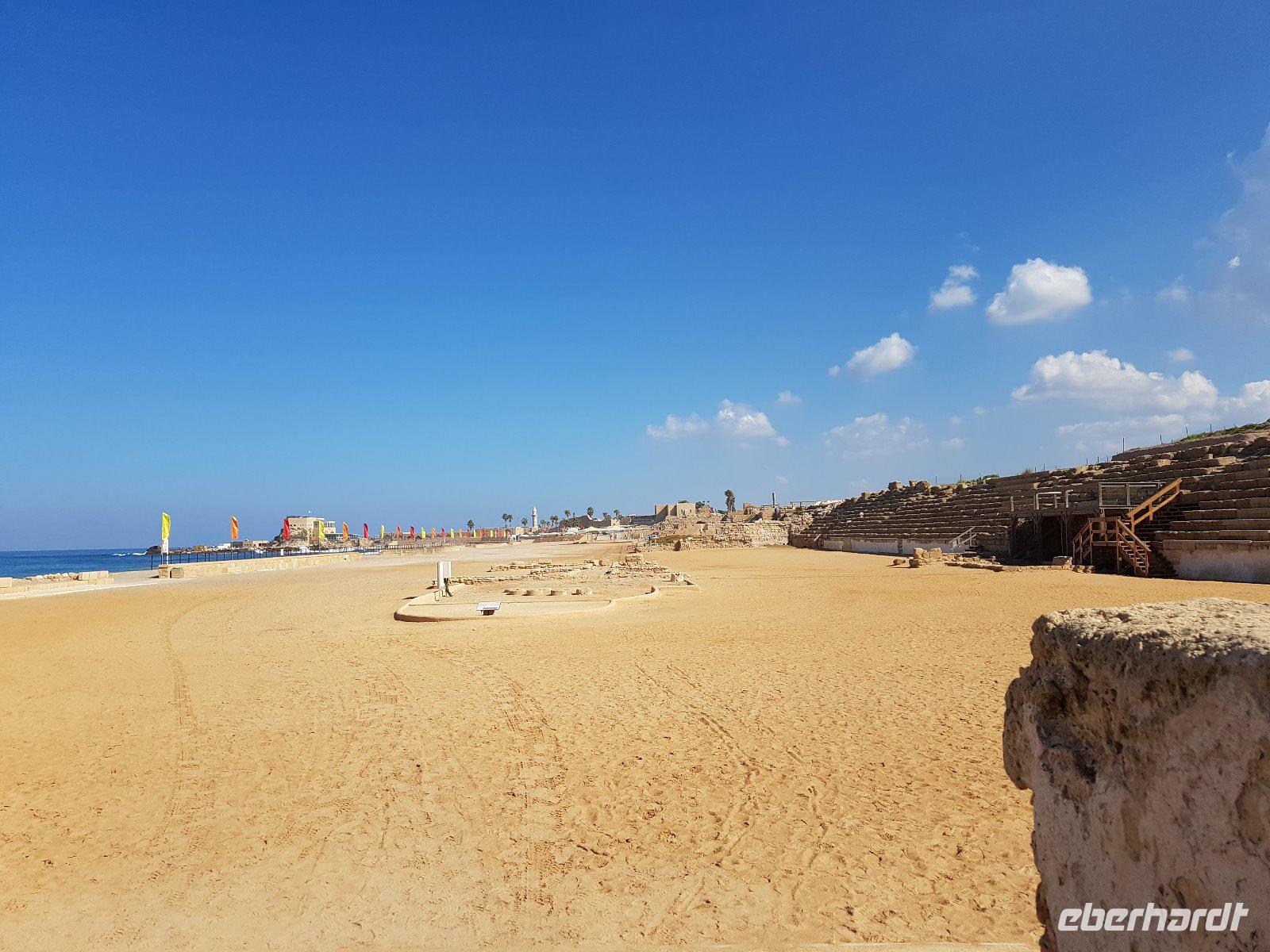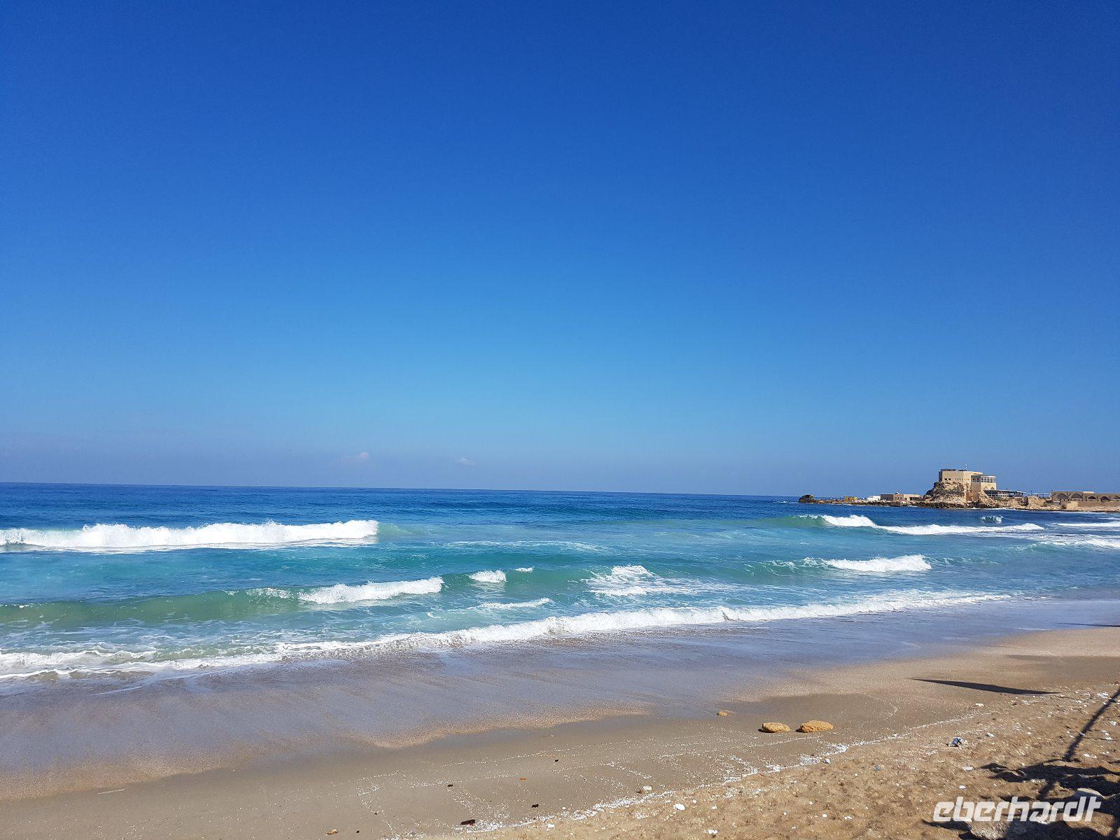 In Caesarea steigen wir am römischen Theater aus, informieren uns bei einer Filmvorführung über die Geschichte besuchen das Hippodrom und spazieren den Küstenweg zum alten Hafen entlang. Dort erklärt uns Gaby noch die Kirche aus der Zeit der Kreuzritter bevor wir im Bus auf der Fahrt nach Haifa wieder etwas entspannen können. An 30 Grad Außentemperatur muss man sich erst einmal wieder gewöhnen.