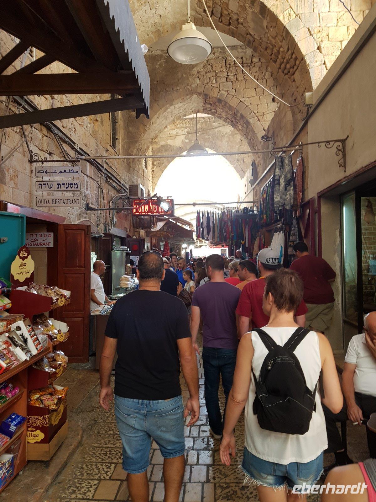 In Akko verlassen wir an der Zitadelle unseren Bus. Geldtausch an einer der zahlreichen Wechselstuben, Mittagessen Falafelrestaurant, Freizeit für den Markt - das sind unsere Programmpunkte. Dann begehen wir die alten Templertunnel welche durch die Altstadt verlaufen; ein kleiner Trost dafür, dass wir die unterirdische Templerstadt aufgrund der Schließung wegen des Laubhüttenfestes nicht sehen können.