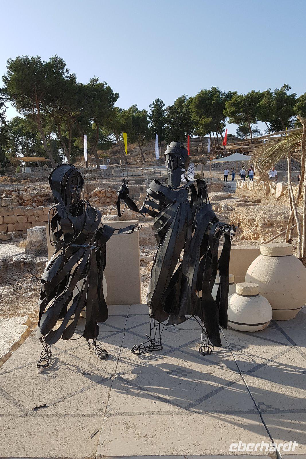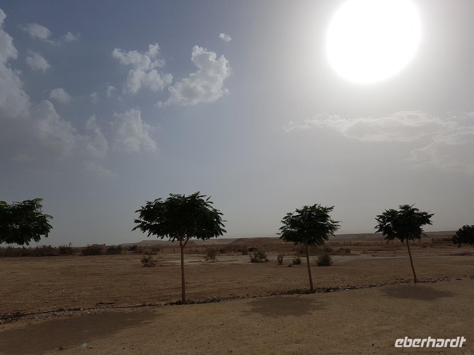 In Avdat zunächst Mittagspause, wo wir angenehm im Schatten sitzend schon die auf einem Berg hoch über und thronende Nabatäerstadt sehen können. Auch hier führt uns eine
