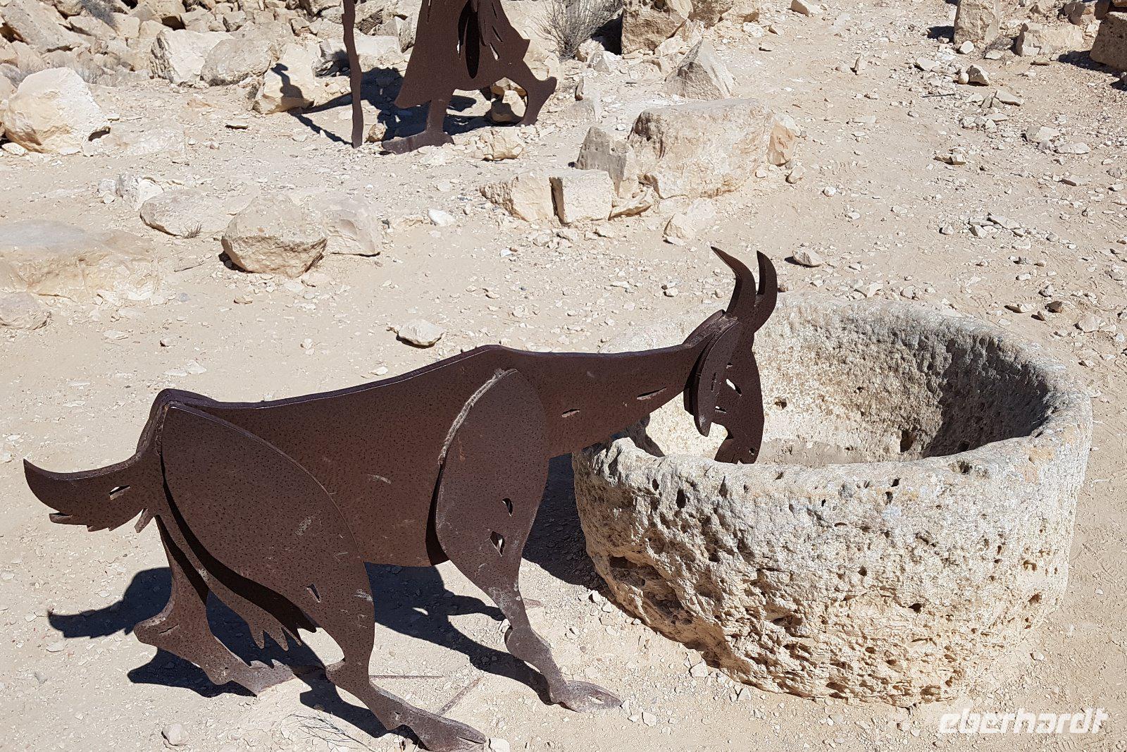 Bei Sede Boker besuchen wir die Grablege Ben Gurions, des Staatsgründers von Israel. Auf dem Weg zurück zum Parkplatz bekommen wir noch nubische Steinböcke zu sehen.