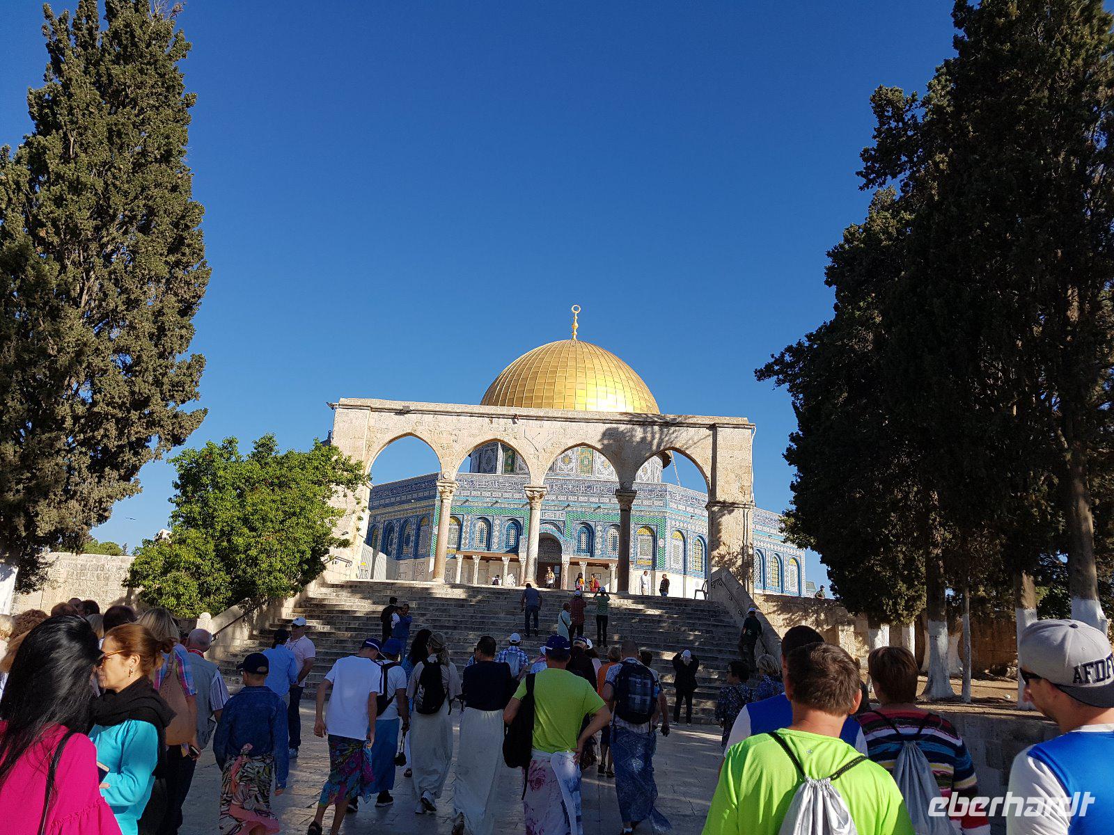 Mit dem Besuch des Tempelbergs beginnen wir unsere Erkundung Jerusalems. Auf seinem Gipfel befindet sich ein künstliches Plateau, auf dem ursprünglich der Salomonische Tempel und der nachfolgende Herodianische Tempel standen und auf dem sich heute der Felsendom befindet. Auf der südlichen Seite des Tempelberges steht die al-Aq?a-Moschee, die drittwichtigste Moschee des Islam.