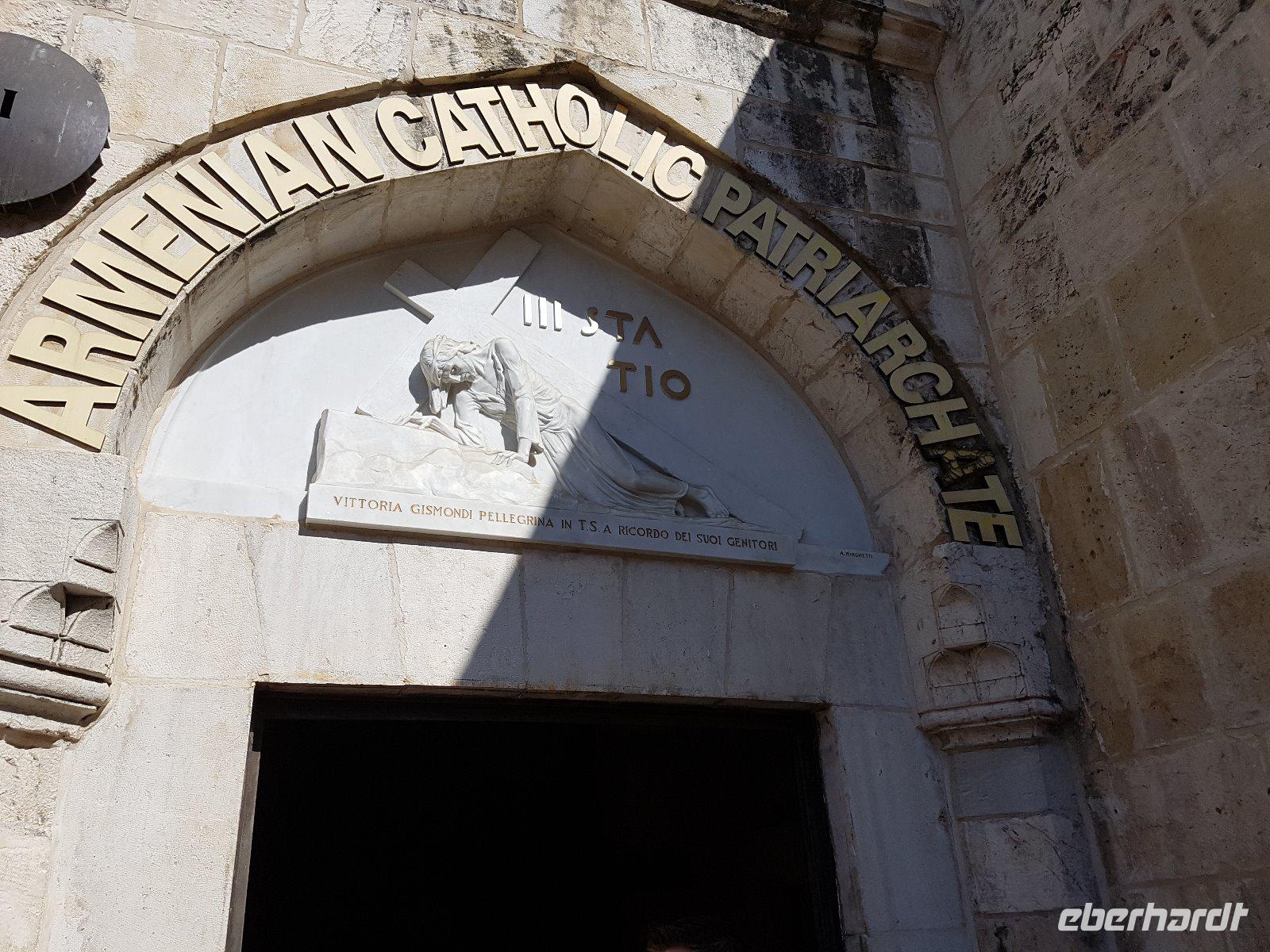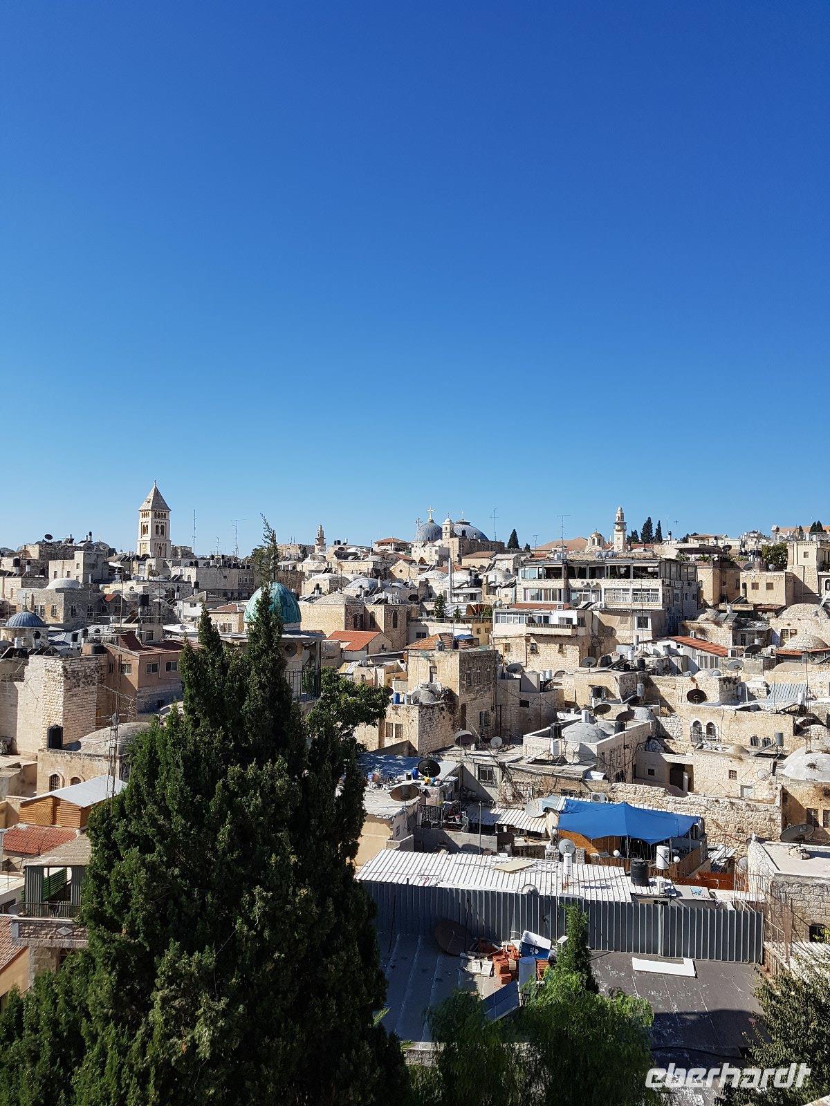Die Via Dolorosa mit den Stationen der Kreuzigung Christi beschäftigt uns dann die nächsten Stunden. Bevor wir mit der Grabeskirche Höhepunkt und Abschluss der Strecke erreichen werden, sind noch zahlreiche andere interessante Wegpunkte abzuarbeiten. Ein Besuch des Österreichischen Hospizes zum Beispiel von dessen Dachterrasse sich ein herrlicher Blick über die Altstadt ergibt.