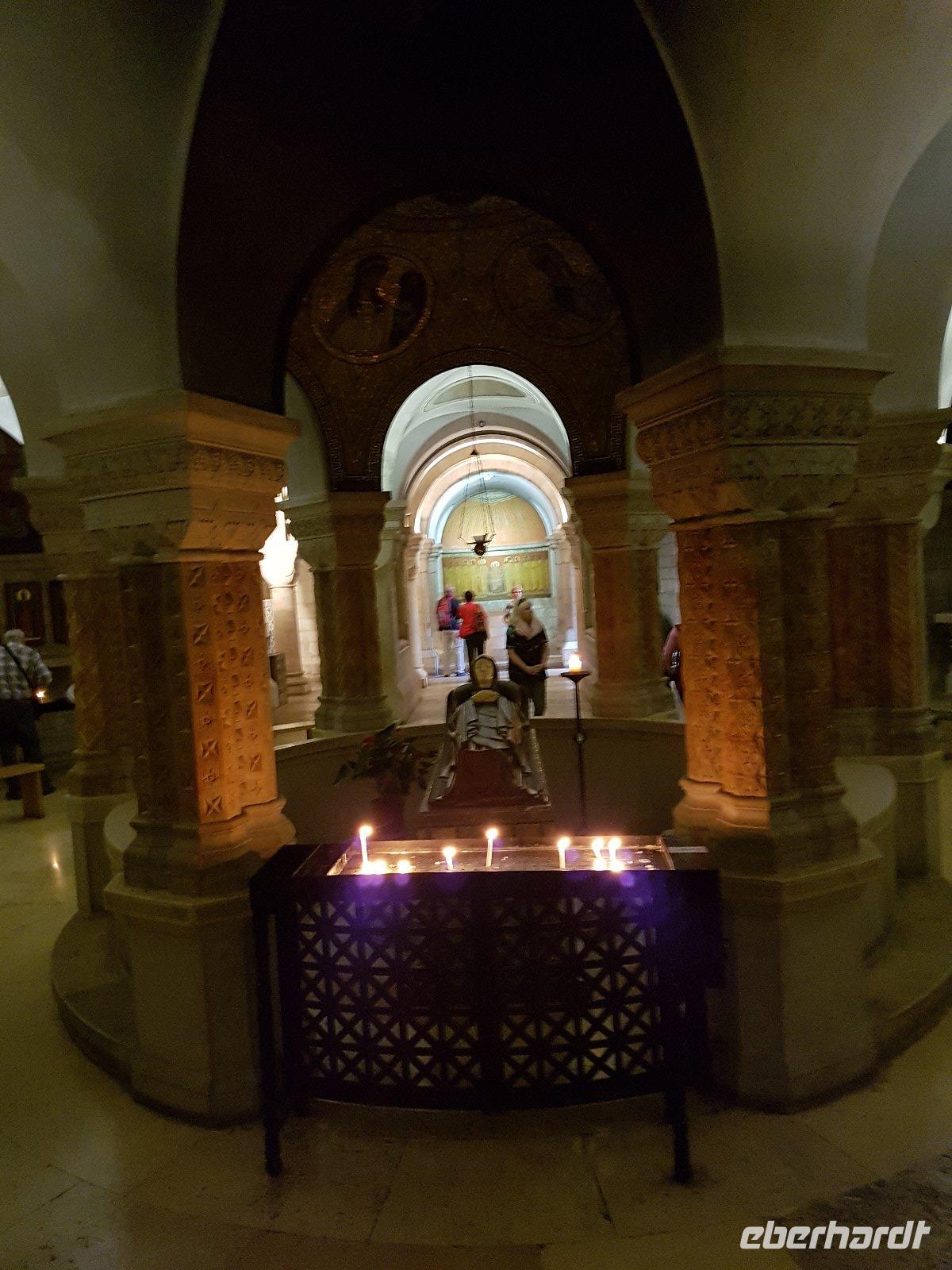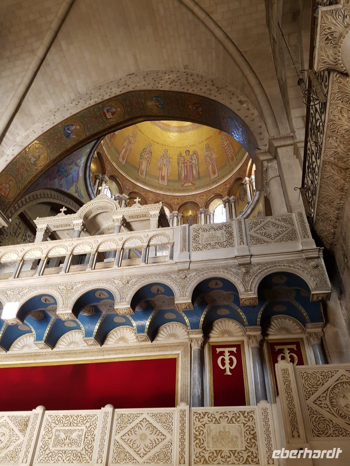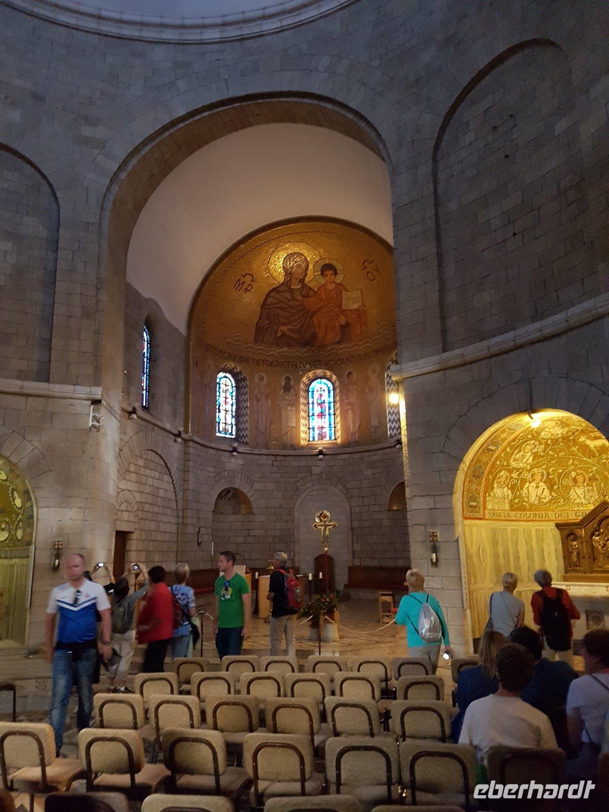 Unterbrochen durch einen Fotostopp an der Knesset, dem israelischen Parlament dann zum Zionsberg. Zunächst besuchen wir Oskar Schindlers Grab. Das Davidsgrab Berg Zion in Jerusalem wird als Grabstätte des biblischen Königs David verehrt, der vor etwa 3000 Jahren über Israel und Juda herrschte. Wenngleich die Authentizität bezweifelt wird, ist es eine wichtige Heilige Stätte des Judentums. Im gleichen Gebäude wie das Grab befindet sich auch der Saal des letzten Abendmahls, welchen wir aufsuchen bevor wir mit der Dormitio-Abtei den Schlusspunkt der hiesigen Besichtigung erreichen.