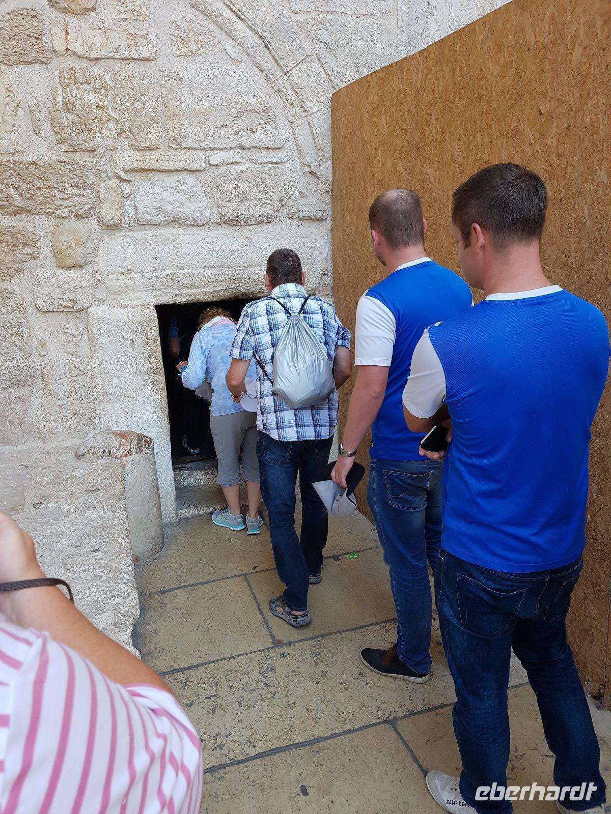 Nach dem Besuch der Klagemauer starten wir von der Davidstadt mit dem vorfahrenden Reisebus Richtung Bethlehem. Die Fahrt ins palästinensische Gebiet wird als kurze Ruhephase genutzt, ehe es vor Ort dann mit der Besichtigung einer weiteren bedeutenden Kulturstätte wieder etwas fordernd wird: Die Geburtskirche in Bethlehem, die über der angeblichen Geburtsstätte Jesu Christi errichtet wurde wird von uns besichtigt. Nachdem wir unter unglaublichem Andrang und Gedränge vieler Gläubiger die Geburtsgrotte besucht haben, verweilen wir noch in derrömisch-katholischen Katharinenkirche, welche direkt an die Geburtskirche angebaut wurde; wer wünscht findet hier die Ruhe und Zeit für eine Andacht.