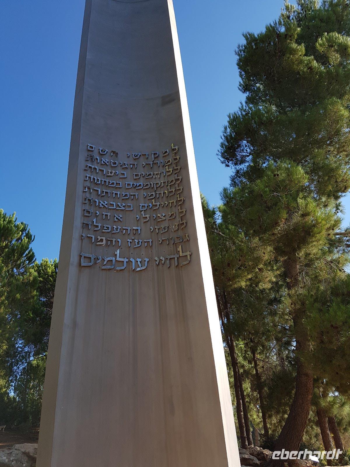 Über den Herzel-Berg fahren wir nach Yad Vashem, der bedeutendsten Gedenkstätte, die an die nationalsozialistische Judenvernichtung erinnert und sie wissenschaftlich dokumentiert.