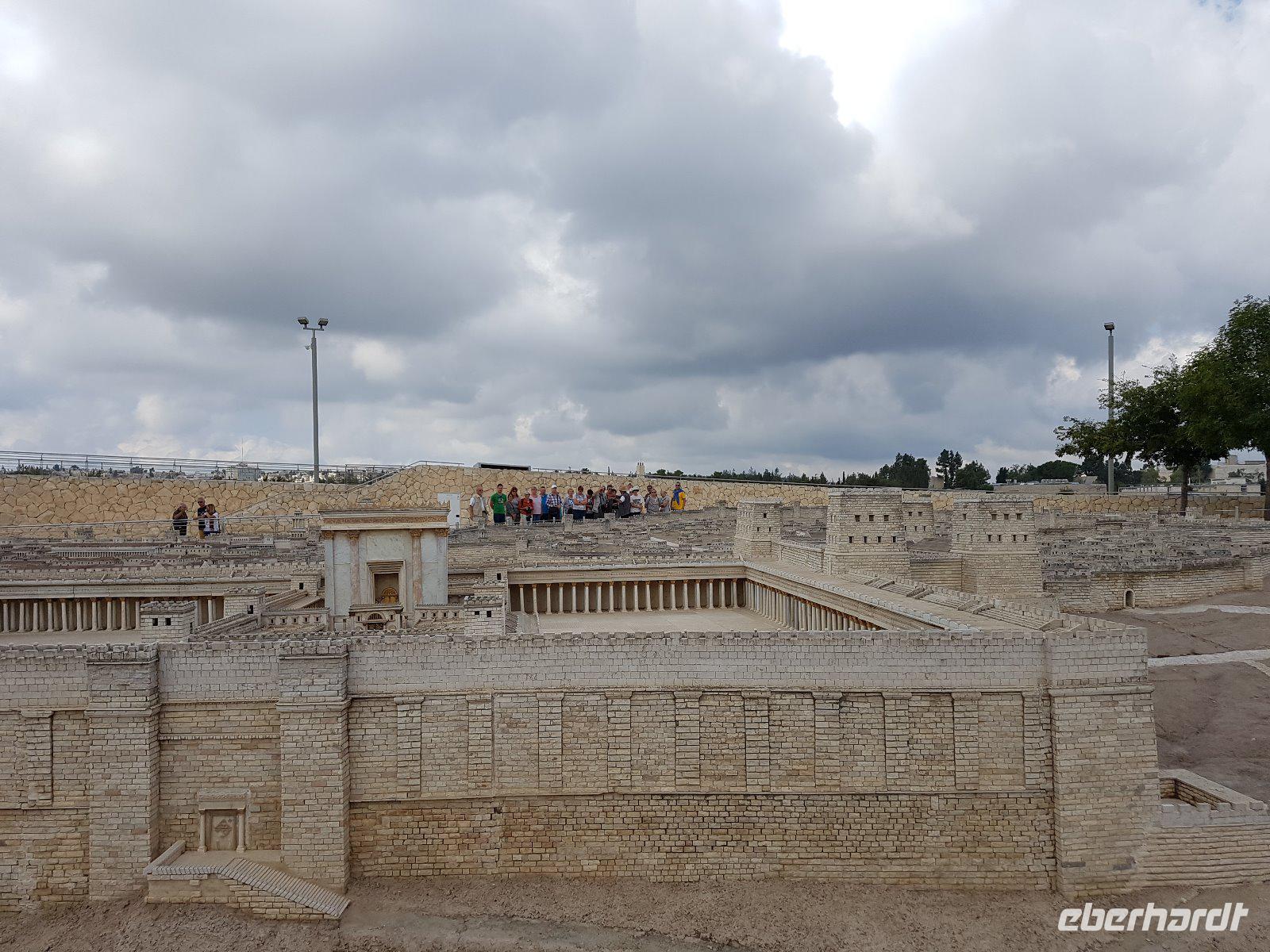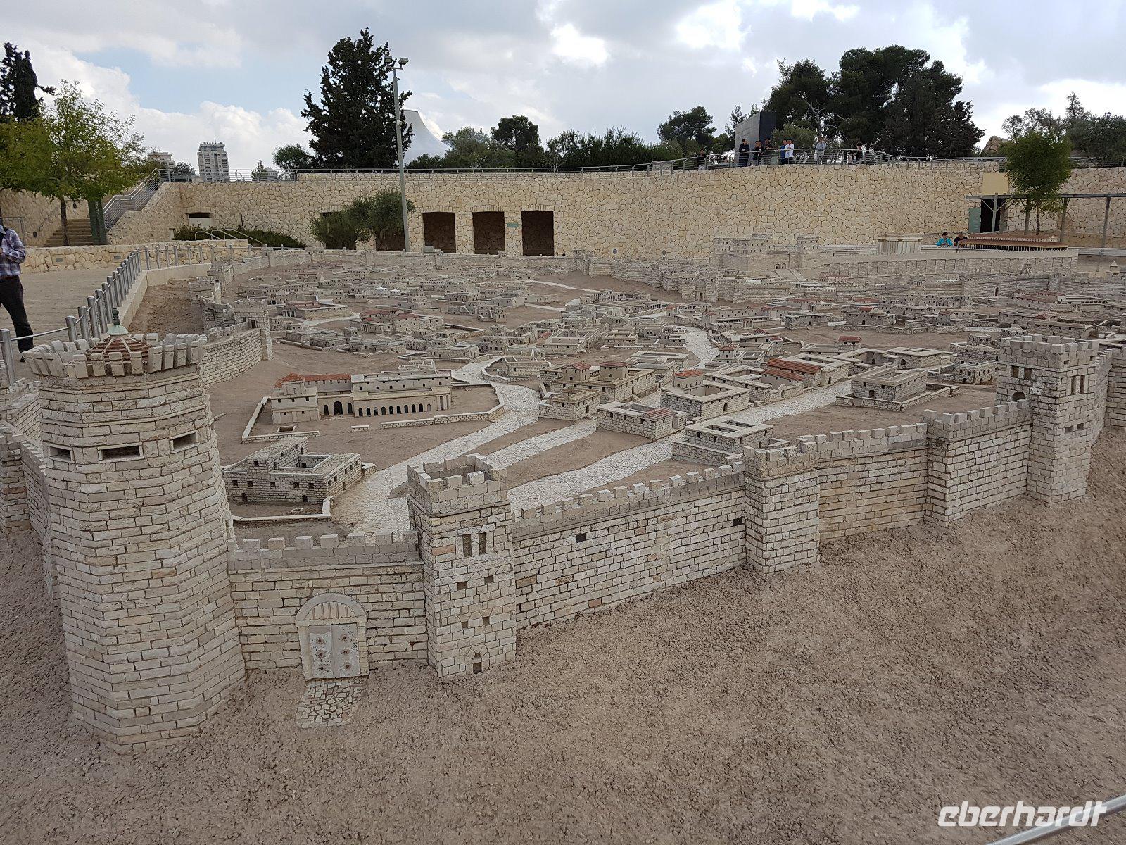 Das Modell rekonstruiert die Topographie und architektonischen Charakter der Stadt inklusive einer Nachbildung des Tempels des Herodes, wie er vor 66 n. Chr. war, dem Jahr, in dem der große Aufstand gegen die Römer ausbrach, welcher schließlich zur Zerstörung der Stadt und des Tempels führte.