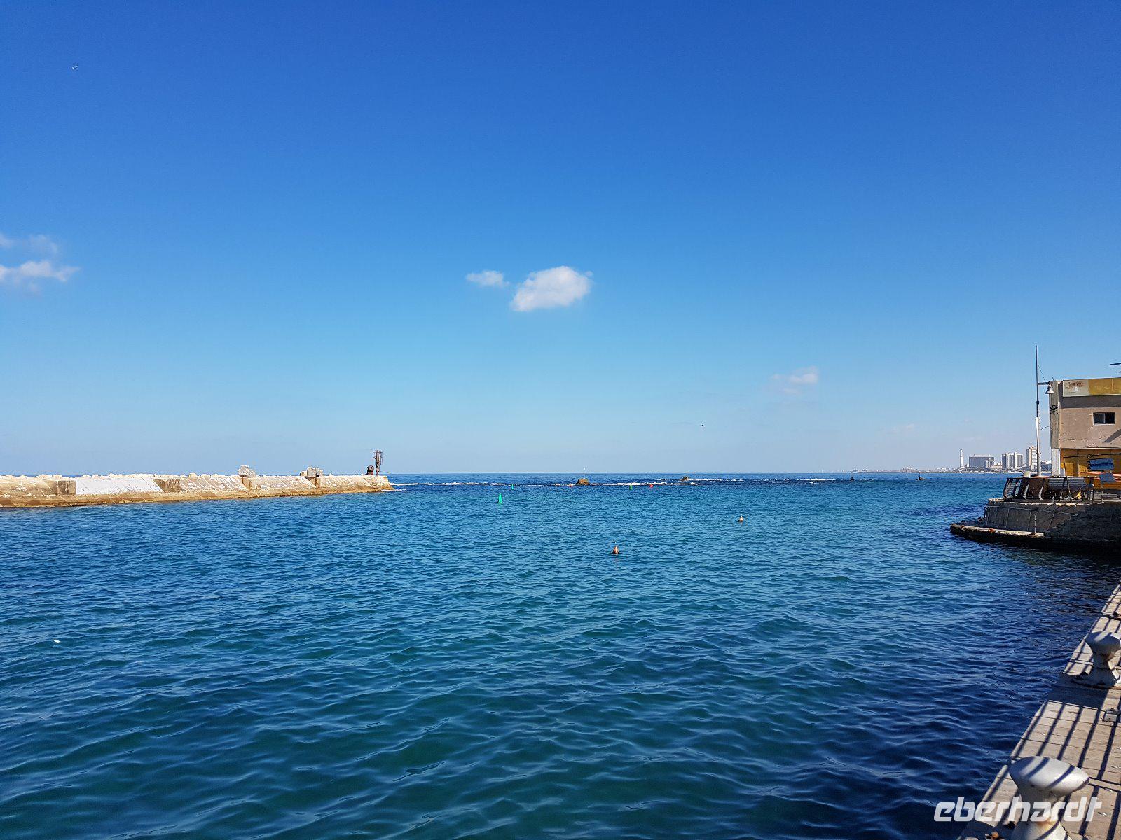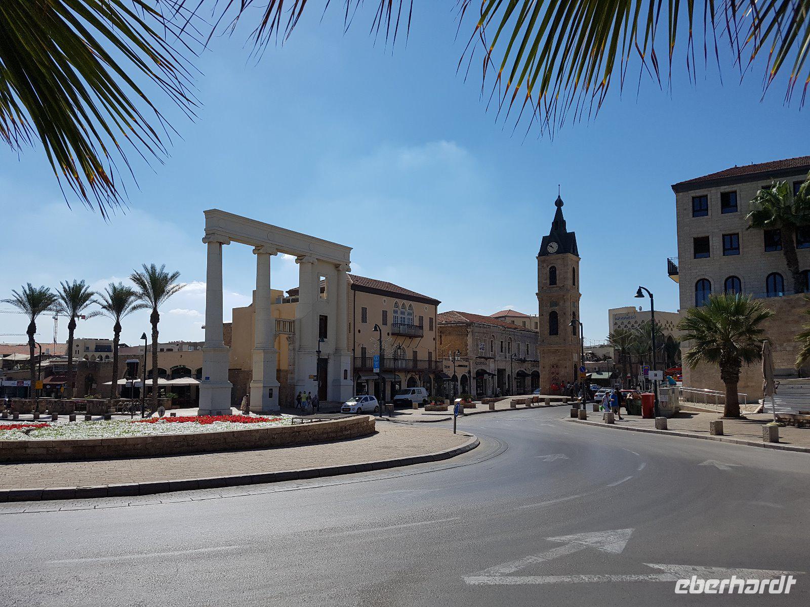 In Yaffa Ausstieg am Kdunim Visitor Center Square mit herrlichen Panoramablick über den Strand Tel Avivs. Wir gehen vorbei am orginellen Brunnen der Tierkreiszeichen hinunter zum Hafen und spazieren von dort weiter zum Clocktower.