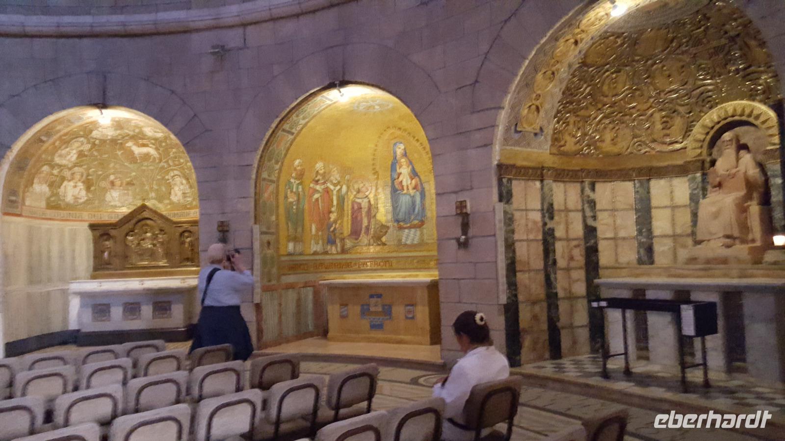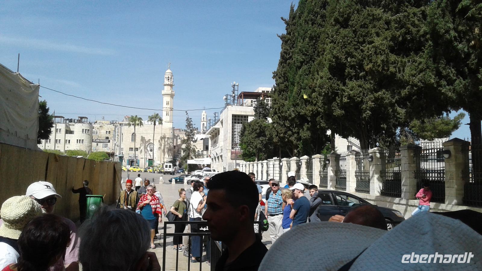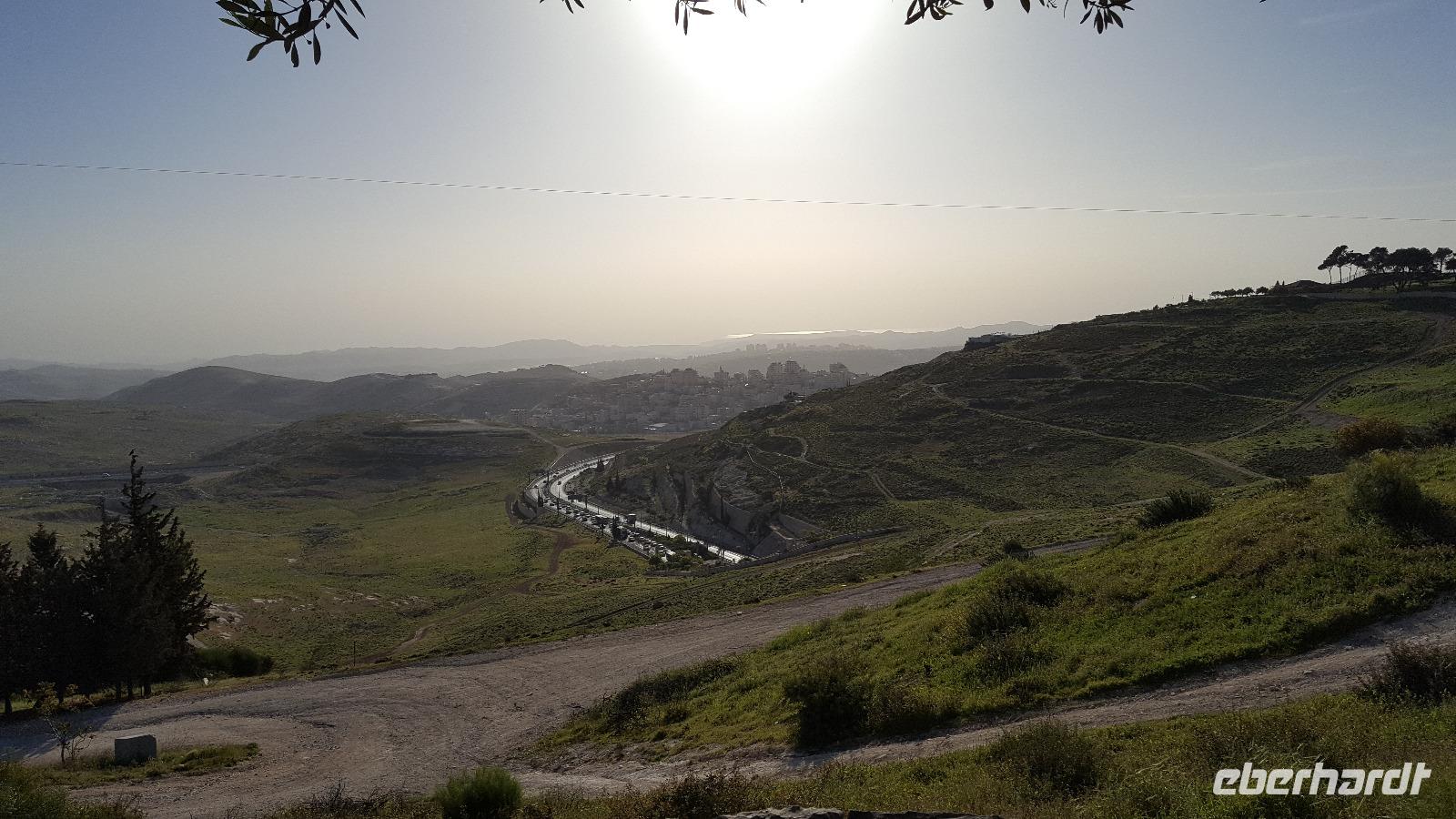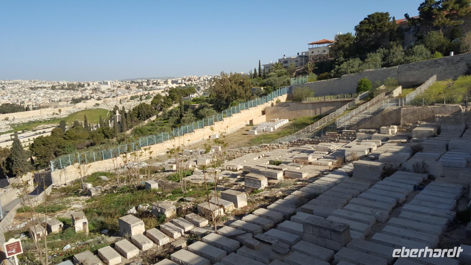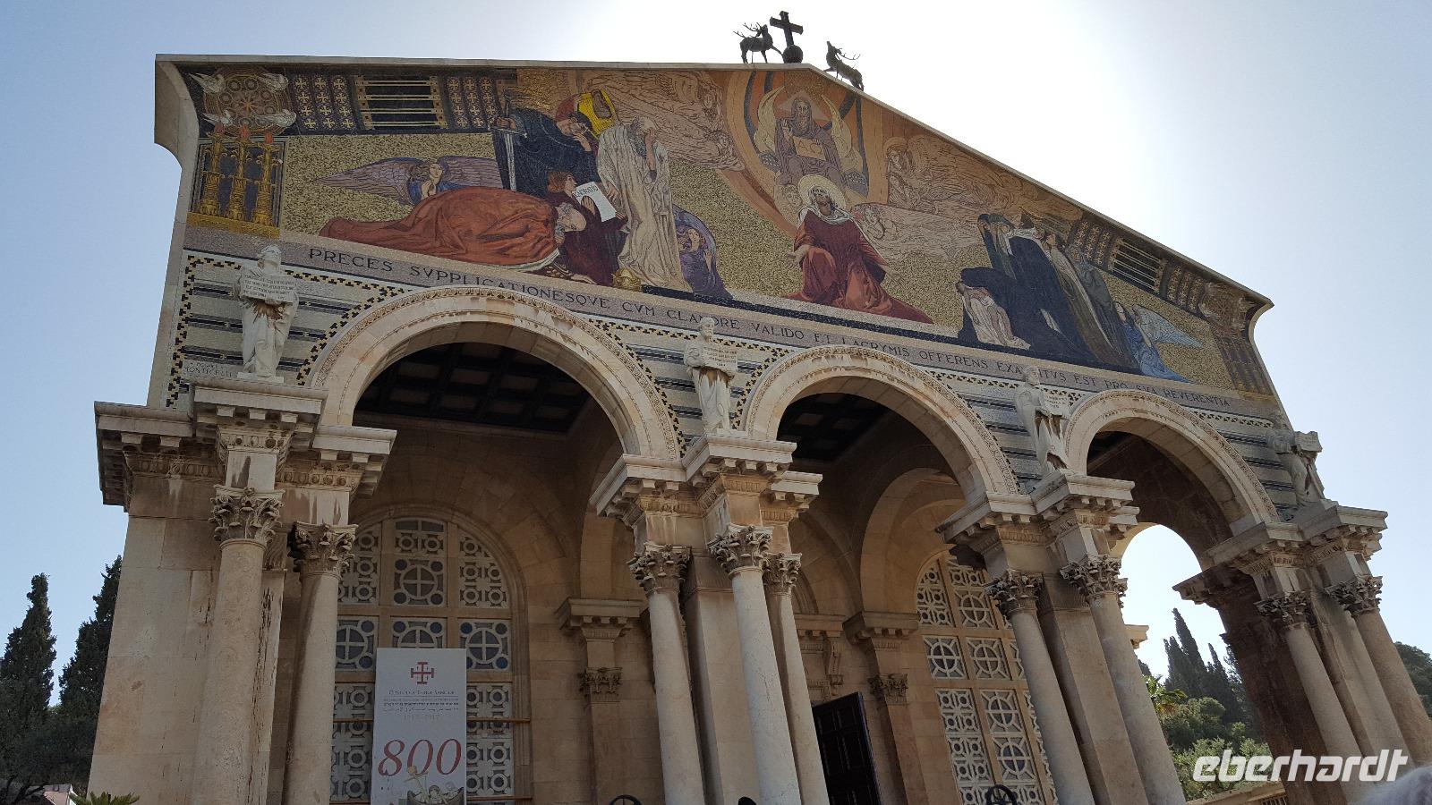 Der Tag heute gehört Jerusalem. Schon gestern haben wir viel gesehen und gehört, heute haben wir wieder Zeit für diese atemberaubende Stadt. Wir beginnen zeitig: 7:30 Uhr fahren wir los vom Hotel zum Ölberg. Von der Terrasse des Seven Arches Hotels haben wir einen phantastischen Panoramablick über die Stadt. Als zusätzliches Highlight besuchen wir die Dominus Flevit-Kirche. Wir halten inne mit einem Bibel-Zitat und genießen die Ausblicke. Gabi erläutert uns die Nekropolen bevor wir weiterspazieren zum Garten Gethsemane. Uralte Olivenbäume stehen hier, neue kommen hinzu. Natürlich besuchen wir die Kirche aller Nationen, den Namen erhielt sie, weil Kuppeln und prächtige Mosaiken von verschiedenen Nationen gestiftet wurden. Sie ist auch als „Todesangst-Basilika" bekannt, der „Felsen der Todesangst Jesu" befindet sich genau vor dem Altar der Kirche. Wir spazieren weiter und erreichen durch das Lions-Gate, das Löwentor, die St. Annen- Kirche unweit der Bethesda-Teiche. Sie ist eine der schönsten Kirchen der Stadt, ihr Bau erfolgte im 12. Jahrhundert. Es gibt eine Grotte, in der die Geburt der Maria verehrt wird. Hier verweilen wir einen Augenblick bevor wir weiterspazieren zur Via Dolorosa. An derem Eingang stehen heute das Terra Sancta Museum an dem Ort, wo einstmals Jesus zum Tode verurteilt worden war und die Geißelungskapelle. Letztere trägt in der Kuppel eine Dornenkrone, selbst die Leuchter zeigen Geißelungs-Gegenstände wie Peitschen und Nägel. In einem Haus der Wächter macht uns Gabi auf ein eingeritztes Spiel im Boden aufmerksam- man spielte damals um Menschen, um Menschenleben...Am Ecce Homo, bekannt als der Ausspruch von Pilatus: „Seht, es ist ein Mensch", da er aus den Geißelungswunden blutete, gehen wir durch den berühmten Torbogen und werfen durch die Glasscheibe einen Blick in das Kloster. Danach besuchen wir das österreichische Hospiz, Schwester Bernadette kredenzt in ihrem „Wiener Kaffeehaus" Kaffee und Kuchen und dann können wir- Eberhardt Travel machts möglich- auch die Dachterrasse besuchen. Was für ein Ausblick! Wir nutzen die Gelegenheit und schauen uns noch die Kapelle im Hospiz an, dann geht es schon weiter zur nächsten Station des Kreuzweges. Die dritte: Jesus fällt zum ersten Mal mit dem Kreuz. Eine kleine Kapelle erinnert daran. Wir folgen den weiteren bis zur 7. Station. Läden und Geschäfte säumen den Weg und unzählige Menschen sind bereits unterwegs, Gott sei Dank ebbt dieser Strom bald ab und wir haben Muße, alles zu betrachten. Dann stehen wir vor Deir es Sultan- den Klosterzellen der äthiopischen Mönche und der Zugang zu einer koptischen Kirche auf einer Plattform oberhalb der Grabeskirche. Alle weiteren Stationen des Kreuzweges befinden sich in der Grabeskirche. Am Salbungsstein beten und weinen Besucher, das Christusgrab befindet sich im Zentrum. Jeder verbringt seine Zeit hier wie er möchte. Wir gehen weiter zur deutsch-lutherischen Erlöserkirche in der Muristan Straße, halten kurz inne und dann ist individuell Zeit, die Auslagen und Läden zu bewundern. Wir treffen uns am heutigen Cardo und bestaunen im jüdischen Viertel die Ausgrabungen des Cardo, die freigelegten Straßen mit den Säulen beidseits liegen deutlich unter dem heutigen Niveau. Faszinierend die bildlichen Darstellungen und Mosaiken. Eine unserer letzten Stationen für heute ist der Zionsberg mit der Dormitio-Abtei. An dieser Stelle soll die Gottesmutter Maria entschlafen sein. In der Krypta wird ihre Grabstelle verehrt. Weiter geht es vorbei am Grab von König David hinauf zum berühmten Abendmahlsaal. Hier soll Jesus mit seinen Jüngern das berühmte letzte Abendmahl eingenommen haben. Hierher zogen sich die Jünger nach der Kreuzigung zurück und hier sollen sie auch mit Maria den heiligen Geist empfangen haben. Schlicht gehalten enthält der Raum heute auch eine muslimische Gebetsnische, da er im 16. Jahrhundert nach der Vertreibung der Franziskaner in eine Moschee umgewandelt wurde. Damit endet unser Jerusalem-Rundgang für heute, doch für den Abend steht noch ein Highlight an: die Jerusalem Sound & Licht Show. Also kehren wir ins Hotel zurück, genießen ein zeitiges Abendessen und fahren noch einmal zurück. Als kleine Überraschung hat Gabi Wein besorgt und wir stoßen vor der Stadtmauer auf einen tollen Abend an. Die Show ist überwältigend, Bauwerk, Licht und Musik verschmelzen zu einem wunderbaren Erlebnis der Geschichte Jerusalems. Unser Bus bringt uns sicher zurück zum Hotel und jeder läßt den Tag für sich ausklingen.