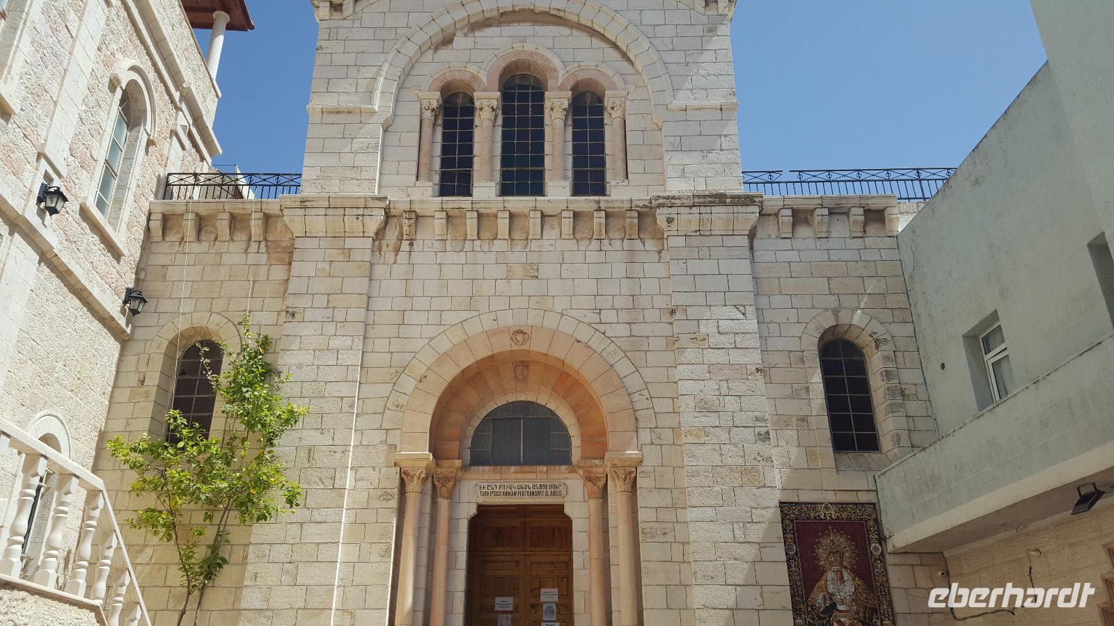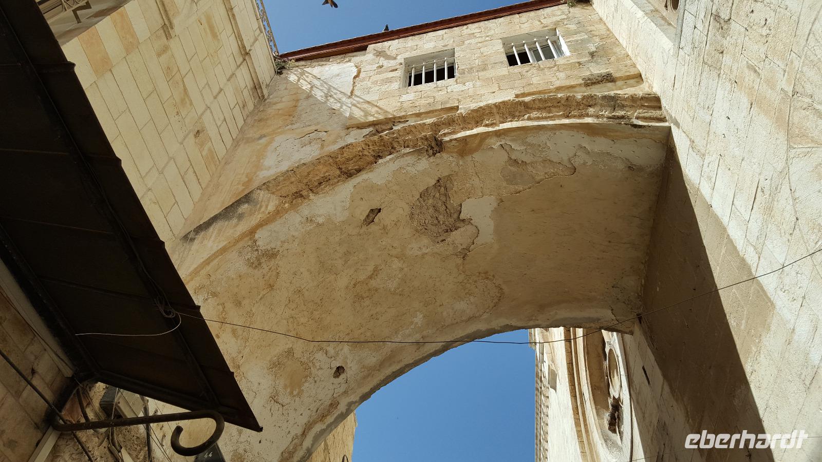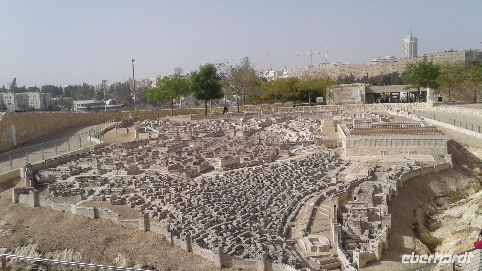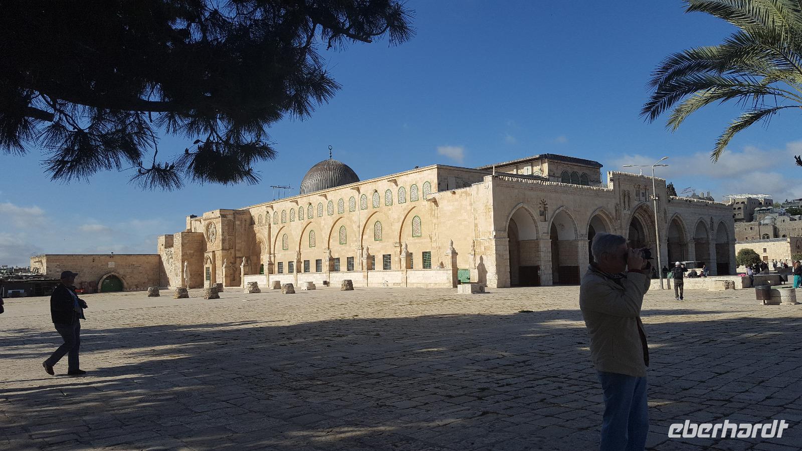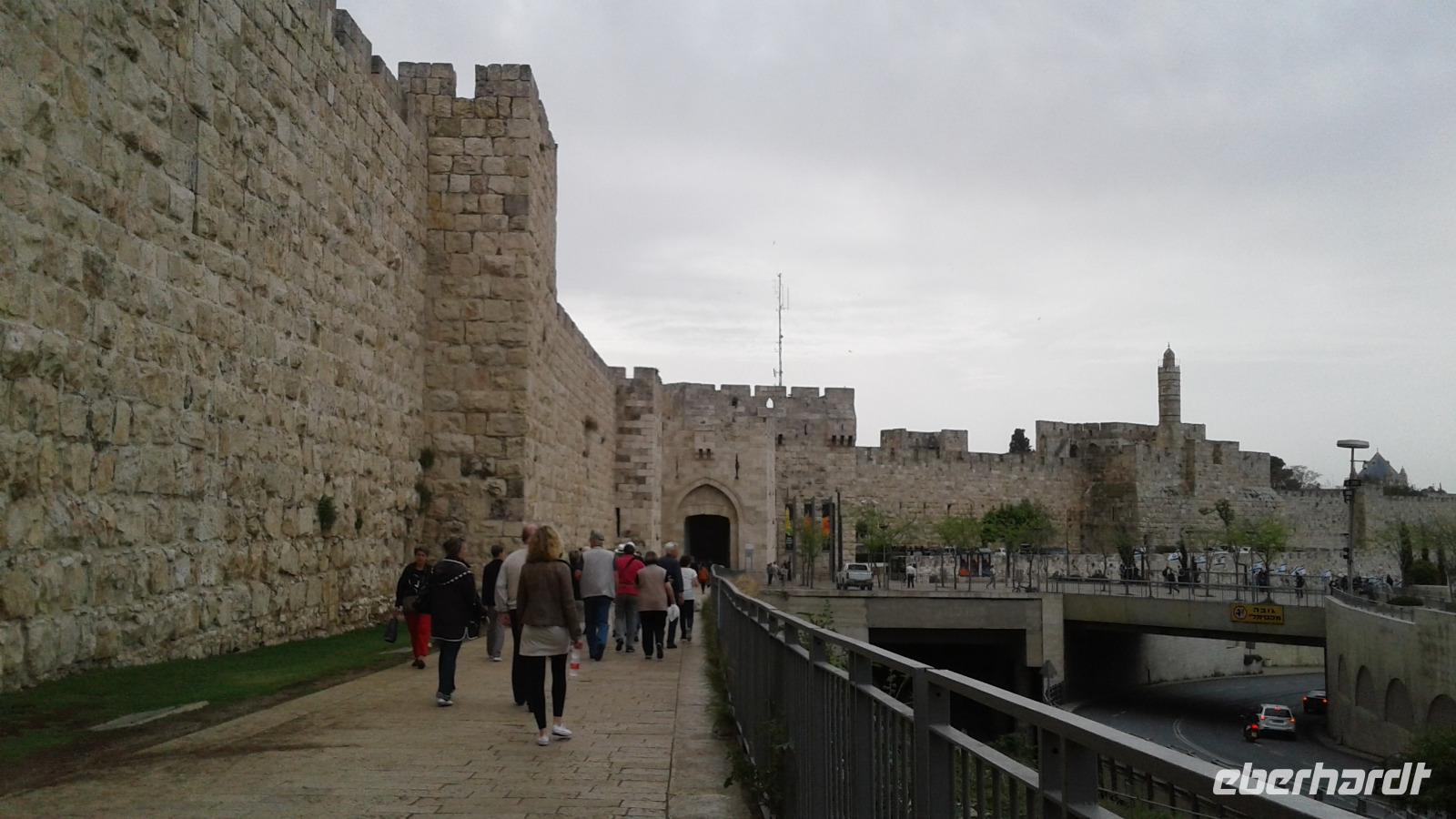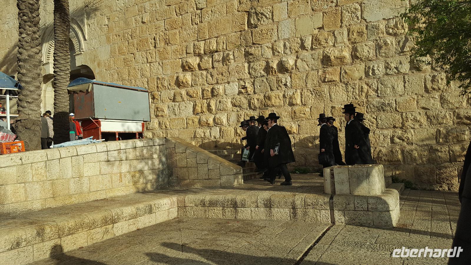Der Tag heute gehört Jerusalem. Schon gestern haben wir viel gesehen und gehört, heute haben wir wieder Zeit für diese atemberaubende Stadt. Wir beginnen zeitig: 7:30 Uhr fahren wir los vom Hotel zum Ölberg. Von der Terrasse des Seven Arches Hotels haben wir einen phantastischen Panoramablick über die Stadt. Als zusätzliches Highlight besuchen wir die Dominus Flevit-Kirche. Wir halten inne mit einem Bibel-Zitat und genießen die Ausblicke. Gabi erläutert uns die Nekropolen bevor wir weiterspazieren zum Garten Gethsemane. Uralte Olivenbäume stehen hier, neue kommen hinzu. Natürlich besuchen wir die Kirche aller Nationen, den Namen erhielt sie, weil Kuppeln und prächtige Mosaiken von verschiedenen Nationen gestiftet wurden. Sie ist auch als „Todesangst-Basilika" bekannt, der „Felsen der Todesangst Jesu" befindet sich genau vor dem Altar der Kirche. Wir spazieren weiter und erreichen durch das Lions-Gate, das Löwentor, die St. Annen- Kirche unweit der Bethesda-Teiche. Sie ist eine der schönsten Kirchen der Stadt, ihr Bau erfolgte im 12. Jahrhundert. Es gibt eine Grotte, in der die Geburt der Maria verehrt wird. Hier verweilen wir einen Augenblick bevor wir weiterspazieren zur Via Dolorosa. An derem Eingang stehen heute das Terra Sancta Museum an dem Ort, wo einstmals Jesus zum Tode verurteilt worden war und die Geißelungskapelle. Letztere trägt in der Kuppel eine Dornenkrone, selbst die Leuchter zeigen Geißelungs-Gegenstände wie Peitschen und Nägel. In einem Haus der Wächter macht uns Gabi auf ein eingeritztes Spiel im Boden aufmerksam- man spielte damals um Menschen, um Menschenleben...Am Ecce Homo, bekannt als der Ausspruch von Pilatus: „Seht, es ist ein Mensch", da er aus den Geißelungswunden blutete, gehen wir durch den berühmten Torbogen und werfen durch die Glasscheibe einen Blick in das Kloster. Danach besuchen wir das österreichische Hospiz, Schwester Bernadette kredenzt in ihrem „Wiener Kaffeehaus" Kaffee und Kuchen und dann können wir- Eberhardt Travel machts möglich- auch die Dachterrasse besuchen. Was für ein Ausblick! Wir nutzen die Gelegenheit und schauen uns noch die Kapelle im Hospiz an, dann geht es schon weiter zur nächsten Station des Kreuzweges. Die dritte: Jesus fällt zum ersten Mal mit dem Kreuz. Eine kleine Kapelle erinnert daran. Wir folgen den weiteren bis zur 7. Station. Läden und Geschäfte säumen den Weg und unzählige Menschen sind bereits unterwegs, Gott sei Dank ebbt dieser Strom bald ab und wir haben Muße, alles zu betrachten. Dann stehen wir vor Deir es Sultan- den Klosterzellen der äthiopischen Mönche und der Zugang zu einer koptischen Kirche auf einer Plattform oberhalb der Grabeskirche. Alle weiteren Stationen des Kreuzweges befinden sich in der Grabeskirche. Am Salbungsstein beten und weinen Besucher, das Christusgrab befindet sich im Zentrum. Jeder verbringt seine Zeit hier wie er möchte. Wir gehen weiter zur deutsch-lutherischen Erlöserkirche in der Muristan Straße, halten kurz inne und dann ist individuell Zeit, die Auslagen und Läden zu bewundern. Wir treffen uns am heutigen Cardo und bestaunen im jüdischen Viertel die Ausgrabungen des Cardo, die freigelegten Straßen mit den Säulen beidseits liegen deutlich unter dem heutigen Niveau. Faszinierend die bildlichen Darstellungen und Mosaiken. Eine unserer letzten Stationen für heute ist der Zionsberg mit der Dormitio-Abtei. An dieser Stelle soll die Gottesmutter Maria entschlafen sein. In der Krypta wird ihre Grabstelle verehrt. Weiter geht es vorbei am Grab von König David hinauf zum berühmten Abendmahlsaal. Hier soll Jesus mit seinen Jüngern das berühmte letzte Abendmahl eingenommen haben. Hierher zogen sich die Jünger nach der Kreuzigung zurück und hier sollen sie auch mit Maria den heiligen Geist empfangen haben. Schlicht gehalten enthält der Raum heute auch eine muslimische Gebetsnische, da er im 16. Jahrhundert nach der Vertreibung der Franziskaner in eine Moschee umgewandelt wurde. Damit endet unser Jerusalem-Rundgang für heute, doch für den Abend steht noch ein Highlight an: die Jerusalem Sound & Licht Show. Also kehren wir ins Hotel zurück, genießen ein zeitiges Abendessen und fahren noch einmal zurück. Als kleine Überraschung hat Gabi Wein besorgt und wir stoßen vor der Stadtmauer auf einen tollen Abend an. Die Show ist überwältigend, Bauwerk, Licht und Musik verschmelzen zu einem wunderbaren Erlebnis der Geschichte Jerusalems. Unser Bus bringt uns sicher zurück zum Hotel und jeder läßt den Tag für sich ausklingen.