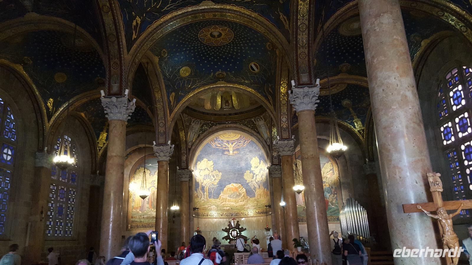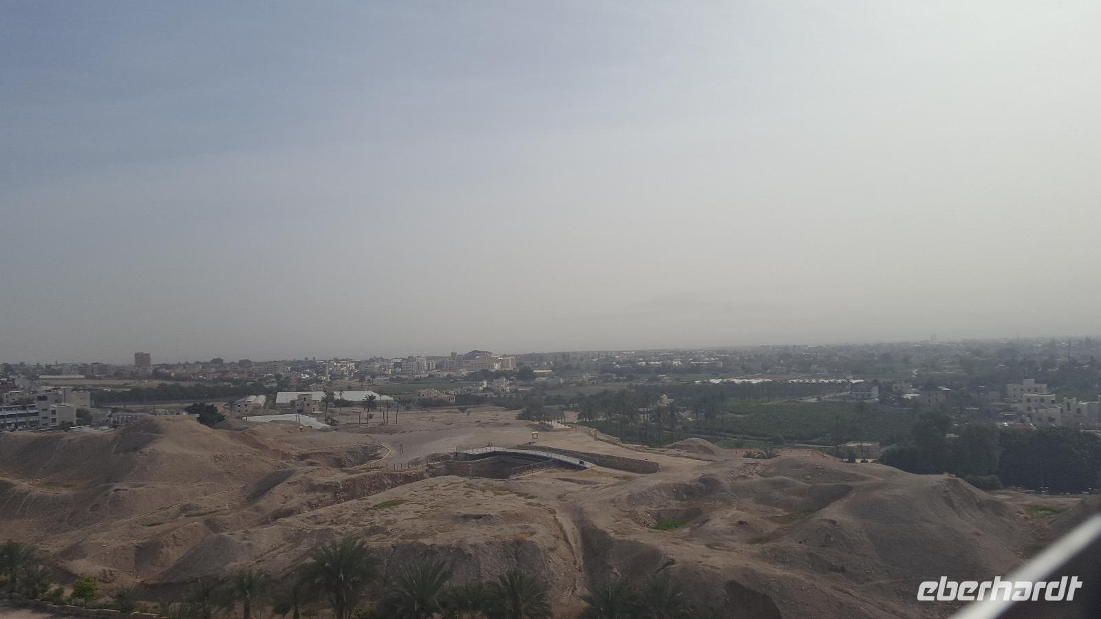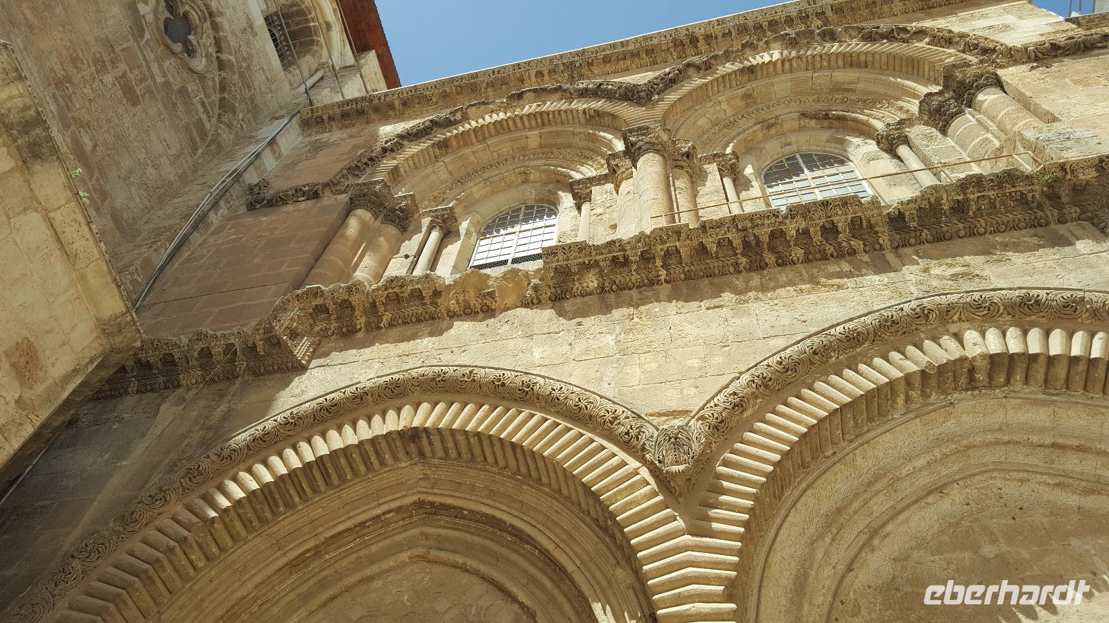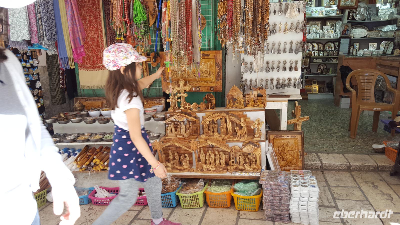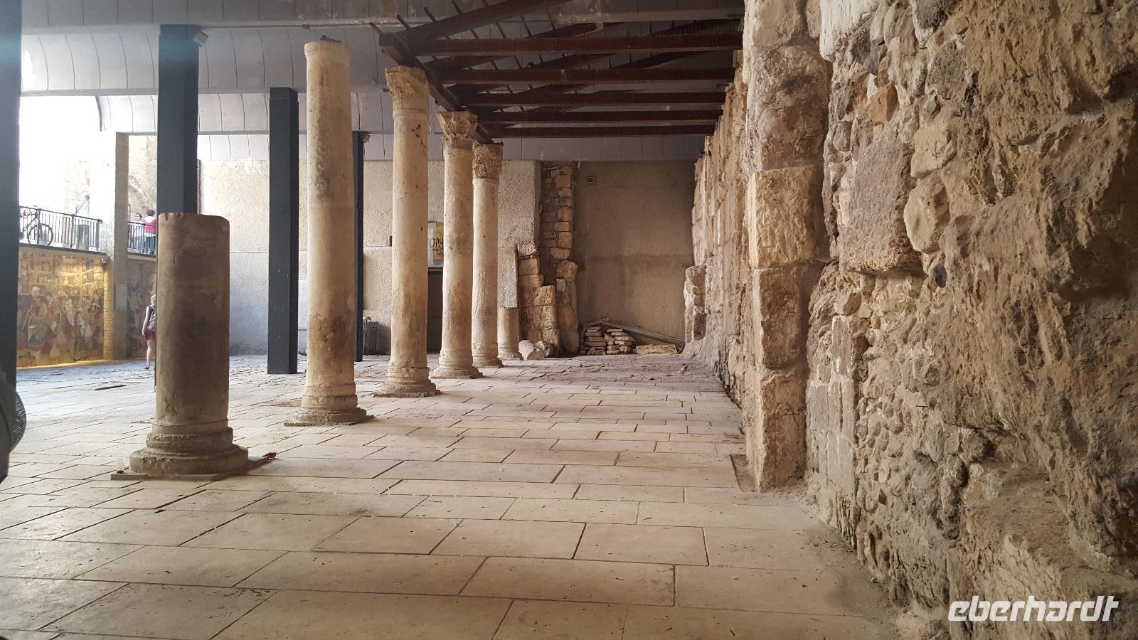 Der Tag heute gehört Jerusalem. Schon gestern haben wir viel gesehen und gehört, heute haben wir wieder Zeit für diese atemberaubende Stadt. Wir beginnen zeitig: 7:30 Uhr fahren wir los vom Hotel zum Ölberg. Von der Terrasse des Seven Arches Hotels haben wir einen phantastischen Panoramablick über die Stadt. Als zusätzliches Highlight besuchen wir die Dominus Flevit-Kirche. Wir halten inne mit einem Bibel-Zitat und genießen die Ausblicke. Gabi erläutert uns die Nekropolen bevor wir weiterspazieren zum Garten Gethsemane. Uralte Olivenbäume stehen hier, neue kommen hinzu. Natürlich besuchen wir die Kirche aller Nationen, den Namen erhielt sie, weil Kuppeln und prächtige Mosaiken von verschiedenen Nationen gestiftet wurden. Sie ist auch als „Todesangst-Basilika" bekannt, der „Felsen der Todesangst Jesu" befindet sich genau vor dem Altar der Kirche. Wir spazieren weiter und erreichen durch das Lions-Gate, das Löwentor, die St. Annen- Kirche unweit der Bethesda-Teiche. Sie ist eine der schönsten Kirchen der Stadt, ihr Bau erfolgte im 12. Jahrhundert. Es gibt eine Grotte, in der die Geburt der Maria verehrt wird. Hier verweilen wir einen Augenblick bevor wir weiterspazieren zur Via Dolorosa. An derem Eingang stehen heute das Terra Sancta Museum an dem Ort, wo einstmals Jesus zum Tode verurteilt worden war und die Geißelungskapelle. Letztere trägt in der Kuppel eine Dornenkrone, selbst die Leuchter zeigen Geißelungs-Gegenstände wie Peitschen und Nägel. In einem Haus der Wächter macht uns Gabi auf ein eingeritztes Spiel im Boden aufmerksam- man spielte damals um Menschen, um Menschenleben...Am Ecce Homo, bekannt als der Ausspruch von Pilatus: „Seht, es ist ein Mensch", da er aus den Geißelungswunden blutete, gehen wir durch den berühmten Torbogen und werfen durch die Glasscheibe einen Blick in das Kloster. Danach besuchen wir das österreichische Hospiz, Schwester Bernadette kredenzt in ihrem „Wiener Kaffeehaus" Kaffee und Kuchen und dann können wir- Eberhardt Travel machts möglich- auch die Dachterrasse besuchen. Was für ein Ausblick! Wir nutzen die Gelegenheit und schauen uns noch die Kapelle im Hospiz an, dann geht es schon weiter zur nächsten Station des Kreuzweges. Die dritte: Jesus fällt zum ersten Mal mit dem Kreuz. Eine kleine Kapelle erinnert daran. Wir folgen den weiteren bis zur 7. Station. Läden und Geschäfte säumen den Weg und unzählige Menschen sind bereits unterwegs, Gott sei Dank ebbt dieser Strom bald ab und wir haben Muße, alles zu betrachten. Dann stehen wir vor Deir es Sultan- den Klosterzellen der äthiopischen Mönche und der Zugang zu einer koptischen Kirche auf einer Plattform oberhalb der Grabeskirche. Alle weiteren Stationen des Kreuzweges befinden sich in der Grabeskirche. Am Salbungsstein beten und weinen Besucher, das Christusgrab befindet sich im Zentrum. Jeder verbringt seine Zeit hier wie er möchte. Wir gehen weiter zur deutsch-lutherischen Erlöserkirche in der Muristan Straße, halten kurz inne und dann ist individuell Zeit, die Auslagen und Läden zu bewundern. Wir treffen uns am heutigen Cardo und bestaunen im jüdischen Viertel die Ausgrabungen des Cardo, die freigelegten Straßen mit den Säulen beidseits liegen deutlich unter dem heutigen Niveau. Faszinierend die bildlichen Darstellungen und Mosaiken. Eine unserer letzten Stationen für heute ist der Zionsberg mit der Dormitio-Abtei. An dieser Stelle soll die Gottesmutter Maria entschlafen sein. In der Krypta wird ihre Grabstelle verehrt. Weiter geht es vorbei am Grab von König David hinauf zum berühmten Abendmahlsaal. Hier soll Jesus mit seinen Jüngern das berühmte letzte Abendmahl eingenommen haben. Hierher zogen sich die Jünger nach der Kreuzigung zurück und hier sollen sie auch mit Maria den heiligen Geist empfangen haben. Schlicht gehalten enthält der Raum heute auch eine muslimische Gebetsnische, da er im 16. Jahrhundert nach der Vertreibung der Franziskaner in eine Moschee umgewandelt wurde. Damit endet unser Jerusalem-Rundgang für heute, doch für den Abend steht noch ein Highlight an: die Jerusalem Sound & Licht Show. Also kehren wir ins Hotel zurück, genießen ein zeitiges Abendessen und fahren noch einmal zurück. Als kleine Überraschung hat Gabi Wein besorgt und wir stoßen vor der Stadtmauer auf einen tollen Abend an. Die Show ist überwältigend, Bauwerk, Licht und Musik verschmelzen zu einem wunderbaren Erlebnis der Geschichte Jerusalems. Unser Bus bringt uns sicher zurück zum Hotel und jeder läßt den Tag für sich ausklingen.