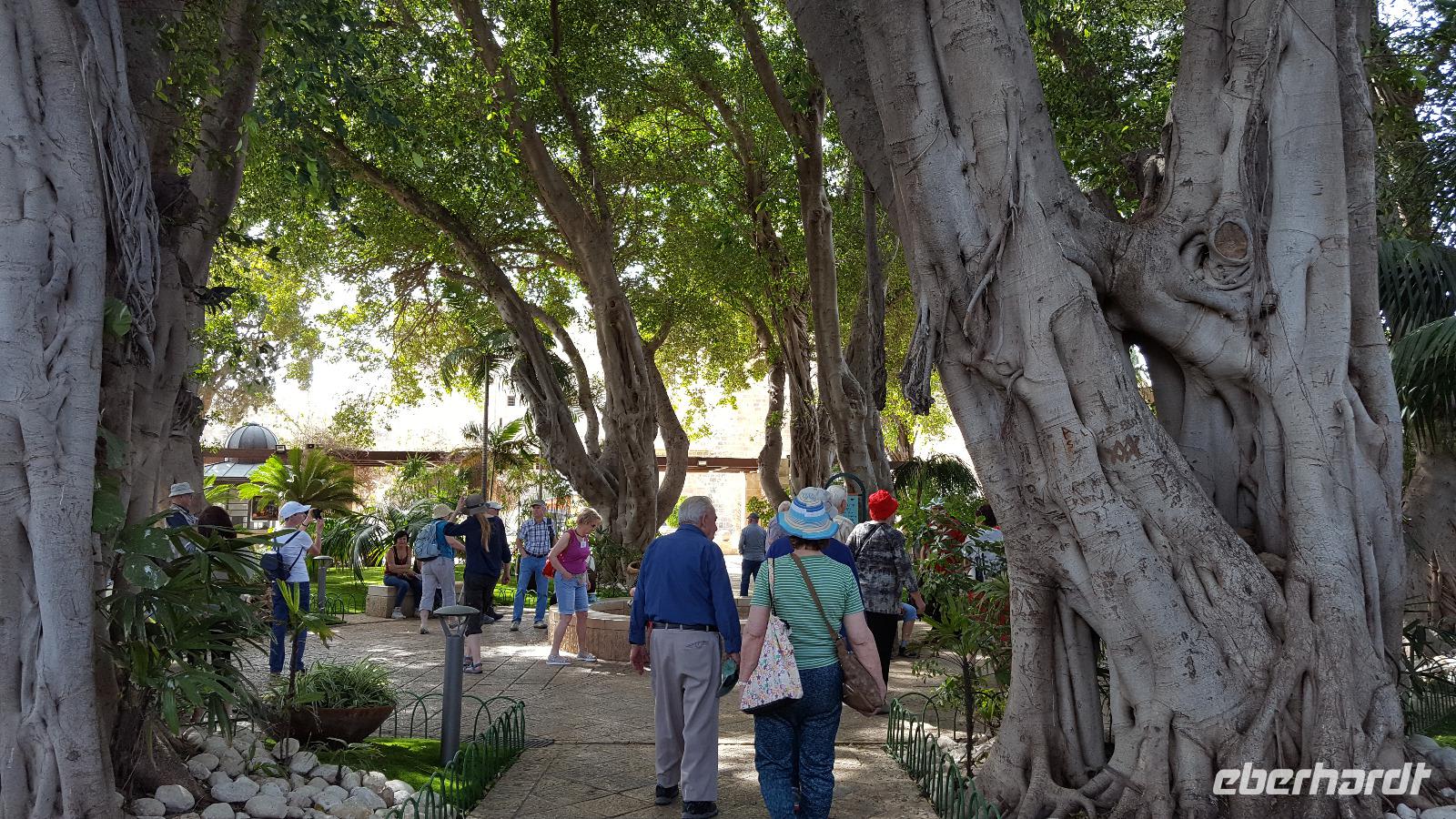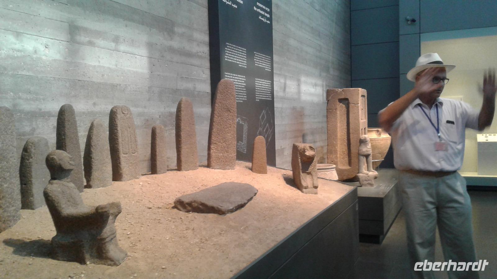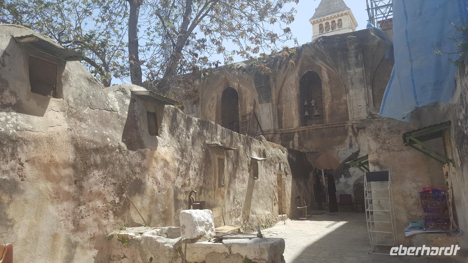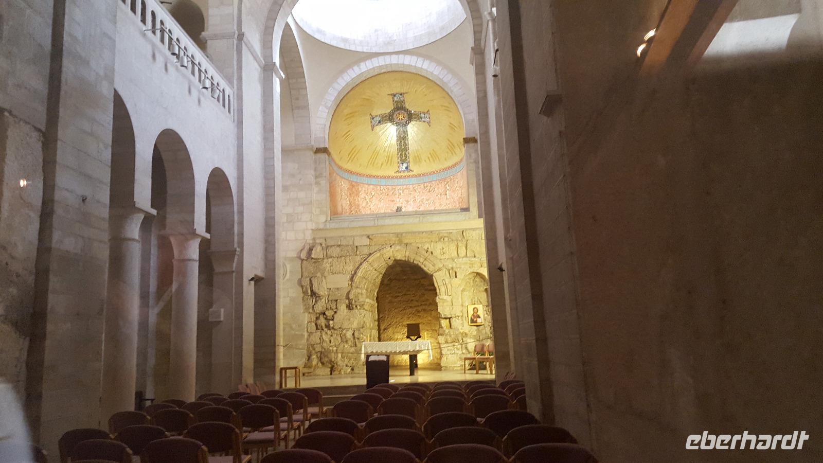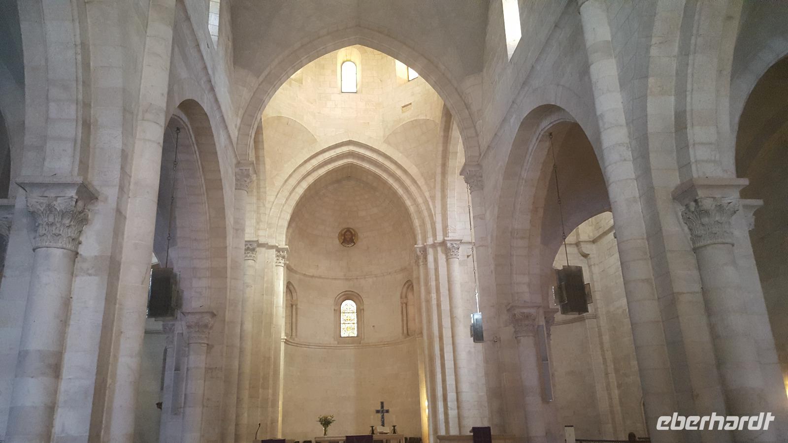 Der Tag heute gehört Jerusalem. Schon gestern haben wir viel gesehen und gehört, heute haben wir wieder Zeit für diese atemberaubende Stadt. Wir beginnen zeitig: 7:30 Uhr fahren wir los vom Hotel zum Ölberg. Von der Terrasse des Seven Arches Hotels haben wir einen phantastischen Panoramablick über die Stadt. Als zusätzliches Highlight besuchen wir die Dominus Flevit-Kirche. Wir halten inne mit einem Bibel-Zitat und genießen die Ausblicke. Gabi erläutert uns die Nekropolen bevor wir weiterspazieren zum Garten Gethsemane. Uralte Olivenbäume stehen hier, neue kommen hinzu. Natürlich besuchen wir die Kirche aller Nationen, den Namen erhielt sie, weil Kuppeln und prächtige Mosaiken von verschiedenen Nationen gestiftet wurden. Sie ist auch als „Todesangst-Basilika" bekannt, der „Felsen der Todesangst Jesu" befindet sich genau vor dem Altar der Kirche. Wir spazieren weiter und erreichen durch das Lions-Gate, das Löwentor, die St. Annen- Kirche unweit der Bethesda-Teiche. Sie ist eine der schönsten Kirchen der Stadt, ihr Bau erfolgte im 12. Jahrhundert. Es gibt eine Grotte, in der die Geburt der Maria verehrt wird. Hier verweilen wir einen Augenblick bevor wir weiterspazieren zur Via Dolorosa. An derem Eingang stehen heute das Terra Sancta Museum an dem Ort, wo einstmals Jesus zum Tode verurteilt worden war und die Geißelungskapelle. Letztere trägt in der Kuppel eine Dornenkrone, selbst die Leuchter zeigen Geißelungs-Gegenstände wie Peitschen und Nägel. In einem Haus der Wächter macht uns Gabi auf ein eingeritztes Spiel im Boden aufmerksam- man spielte damals um Menschen, um Menschenleben...Am Ecce Homo, bekannt als der Ausspruch von Pilatus: „Seht, es ist ein Mensch", da er aus den Geißelungswunden blutete, gehen wir durch den berühmten Torbogen und werfen durch die Glasscheibe einen Blick in das Kloster. Danach besuchen wir das österreichische Hospiz, Schwester Bernadette kredenzt in ihrem „Wiener Kaffeehaus" Kaffee und Kuchen und dann können wir- Eberhardt Travel machts möglich- auch die Dachterrasse besuchen. Was für ein Ausblick! Wir nutzen die Gelegenheit und schauen uns noch die Kapelle im Hospiz an, dann geht es schon weiter zur nächsten Station des Kreuzweges. Die dritte: Jesus fällt zum ersten Mal mit dem Kreuz. Eine kleine Kapelle erinnert daran. Wir folgen den weiteren bis zur 7. Station. Läden und Geschäfte säumen den Weg und unzählige Menschen sind bereits unterwegs, Gott sei Dank ebbt dieser Strom bald ab und wir haben Muße, alles zu betrachten. Dann stehen wir vor Deir es Sultan- den Klosterzellen der äthiopischen Mönche und der Zugang zu einer koptischen Kirche auf einer Plattform oberhalb der Grabeskirche. Alle weiteren Stationen des Kreuzweges befinden sich in der Grabeskirche. Am Salbungsstein beten und weinen Besucher, das Christusgrab befindet sich im Zentrum. Jeder verbringt seine Zeit hier wie er möchte. Wir gehen weiter zur deutsch-lutherischen Erlöserkirche in der Muristan Straße, halten kurz inne und dann ist individuell Zeit, die Auslagen und Läden zu bewundern. Wir treffen uns am heutigen Cardo und bestaunen im jüdischen Viertel die Ausgrabungen des Cardo, die freigelegten Straßen mit den Säulen beidseits liegen deutlich unter dem heutigen Niveau. Faszinierend die bildlichen Darstellungen und Mosaiken. Eine unserer letzten Stationen für heute ist der Zionsberg mit der Dormitio-Abtei. An dieser Stelle soll die Gottesmutter Maria entschlafen sein. In der Krypta wird ihre Grabstelle verehrt. Weiter geht es vorbei am Grab von König David hinauf zum berühmten Abendmahlsaal. Hier soll Jesus mit seinen Jüngern das berühmte letzte Abendmahl eingenommen haben. Hierher zogen sich die Jünger nach der Kreuzigung zurück und hier sollen sie auch mit Maria den heiligen Geist empfangen haben. Schlicht gehalten enthält der Raum heute auch eine muslimische Gebetsnische, da er im 16. Jahrhundert nach der Vertreibung der Franziskaner in eine Moschee umgewandelt wurde. Damit endet unser Jerusalem-Rundgang für heute, doch für den Abend steht noch ein Highlight an: die Jerusalem Sound & Licht Show. Also kehren wir ins Hotel zurück, genießen ein zeitiges Abendessen und fahren noch einmal zurück. Als kleine Überraschung hat Gabi Wein besorgt und wir stoßen vor der Stadtmauer auf einen tollen Abend an. Die Show ist überwältigend, Bauwerk, Licht und Musik verschmelzen zu einem wunderbaren Erlebnis der Geschichte Jerusalems. Unser Bus bringt uns sicher zurück zum Hotel und jeder läßt den Tag für sich ausklingen.