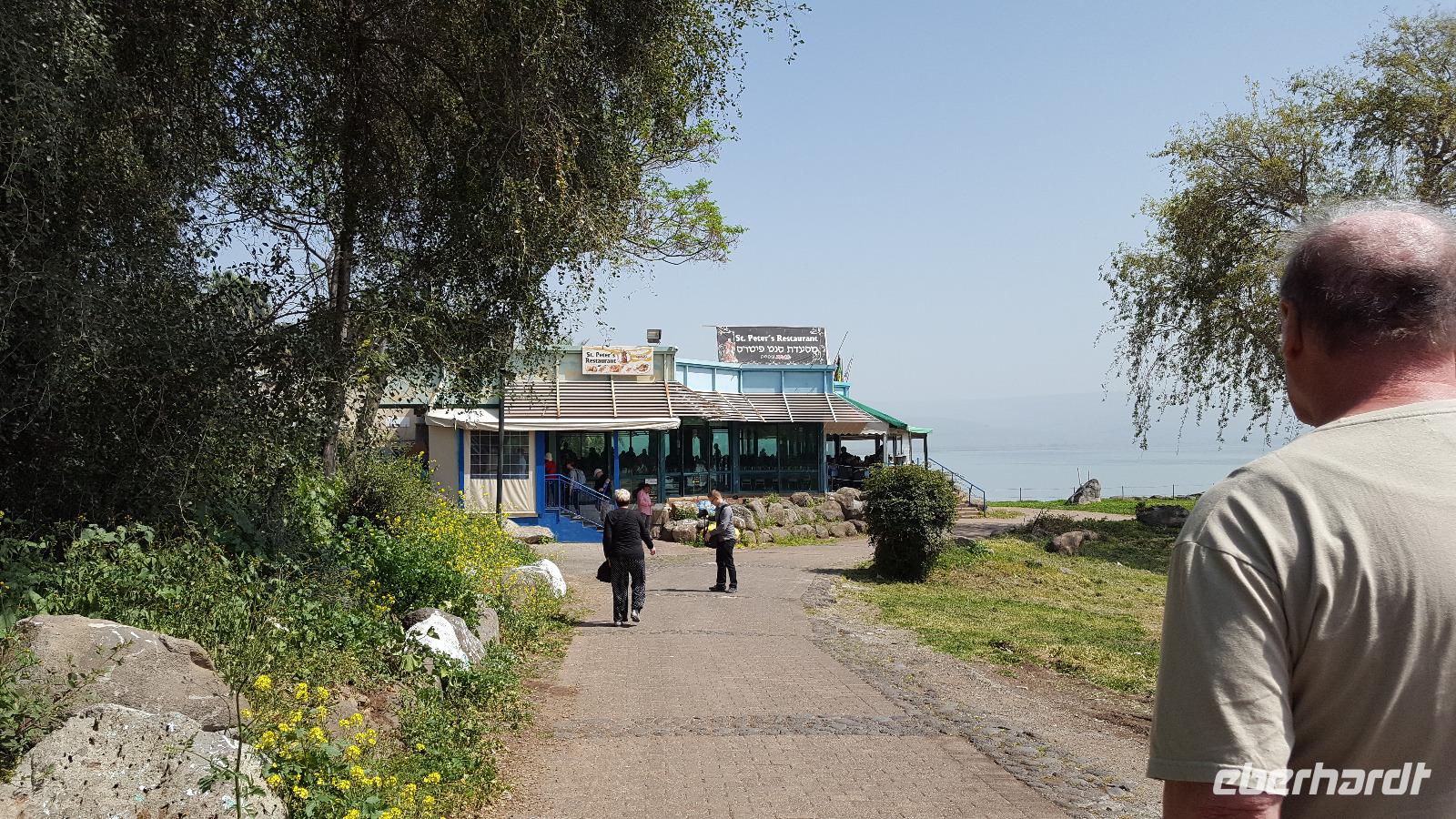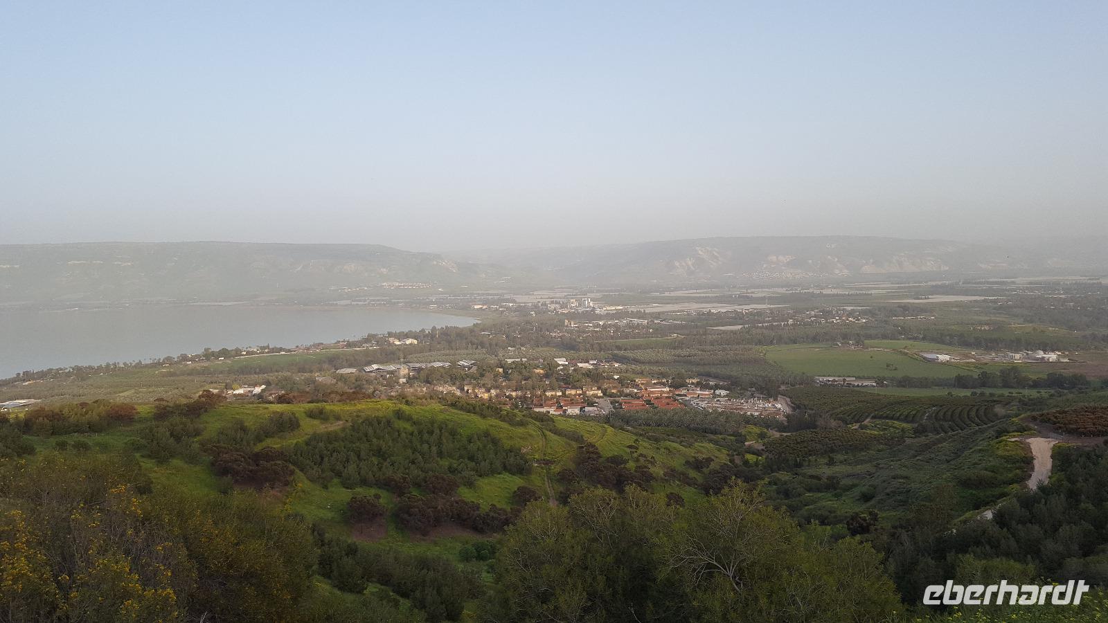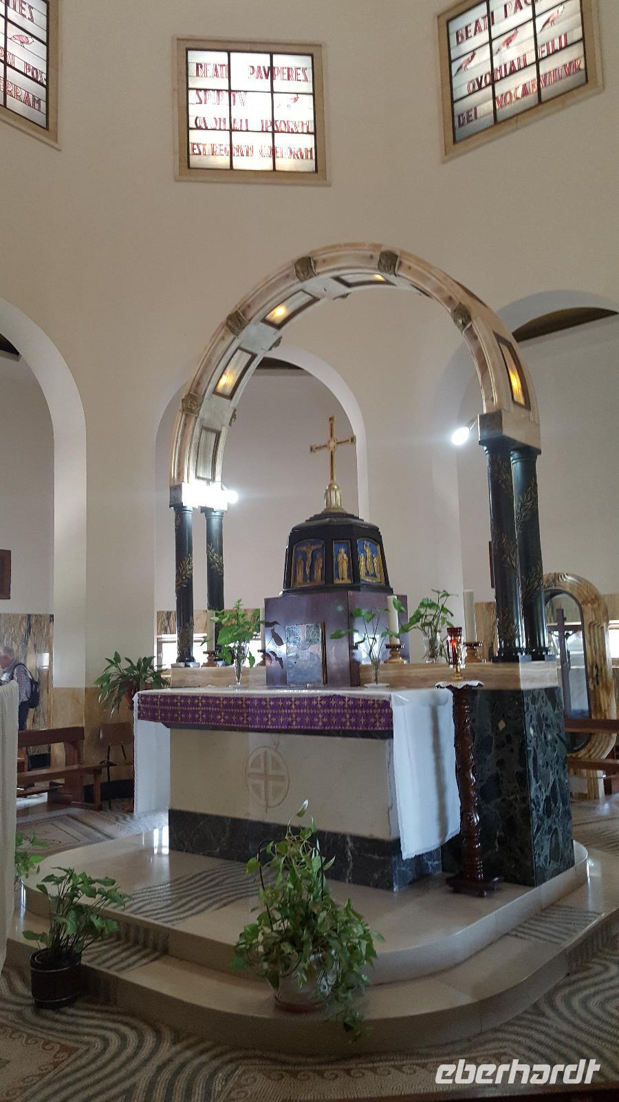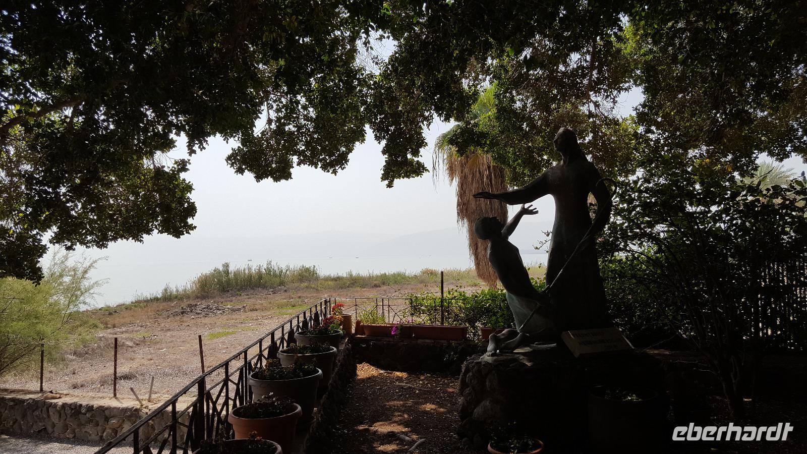 Auch heute heißt es wieder: zeitig los, 8 Uhr geht es los, an Mango- und Bananenfeldern, Dattelpalmen und Olivenhainen vorbei zum Berg der Seligpreisungen. Wir lauschen den Seligpreisungen der Bergpredigt und besuchen die Kirche der Seligpreisungen. Diese wurde 1937 aus schwarzem Basalt und weißem Kalkstein fertiggestellt und ist von Antonio Barluzzi, einem Mönch und Architekten, entworfen worden. Er hat einen achteckigen Grundriss gewählt- für die 8 Seligpreisungen. Der üppige Garten wird vom angegliederten Kloster betreut. Immer wieder trifft man auf Mosaike und Gestaltungen, die an die biblische Geschichte erinnern, die Speisung der 5000 mit 5 Broten und 2 Fischen zum Beispiel. Dem widmet sich auch die Deutsche Brotvermehrungskirche vom deutschen Verein vom heiligen Lande, die wir im Anschluss besuchen. Dann wartet ein echtes Highlight auf uns: eine Bootsfahrt auf dem See Genezareth. Mit dem sogenannten Jesus-Boot fahren wir hinaus auf den See, der mit mehr als 200 Metern unter dem Meeresspiegel der tiefstgelegene Süßwassersee der Welt ist. Er wird auch Harfensee genannt, weil seine Form an eine Harfe erinnert. Jeder Gast erhält am Ende der Reise ein Zertifikat für diesen Ausflug mit dem Jesus-Boot und Gabi singt mit uns eines seiner Lieblingslieder: „Hevenu Schalom Alejchem"- Frieden für die ganze Welt. In Tabgha besuchen wir dann die Primatskapelle, auch Mensa Christi (Tisch Christi) genannt. Nicht nur die üppig geschnitzte Eingangstür beeindruckt uns. Es ist wieder Zeit für eine innere Einkehr im Garten und dann geht es weiter nach Kapernaum- auch Kafarnaum genannt. Die Stadt Jesu wird sie genannt und die Ausgrabungen zeugen vom damaligen Leben. Unter der Kirche, die 2007 erbaut wurde und von Gabi liebevoll „Ufo" tituliert wird, befindet sich das Haus von Petrus. Ein Glasboden läßt den Blick darauf frei. Beim Spaziergang findet man auch Überreste einer antiken Synagoge. Zahlreiche jüdische Symbole vom Davidstern bis zur Menora sind hier eingearbeitet. Im St.-Peter-Restaurant schließlich lassen wir uns den St.-Peter-Fisch schmecken. Wahlweise im Ganzen oder als Filet kommt dieser Tilapia, ein Buntbarsch, auf den Teller. Er soll nur hier im See Genezareth vorkommen. Angesichts der vielen Gäste hier machen wir uns schon ein wenig Sorgen um den Bestand ;-)) Seinen Namen verdankt der Fisch einer Bibelgeschichte: Um die Tempelsteuer zahlen zu können sagte Jesus zu Petrus, er solle seine Angel hier auswerfen. Tatsächlich hatte der Fisch dann ein Vier-Drachmen-Stück im Maul- genau den Betrag, den beide für die Tempelsteuer benötigten. So gestärkt fahren wir hinauf Richtung Golan-Höhen. Banyas ist unser Ziel- ein Quellfluss des Jordan. Israel hat dieses Gebiet im sogenannten Sechs-Tage-Krieg 1967 erobert, das ist bis heute nicht unumstritten. Wir sind trotzdem tief beeindruckt von der Schönheit dieses Gebietes. Kein kleines Rinnsal sondern eine mächtige Quelle entspringt hier am Fuße der Felswand. Ein obligatorisches Gruppenfoto entsteht und dann fahren wir wieder zurück nach Süden. Ein letzter Stopp für heute führt uns nach Qazrin oder auch Katzrin. Diese Stadt wurde erst 1977 gegründet und ist der israelische Verwaltungssitz des Golanbezirkes. Unser Ziel aber ist das Besucher-Zentrum der Golan Olive Oil Mill, einer Oliven- Ölmühle, die weit mehr bietet. Sie hat ein Verfahren entwickelt, wie der anfallende und umweltschädliche Treber bei der Ölgewinnung umgewandelt und für Kosmetik verwendet werden kann. Wir folgen der interessanten Führung und probieren alles gleich selber aus. Neben der ansässigen Weinkellerei entdecken wir auch eine Brauerei, die können wir heute zwar nicht mehr besichtigen, aber der Showroom ist noch offen und wir bekommen Infos zu den regionalen Bieren, ihrer Brauart und natürlich auch einige Exemplare zu kaufen. Dann können wir auf der Rückfahrt zum Kibbutz entspannen, Das gemeinsame Abendessen ist lecker und wie immer üppig und dann kämpft jeder wie gehabt mit den Einsätzen der Geschirrspülmaschine...