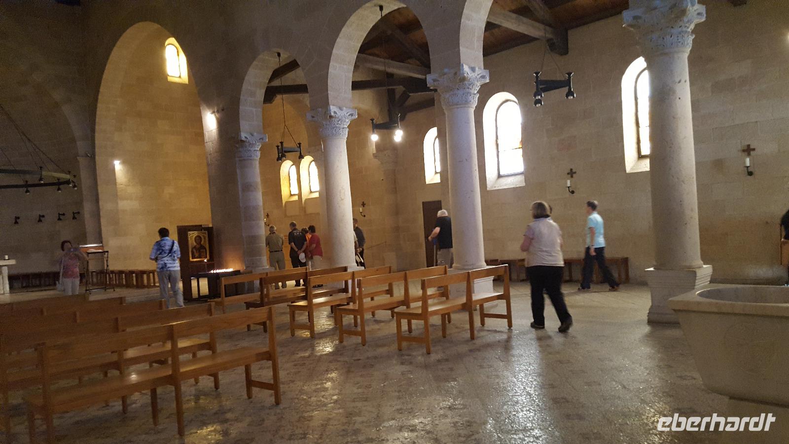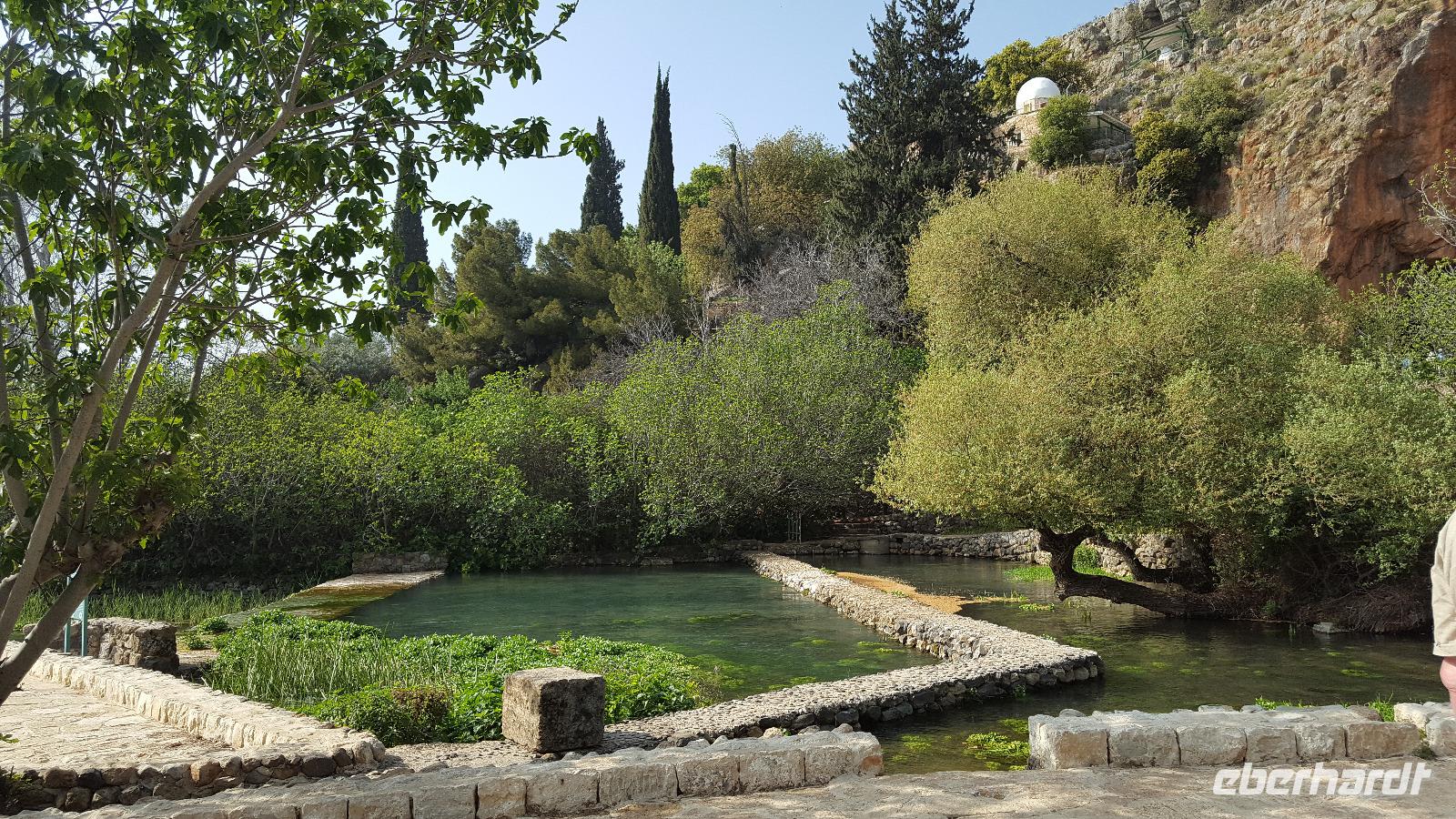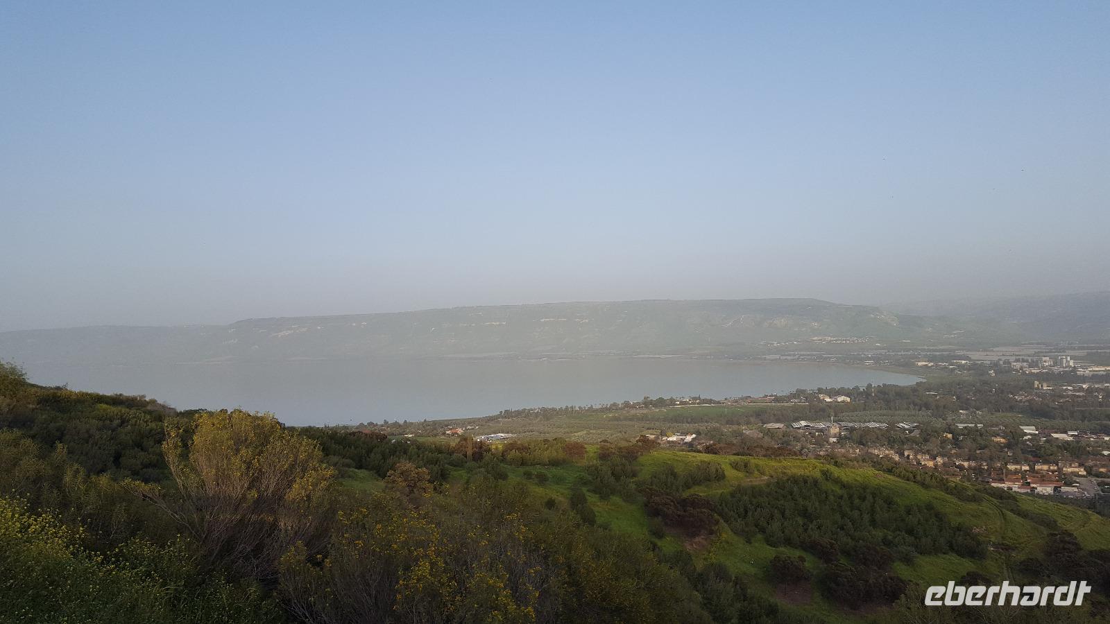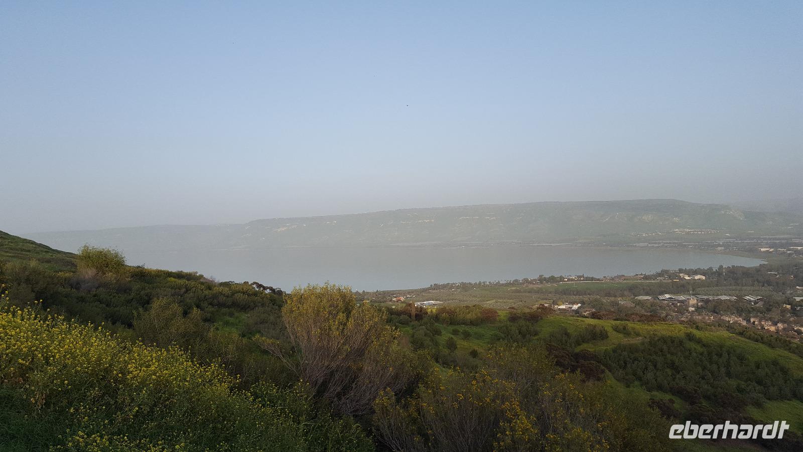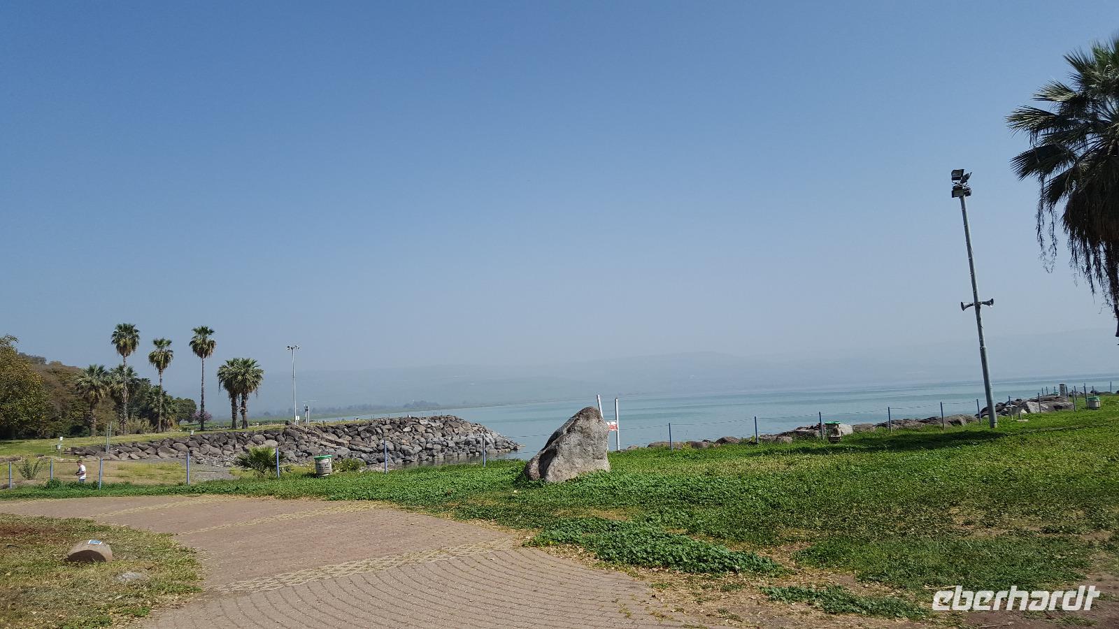 Auch heute heißt es wieder: zeitig los, 8 Uhr geht es los, an Mango- und Bananenfeldern, Dattelpalmen und Olivenhainen vorbei zum Berg der Seligpreisungen. Wir lauschen den Seligpreisungen der Bergpredigt und besuchen die Kirche der Seligpreisungen. Diese wurde 1937 aus schwarzem Basalt und weißem Kalkstein fertiggestellt und ist von Antonio Barluzzi, einem Mönch und Architekten, entworfen worden. Er hat einen achteckigen Grundriss gewählt- für die 8 Seligpreisungen. Der üppige Garten wird vom angegliederten Kloster betreut. Immer wieder trifft man auf Mosaike und Gestaltungen, die an die biblische Geschichte erinnern, die Speisung der 5000 mit 5 Broten und 2 Fischen zum Beispiel. Dem widmet sich auch die Deutsche Brotvermehrungskirche vom deutschen Verein vom heiligen Lande, die wir im Anschluss besuchen. Dann wartet ein echtes Highlight auf uns: eine Bootsfahrt auf dem See Genezareth. Mit dem sogenannten Jesus-Boot fahren wir hinaus auf den See, der mit mehr als 200 Metern unter dem Meeresspiegel der tiefstgelegene Süßwassersee der Welt ist. Er wird auch Harfensee genannt, weil seine Form an eine Harfe erinnert. Jeder Gast erhält am Ende der Reise ein Zertifikat für diesen Ausflug mit dem Jesus-Boot und Gabi singt mit uns eines seiner Lieblingslieder: „Hevenu Schalom Alejchem"- Frieden für die ganze Welt. In Tabgha besuchen wir dann die Primatskapelle, auch Mensa Christi (Tisch Christi) genannt. Nicht nur die üppig geschnitzte Eingangstür beeindruckt uns. Es ist wieder Zeit für eine innere Einkehr im Garten und dann geht es weiter nach Kapernaum- auch Kafarnaum genannt. Die Stadt Jesu wird sie genannt und die Ausgrabungen zeugen vom damaligen Leben. Unter der Kirche, die 2007 erbaut wurde und von Gabi liebevoll „Ufo" tituliert wird, befindet sich das Haus von Petrus. Ein Glasboden läßt den Blick darauf frei. Beim Spaziergang findet man auch Überreste einer antiken Synagoge. Zahlreiche jüdische Symbole vom Davidstern bis zur Menora sind hier eingearbeitet. Im St.-Peter-Restaurant schließlich lassen wir uns den St.-Peter-Fisch schmecken. Wahlweise im Ganzen oder als Filet kommt dieser Tilapia, ein Buntbarsch, auf den Teller. Er soll nur hier im See Genezareth vorkommen. Angesichts der vielen Gäste hier machen wir uns schon ein wenig Sorgen um den Bestand ;-)) Seinen Namen verdankt der Fisch einer Bibelgeschichte: Um die Tempelsteuer zahlen zu können sagte Jesus zu Petrus, er solle seine Angel hier auswerfen. Tatsächlich hatte der Fisch dann ein Vier-Drachmen-Stück im Maul- genau den Betrag, den beide für die Tempelsteuer benötigten. So gestärkt fahren wir hinauf Richtung Golan-Höhen. Banyas ist unser Ziel- ein Quellfluss des Jordan. Israel hat dieses Gebiet im sogenannten Sechs-Tage-Krieg 1967 erobert, das ist bis heute nicht unumstritten. Wir sind trotzdem tief beeindruckt von der Schönheit dieses Gebietes. Kein kleines Rinnsal sondern eine mächtige Quelle entspringt hier am Fuße der Felswand. Ein obligatorisches Gruppenfoto entsteht und dann fahren wir wieder zurück nach Süden. Ein letzter Stopp für heute führt uns nach Qazrin oder auch Katzrin. Diese Stadt wurde erst 1977 gegründet und ist der israelische Verwaltungssitz des Golanbezirkes. Unser Ziel aber ist das Besucher-Zentrum der Golan Olive Oil Mill, einer Oliven- Ölmühle, die weit mehr bietet. Sie hat ein Verfahren entwickelt, wie der anfallende und umweltschädliche Treber bei der Ölgewinnung umgewandelt und für Kosmetik verwendet werden kann. Wir folgen der interessanten Führung und probieren alles gleich selber aus. Neben der ansässigen Weinkellerei entdecken wir auch eine Brauerei, die können wir heute zwar nicht mehr besichtigen, aber der Showroom ist noch offen und wir bekommen Infos zu den regionalen Bieren, ihrer Brauart und natürlich auch einige Exemplare zu kaufen. Dann können wir auf der Rückfahrt zum Kibbutz entspannen, Das gemeinsame Abendessen ist lecker und wie immer üppig und dann kämpft jeder wie gehabt mit den Einsätzen der Geschirrspülmaschine...