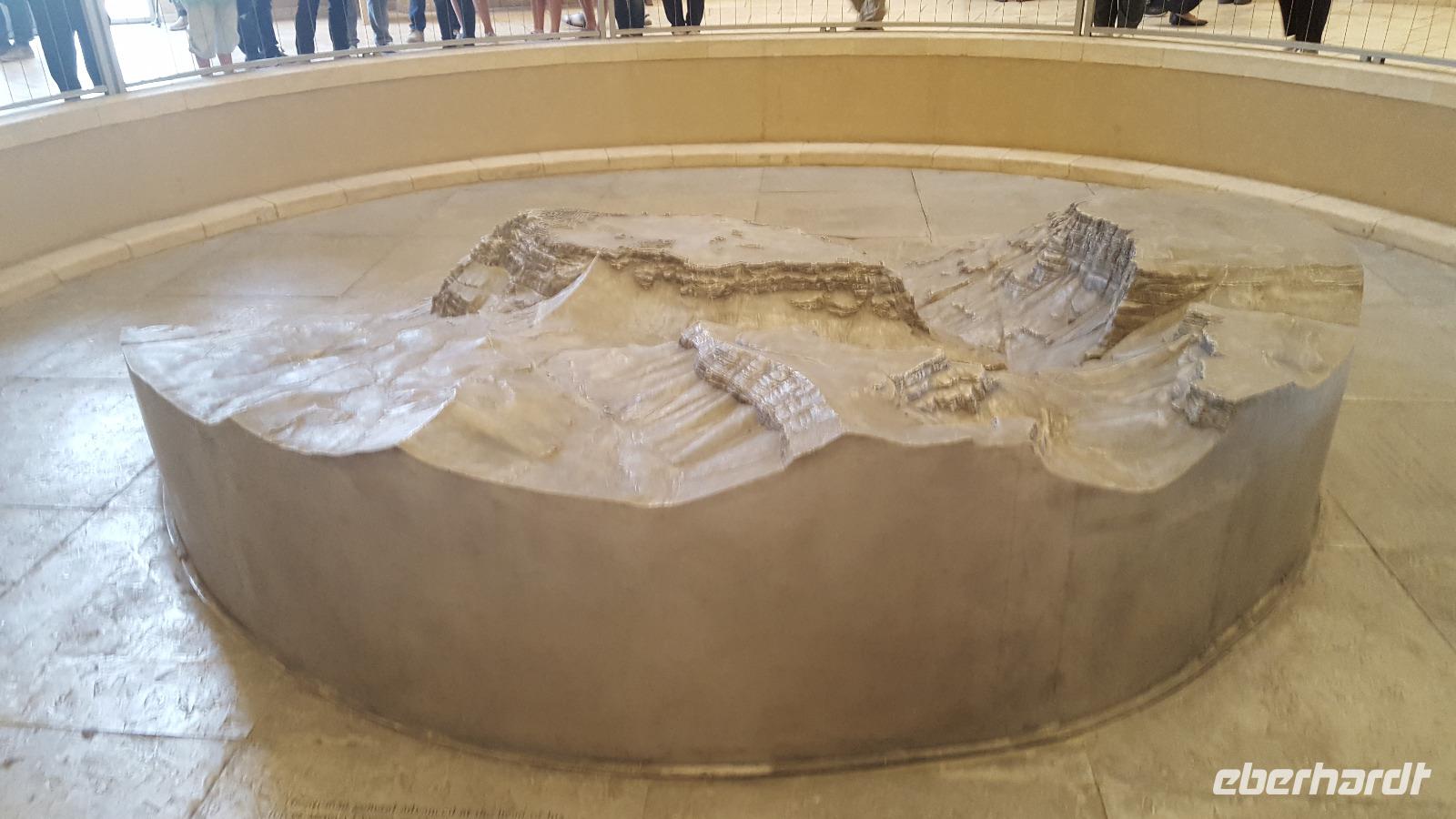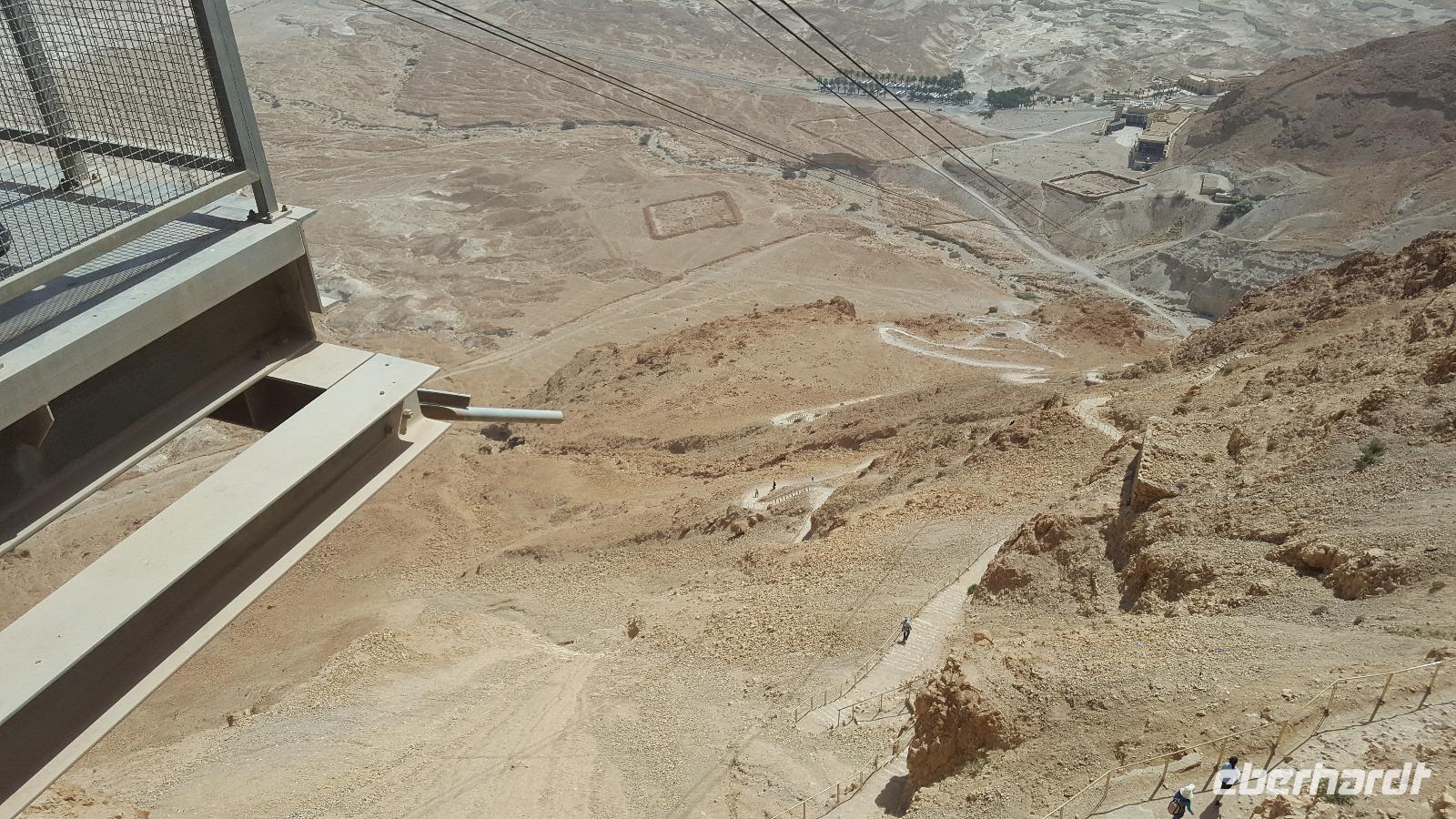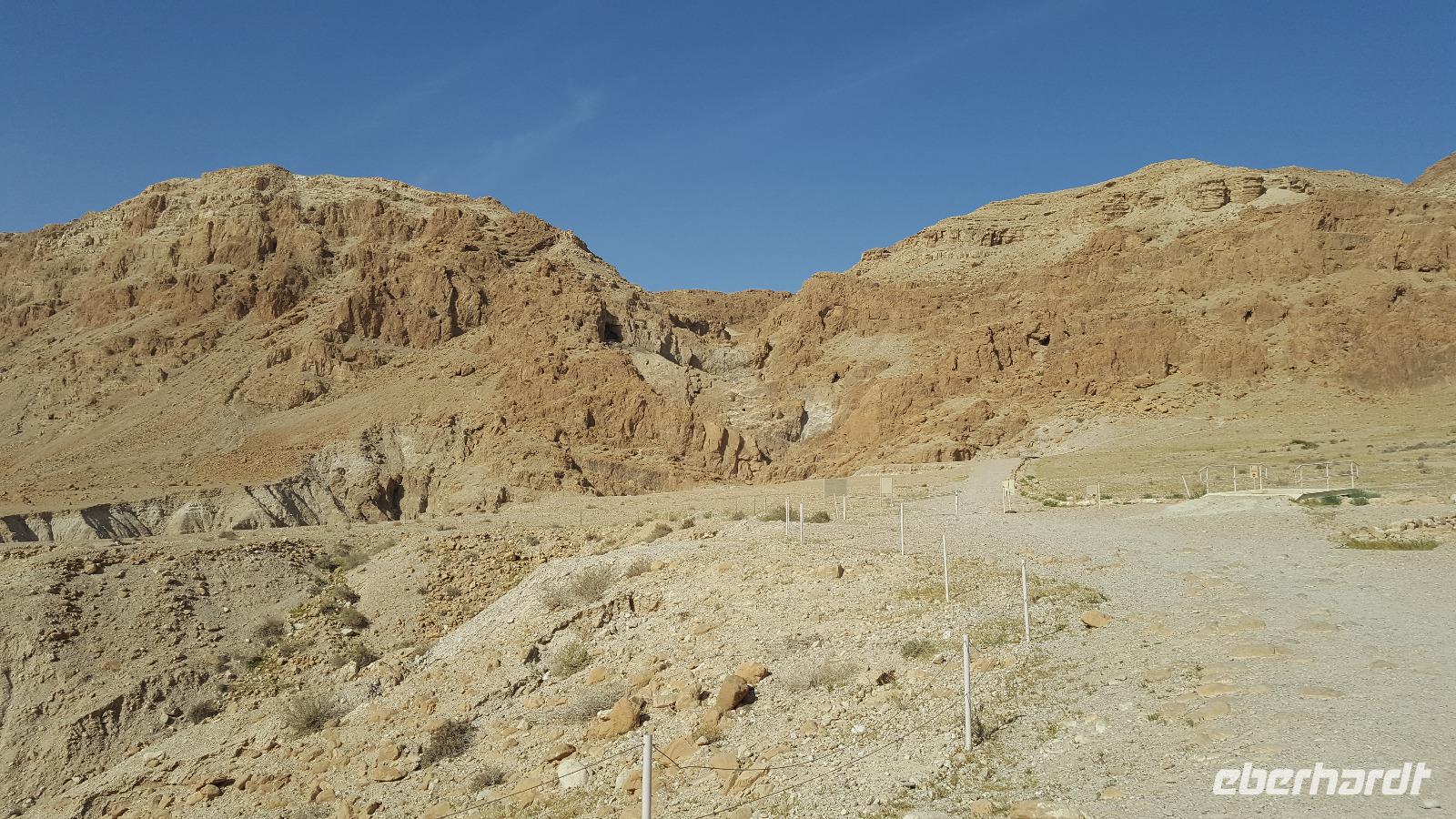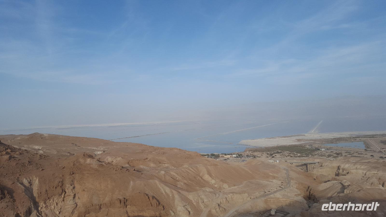 Heute fahren wir gegen 8 Uhr los- doch bereits jetzt zeigt das Thermometer beachtliche 26 ° C. Unser erstes Ziel Qumran liegt nur 10 Minuten entfernt. Im Besucherzentrum erläutert Gabi die Geschichte des Ortes, seiner Siedlung, der Höhlen und die Funde der Schriftrollen im Jahre 1947. Ein Film veranschaulicht das damalige Leben eindrucksvoll. Dann können wir die Ausgrabungen ansehen, die Zisterne, die Bäder- unheimlich wichtig damals für die rituellen Reinigungen, die Gemeinschaftsräume und auch die Bereiche, in denen Gärten bzw. Felder für den Anbau ihrer Lebensmittel vermutet werden. Natürlich können wir auch die Höhlen sehen, sie sind nummeriert und so heißt es heute, dass die Schriftrollen in Höhle Nr. 4 gefunden wurden- von einem Hirtenjungen. Wir freuen uns auf den Schatten unterm Sonnensegel, lauschen Gabis Erläuterungen und genießen den freien Blick über das Meer und die Ebenen. Dann geht unsere Fahrt weiter, immer am toten Meer entlang. Völlig unwirklich tauchen immer wieder grüne Oasen in der unwirtlichen Wüstenlandschaft auf, Gabi erzählt, mit welchem Aufwand es verbunden ist, hier das Salz aus der Erde zu waschen, um es fruchtbar zu machen und die Kulturen zu bewässern. Dann erreichen wir Massada. Hoch über dem Meer thront diese Festung, die seit 2001 auch zum Weltkulturerbe zählt. König Herodes nutzte die exponierte Lage und ließ hier seine Festung und seinen Palast erbauen. Im Besucherzentrum konnten wir einen Blick auf das Modell werfen, bevor wir mit der Seilbahn nach oben fuhren. Man kann auch den sogenannten Schlangenpfad nach oben laufen- aber bei mehr als 35 °C wollte sich dies niemand antun. Die Größe der Festung überraschte, ebenso dass schon die Räume der Kommandanten der Wache mit Fresken geschmückt waren. Wir konnten hinunter auf den Palast sehen, der in 3 Etagen in den Felsen gehauen war und man sah auch die Lager der römischen Belagerer und den Wall, den sie zur Belagerung der Festung ringsherum gebaut hatten. Bäder, Zisternen und Vorratsräume zeugten davon, dass die Menschen hier oben gut versorgt waren und keine Not litten. Sogar ein Schreiber sitzt gegenwärtig in der alten Schreibstube und kopiert Schriften bis ins kleinste Detail originalgetreu. Dann sahen wir sie: die römische Rampe. Die römischen Belagerer hatten eine Rampe den Felsen hinauf gebaut und waren im Begriff, die Mauern der Festung einzureißen. Derart ausweglos entschlossen sich die Juden zum Selbstmord. Am nächsten Tag fanden die Römer nur leblose Körper und verbrannte Vorräte. Ein beeindruckender Besuch! Eigentlich wollten wir die römische Rampe hinablaufen, aber wir entschlossen uns, doch die Seilbahn zu nehmen. Es war unerträglich heiß. Dann geht unsere Fahrt weiter Richtung Arad, immer am toten Meer entlang. Als wir Tamar erreichen sehen wir die ersten Beduinen mit ihren Herden. In einem Beduinendorf