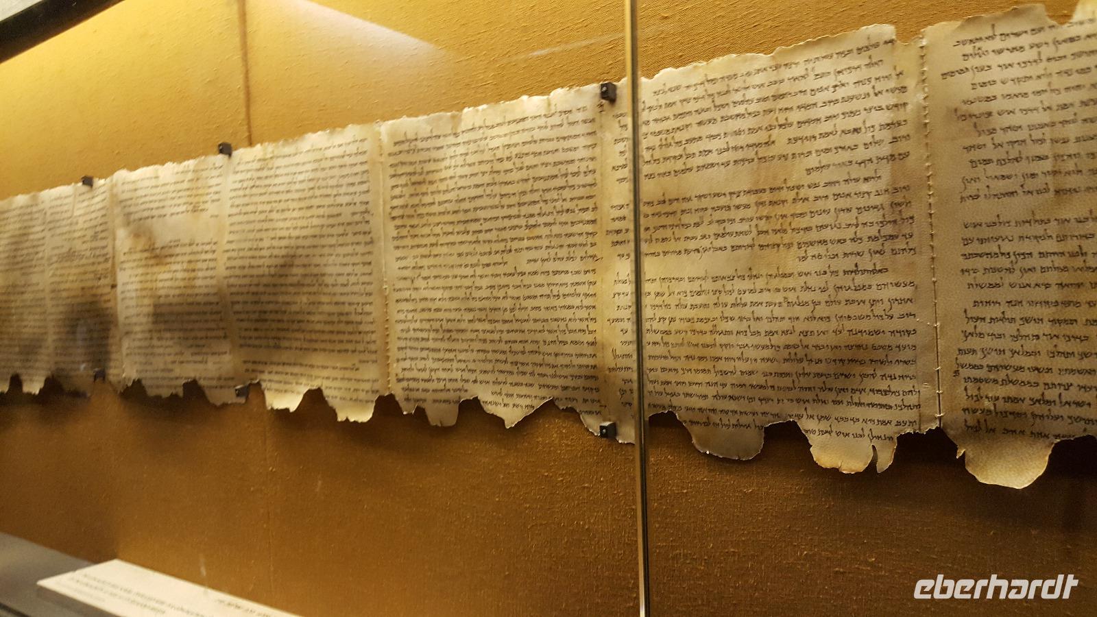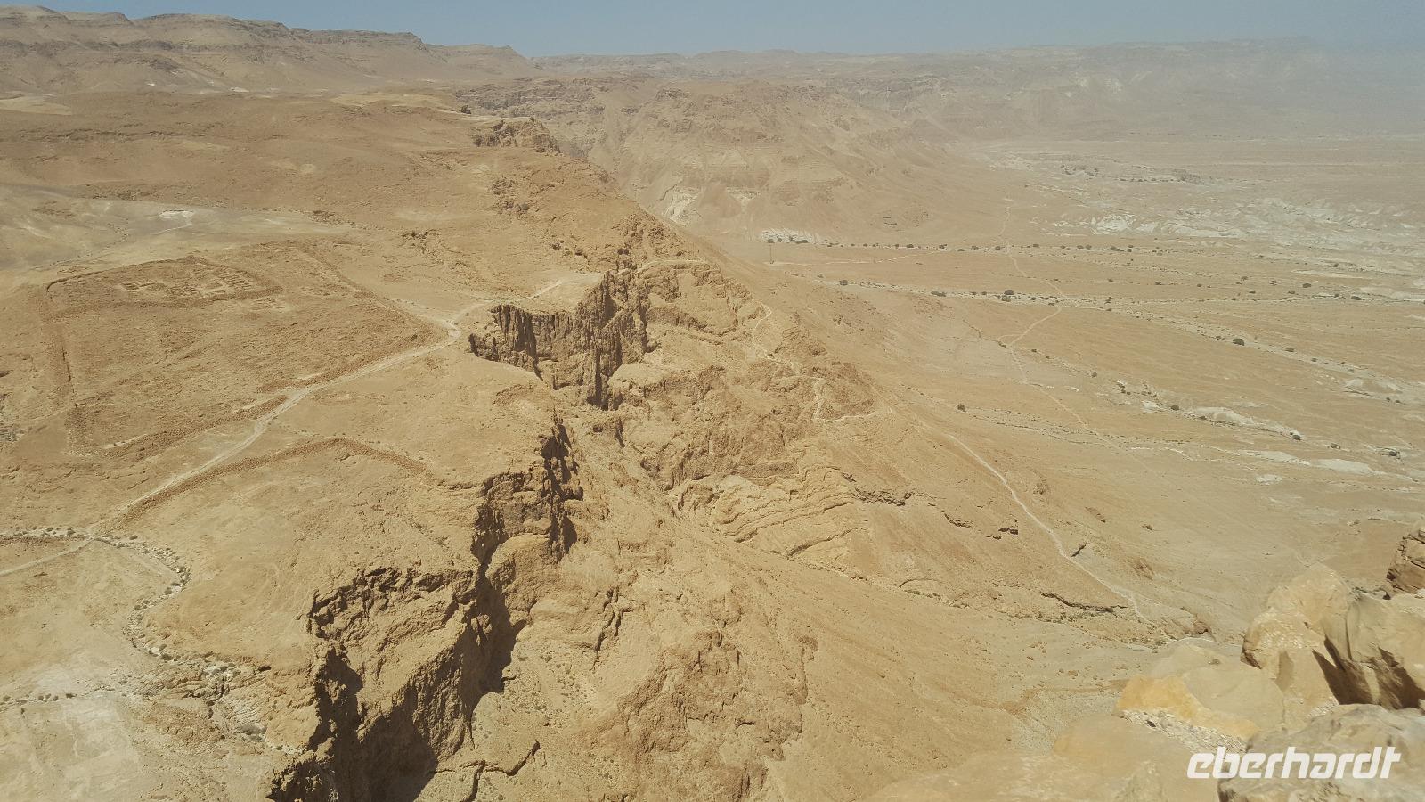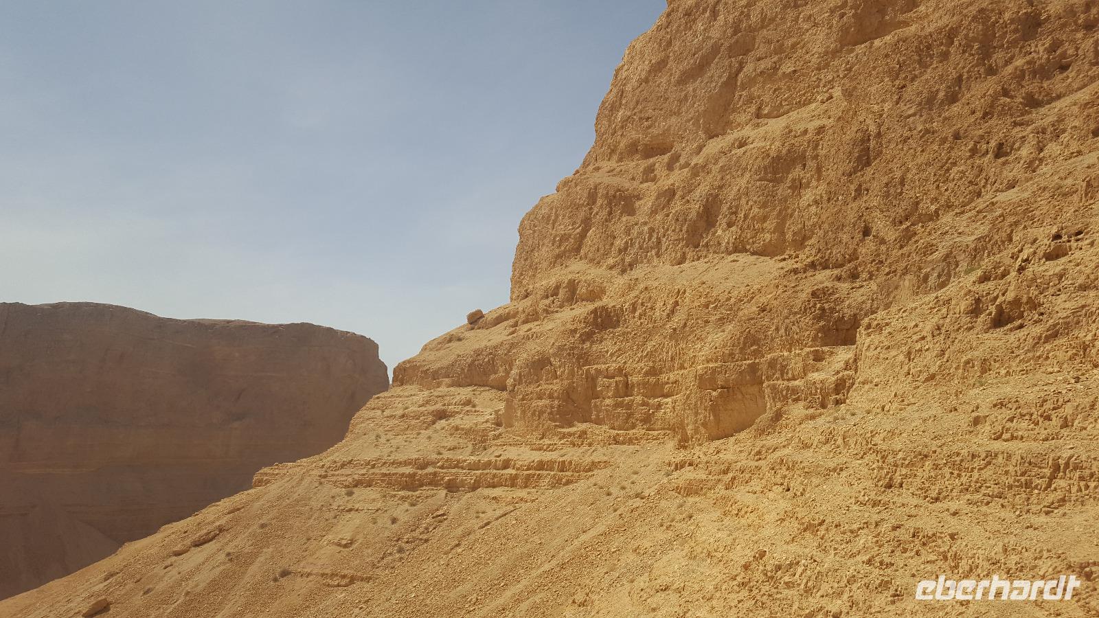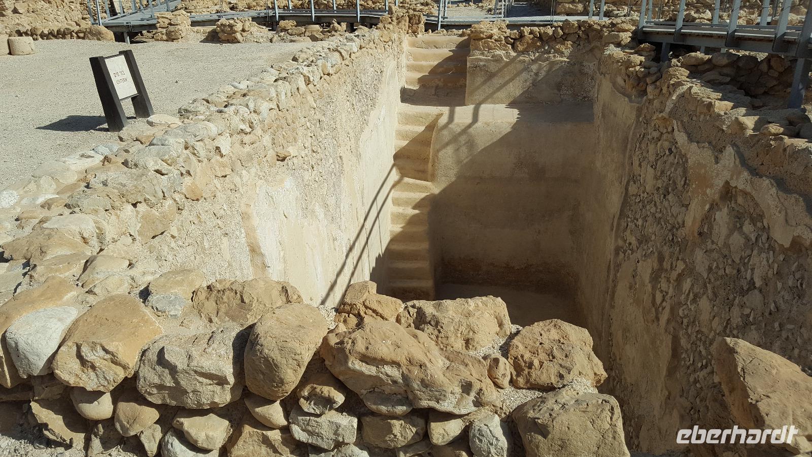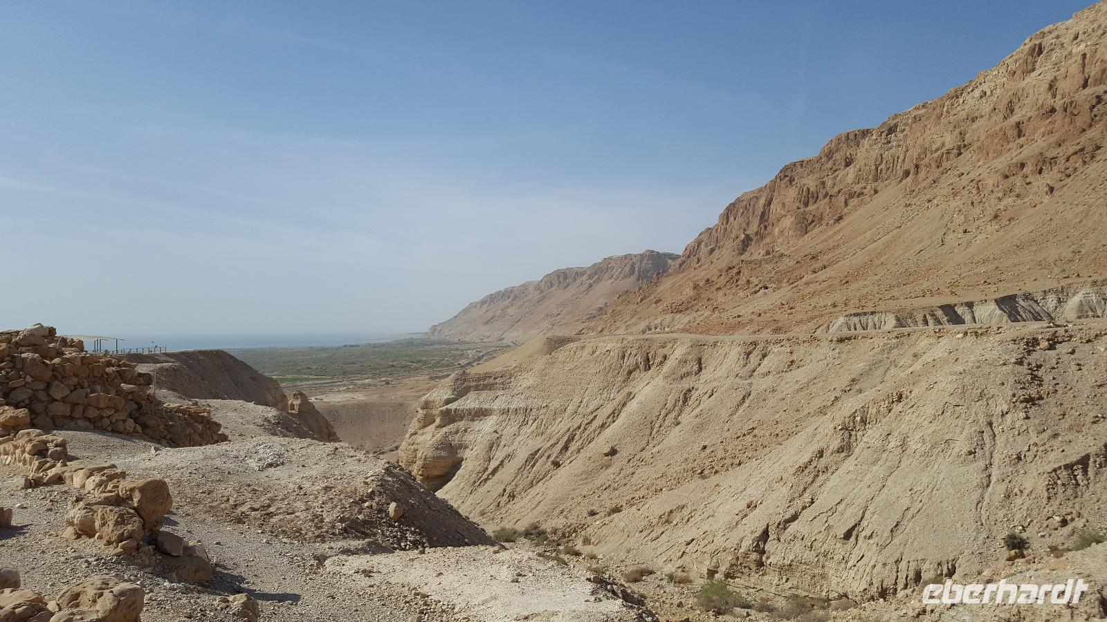 Heute fahren wir gegen 8 Uhr los- doch bereits jetzt zeigt das Thermometer beachtliche 26 ° C. Unser erstes Ziel Qumran liegt nur 10 Minuten entfernt. Im Besucherzentrum erläutert Gabi die Geschichte des Ortes, seiner Siedlung, der Höhlen und die Funde der Schriftrollen im Jahre 1947. Ein Film veranschaulicht das damalige Leben eindrucksvoll. Dann können wir die Ausgrabungen ansehen, die Zisterne, die Bäder- unheimlich wichtig damals für die rituellen Reinigungen, die Gemeinschaftsräume und auch die Bereiche, in denen Gärten bzw. Felder für den Anbau ihrer Lebensmittel vermutet werden. Natürlich können wir auch die Höhlen sehen, sie sind nummeriert und so heißt es heute, dass die Schriftrollen in Höhle Nr. 4 gefunden wurden- von einem Hirtenjungen. Wir freuen uns auf den Schatten unterm Sonnensegel, lauschen Gabis Erläuterungen und genießen den freien Blick über das Meer und die Ebenen. Dann geht unsere Fahrt weiter, immer am toten Meer entlang. Völlig unwirklich tauchen immer wieder grüne Oasen in der unwirtlichen Wüstenlandschaft auf, Gabi erzählt, mit welchem Aufwand es verbunden ist, hier das Salz aus der Erde zu waschen, um es fruchtbar zu machen und die Kulturen zu bewässern. Dann erreichen wir Massada. Hoch über dem Meer thront diese Festung, die seit 2001 auch zum Weltkulturerbe zählt. König Herodes nutzte die exponierte Lage und ließ hier seine Festung und seinen Palast erbauen. Im Besucherzentrum konnten wir einen Blick auf das Modell werfen, bevor wir mit der Seilbahn nach oben fuhren. Man kann auch den sogenannten Schlangenpfad nach oben laufen- aber bei mehr als 35 °C wollte sich dies niemand antun. Die Größe der Festung überraschte, ebenso dass schon die Räume der Kommandanten der Wache mit Fresken geschmückt waren. Wir konnten hinunter auf den Palast sehen, der in 3 Etagen in den Felsen gehauen war und man sah auch die Lager der römischen Belagerer und den Wall, den sie zur Belagerung der Festung ringsherum gebaut hatten. Bäder, Zisternen und Vorratsräume zeugten davon, dass die Menschen hier oben gut versorgt waren und keine Not litten. Sogar ein Schreiber sitzt gegenwärtig in der alten Schreibstube und kopiert Schriften bis ins kleinste Detail originalgetreu. Dann sahen wir sie: die römische Rampe. Die römischen Belagerer hatten eine Rampe den Felsen hinauf gebaut und waren im Begriff, die Mauern der Festung einzureißen. Derart ausweglos entschlossen sich die Juden zum Selbstmord. Am nächsten Tag fanden die Römer nur leblose Körper und verbrannte Vorräte. Ein beeindruckender Besuch! Eigentlich wollten wir die römische Rampe hinablaufen, aber wir entschlossen uns, doch die Seilbahn zu nehmen. Es war unerträglich heiß. Dann geht unsere Fahrt weiter Richtung Arad, immer am toten Meer entlang. Als wir Tamar erreichen sehen wir die ersten Beduinen mit ihren Herden. In einem Beduinendorf