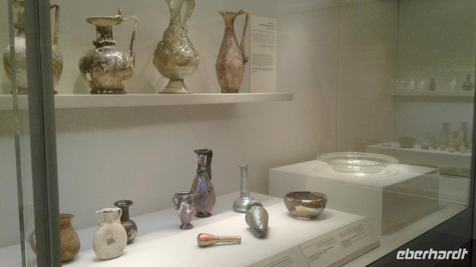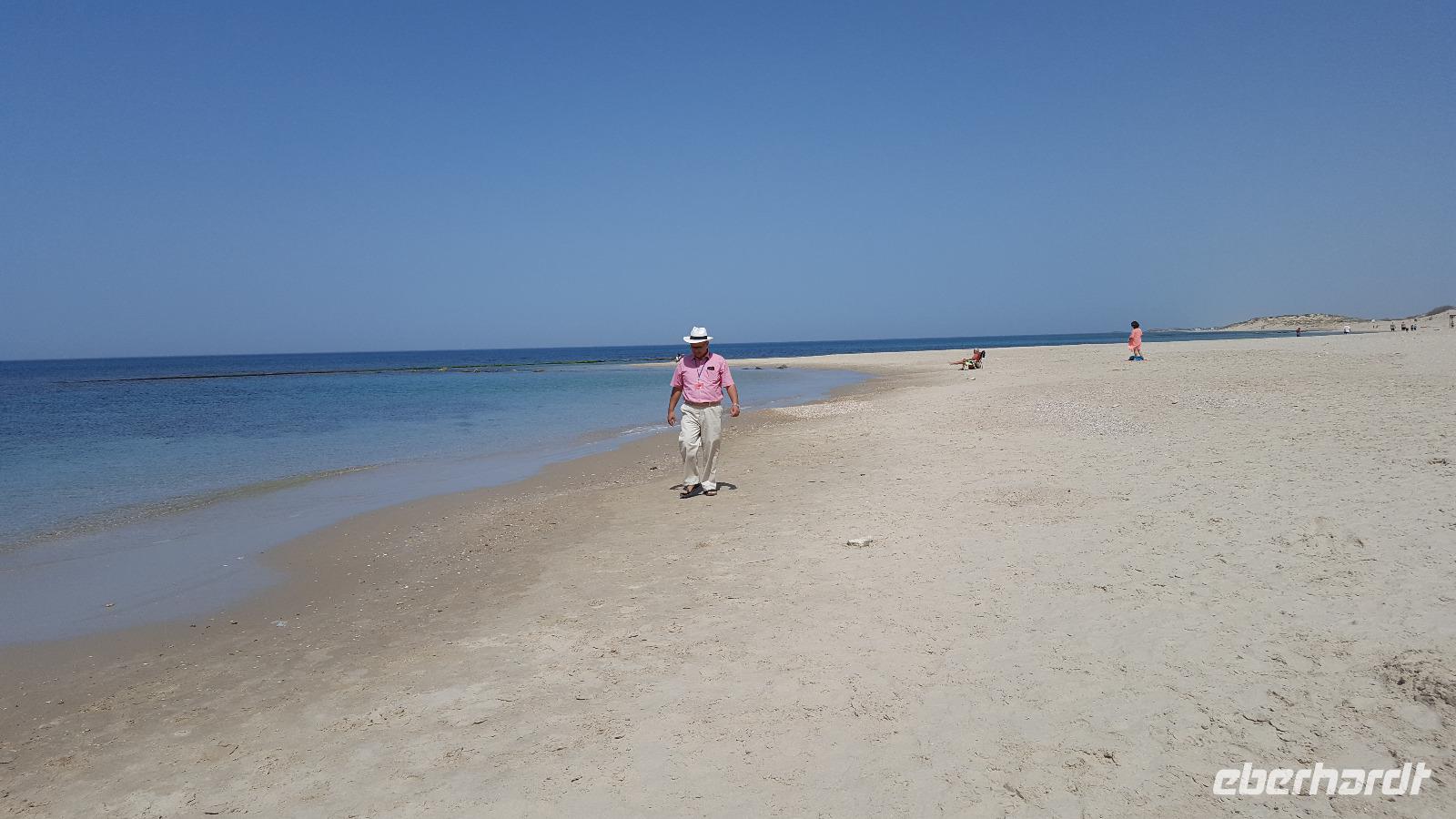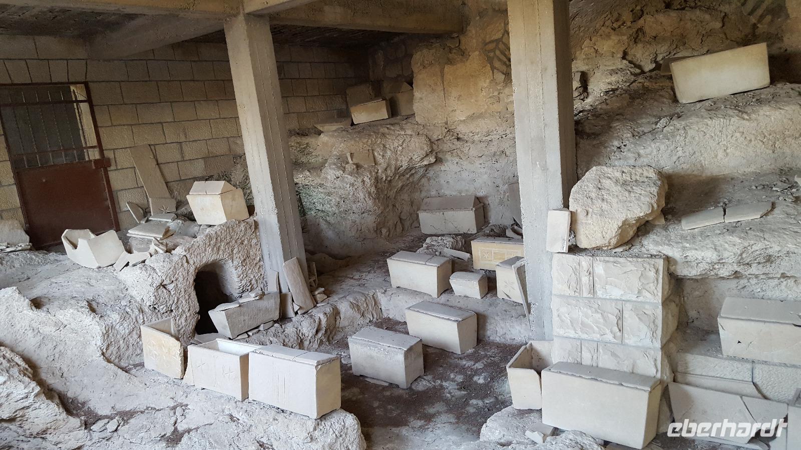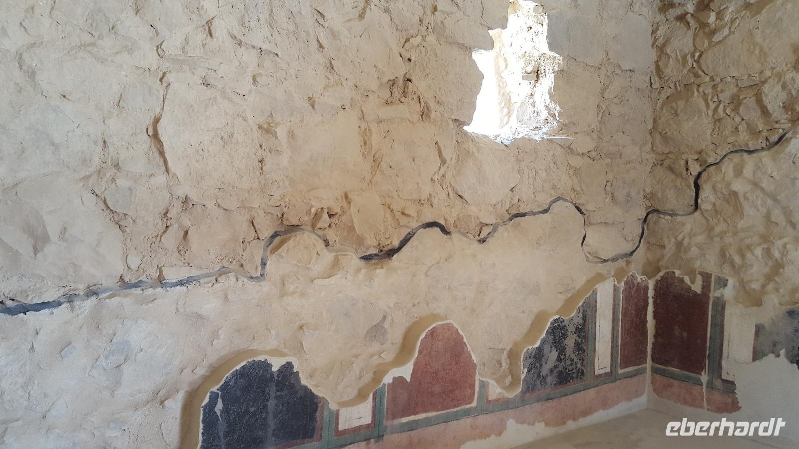 Heute fahren wir gegen 8 Uhr los- doch bereits jetzt zeigt das Thermometer beachtliche 26 ° C. Unser erstes Ziel Qumran liegt nur 10 Minuten entfernt. Im Besucherzentrum erläutert Gabi die Geschichte des Ortes, seiner Siedlung, der Höhlen und die Funde der Schriftrollen im Jahre 1947. Ein Film veranschaulicht das damalige Leben eindrucksvoll. Dann können wir die Ausgrabungen ansehen, die Zisterne, die Bäder- unheimlich wichtig damals für die rituellen Reinigungen, die Gemeinschaftsräume und auch die Bereiche, in denen Gärten bzw. Felder für den Anbau ihrer Lebensmittel vermutet werden. Natürlich können wir auch die Höhlen sehen, sie sind nummeriert und so heißt es heute, dass die Schriftrollen in Höhle Nr. 4 gefunden wurden- von einem Hirtenjungen. Wir freuen uns auf den Schatten unterm Sonnensegel, lauschen Gabis Erläuterungen und genießen den freien Blick über das Meer und die Ebenen. Dann geht unsere Fahrt weiter, immer am toten Meer entlang. Völlig unwirklich tauchen immer wieder grüne Oasen in der unwirtlichen Wüstenlandschaft auf, Gabi erzählt, mit welchem Aufwand es verbunden ist, hier das Salz aus der Erde zu waschen, um es fruchtbar zu machen und die Kulturen zu bewässern. Dann erreichen wir Massada. Hoch über dem Meer thront diese Festung, die seit 2001 auch zum Weltkulturerbe zählt. König Herodes nutzte die exponierte Lage und ließ hier seine Festung und seinen Palast erbauen. Im Besucherzentrum konnten wir einen Blick auf das Modell werfen, bevor wir mit der Seilbahn nach oben fuhren. Man kann auch den sogenannten Schlangenpfad nach oben laufen- aber bei mehr als 35 °C wollte sich dies niemand antun. Die Größe der Festung überraschte, ebenso dass schon die Räume der Kommandanten der Wache mit Fresken geschmückt waren. Wir konnten hinunter auf den Palast sehen, der in 3 Etagen in den Felsen gehauen war und man sah auch die Lager der römischen Belagerer und den Wall, den sie zur Belagerung der Festung ringsherum gebaut hatten. Bäder, Zisternen und Vorratsräume zeugten davon, dass die Menschen hier oben gut versorgt waren und keine Not litten. Sogar ein Schreiber sitzt gegenwärtig in der alten Schreibstube und kopiert Schriften bis ins kleinste Detail originalgetreu. Dann sahen wir sie: die römische Rampe. Die römischen Belagerer hatten eine Rampe den Felsen hinauf gebaut und waren im Begriff, die Mauern der Festung einzureißen. Derart ausweglos entschlossen sich die Juden zum Selbstmord. Am nächsten Tag fanden die Römer nur leblose Körper und verbrannte Vorräte. Ein beeindruckender Besuch! Eigentlich wollten wir die römische Rampe hinablaufen, aber wir entschlossen uns, doch die Seilbahn zu nehmen. Es war unerträglich heiß. Dann geht unsere Fahrt weiter Richtung Arad, immer am toten Meer entlang. Als wir Tamar erreichen sehen wir die ersten Beduinen mit ihren Herden. In einem Beduinendorf