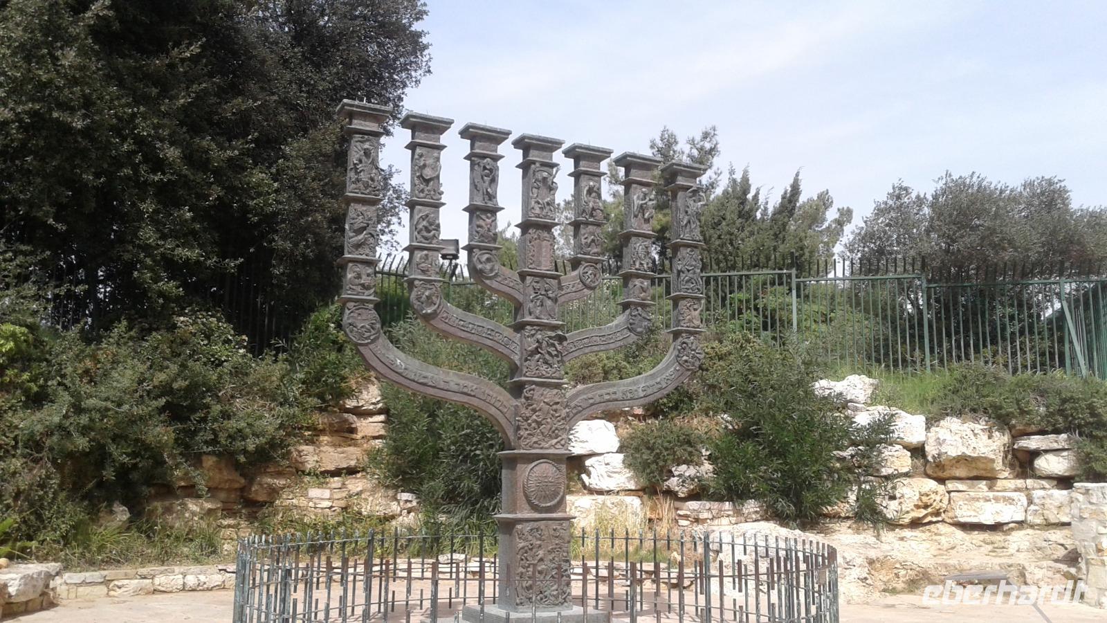 Heute geht es kurz vor 9 Uhr los, unser erstes Ziel ist der Herzl Berg. Eigentlich wollten wir das Grab Theodor Herzls besuchen, aber es werden gerade hier riesige Tribünen aufgebaut für die 70-Jahr Feier Israels im Mai. Theodor Herzl gehörte zu den Vätern des Zionismus- allerdings wäre er heute nicht besonders erfreut, seine Vision war die von einem friedlichen Zusammenleben von Juden und Palästinensern. Nach einem kleinen Rundgang durch den Park mit den anderen Gräbern mehr oder weniger großer Staatsmänner brechen wir auf nach Bethlehem. Grenzzäune und der Check Point erinnern an die aktuelle Lage, dann sind wir wieder in Palästina und werden von Mohaned herzlich begrüßt. Er ist in Deutschland geboren und aufgewachsen, nun hier. Er wird uns die Geburtskirche zeigen. Wir steigen also in einen kleineren Bus um und Mohaned schafft es, dass wir vor dem Gottesdienst eintreten können, sonst hätten wir mehr als 2 Stunden warten müssen. Ehrfürchtig betrachten wir im Untergeschoss die Geburtsgrotte mit dem 14-zackigen Stern, der die Stelle der Geburt kennzeichnen soll, darüber hängen 15 verschiedene Lampen, Je eine für die jeweiligen christlichen Religionsgemeinschaften. In der Kirche selbst sind drei davon vertreten. Diese haben sich nach langem Streit über die Restaurierung geeinigt und Mohaned zeigt uns die jetzt wieder sichtbaren Malereien an den Säulen. Vorher waren diese durch den Ruß der Lampen unter einer dicken schwarzen Schicht verborgen. Auch die Fresken wurden teilweise wieder restauriert, wir sind überwältigt. Dann verabschieden wir uns von Mohaned und fahren zurück zu unserem großen Bus am New Bethlehem Store. Hier nutzt der eine und andere die Möglichkeit, sich ein Souvenir aus Olivenbaumholz mitzunehmen. Unsere nächste Station heißt „Shepherds Field", das Feld der Schäfer. Hier sollen die Hirten von den Engeln die frohe Kunde von der Geburt Jesu erhalten haben. Über der Höhle steht heute eine kleine Kirche. Nach einer guten Stärkung geht es zurück nach Jerusalem. Wieder Check Point und Grenzanlagen... In Jerusalem angekommen machen wir eine kleine Stadtrundfahrt. Vorbei am Theater bis zur Knesset, dem Parlamentsgebäude. Hier stoppen wir. Gegenüber steht die Menora, eines der wichtigsten Symbole der Juden. Gabi erzählt uns zu den Hintergründen und dass diese Menora gestiftet wurde und der Künstler wichtige Bibelstellen darstellt, z.B. den Sieg Davids über Goliath und viele andere. Mudi fährt uns weiter sicher durch Jerusalem, wir sehen das orthodoxe Viertel und hören über die Lebensgewohnheiten hier. Dann erreichen wir das Israel- Museum. Es ist noch Zeit, bis es öffnet daher erläutert uns Gabi zuerst das Modell Jerusalems mit der Nachbildung des Tempels des Herodes im Außengelände. Dann können wir eintreten und werden in die Geschichte des Landes entführt, Kanaaiten, Perser, Kreuzfahrer, Araber... alle hinterließen ihre Spuren, die z.T. hier ausgestellt sind, natürlich auch die Spuren des Herodes. Beeindruckend der Schrein des Buches mit einigen Schriftrollen vom Toten Meer, auch Synagogen aus aller Welt wurden hier wiederaufgebaut, eine davon stammt ursprünglich aus dem bayrischen Horb. Unser letzter gemeinsamer Tag geht zu Ende. Morgen fliegen wir zurück und werden zu unterschiedlichen Zeiten zu unseren Abflügen gebracht. Daher verabschieden wir uns heute von Gabi und Mudi mit einem Ständchen im Bus. Dann geht es zurück zum Hotel zum Abendessen. Im Zuge der Pessachfest- Vorbereitungen (gründliche Reinigung aller Räume und des Inventars) mussten wir gestern aus dem Speisesaal in den Bankettsaal umziehen und bekamen Einweg-Geschirr und -Besteck. Wir sind gespannt wie und wo wir heute essen...