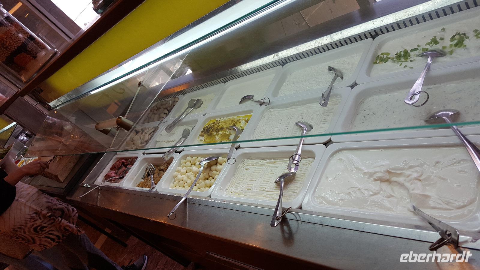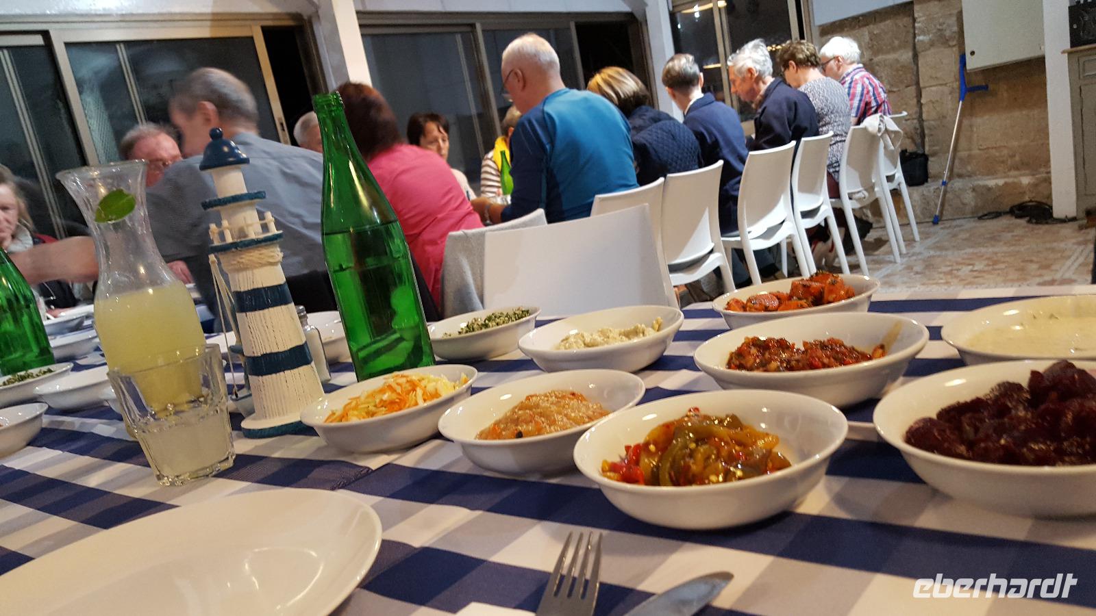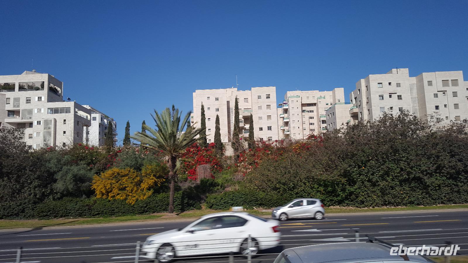 Aus Hamburg, Berlin, München und Dresden starteten wir, voller Neugier und Vorfreude auf Israel. In München dann wurde unsere Geduld auf die Probe gestellt, unsere Maschine mußte enteist werden und wir mußten auf einen Anschlussflug aus Bremen warten - hatten dadurch satte 2,5 Stunden Verspätung. So landeten wir erst gegen 18:30 auf dem Ben Gurion-Flughafen in Tel Aviv, hier trafen wir unsere Berliner Gäste und auch unseren örtlichen Reiseleiter Gavriel Barkai, kurz Gabi genannt. Es war schon spät und daher fuhren wir gleich nach Jaffa ins Restaurant "Babai". Die pechschwarze Nacht verhinderte einen Blick aufs Meer- obwohl es gleich nebenan war- aber das Essen entschädigte für alles, erst die erfrischende Minz- Limonade oder Wasser und dann die vielen unterschiedlichen Vorspeisen. Und so probierten wir uns durch Hummus (pürrierte Kichererbsen), Baba Ghanousch (Auberginen-Dip), allerlei Salate und Gemüse bis zur scharfen Pepperoni. Lecker auch die Hauptgerichte und am leckersten die kleinen Desserts, dazu Kaffee mit Kardamom oder Tee aus frischer Minze. Was für ein furioser Start, um dieses Land kennenzulernen. Dann ging es zu unserem Hotel, dem Grand Beach Hotel in Tel Aviv und ein langer Tag klang leise aus.