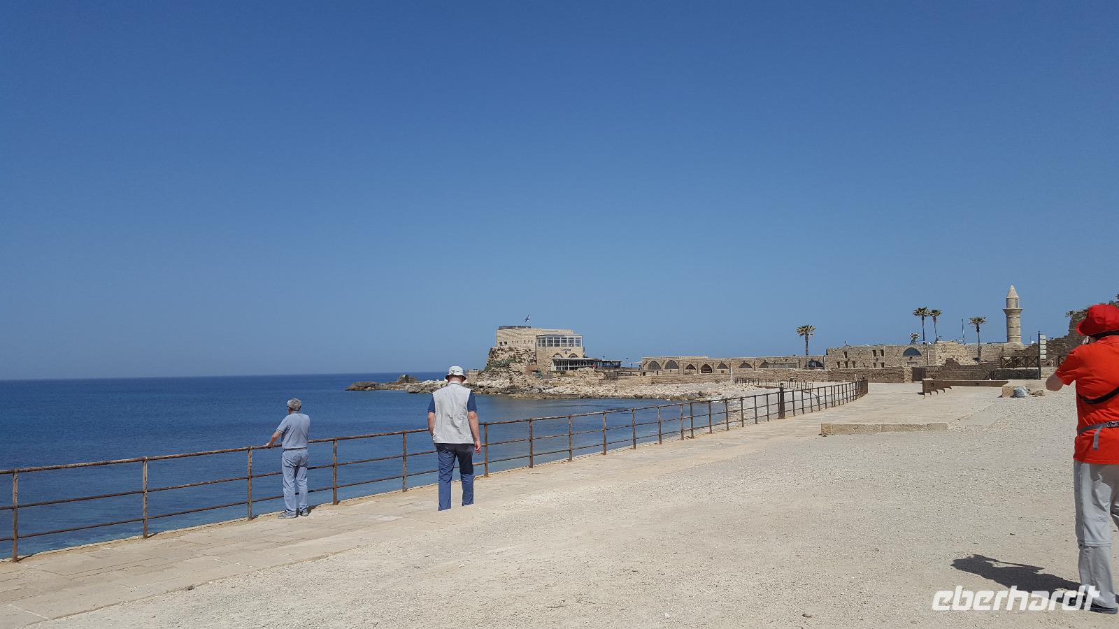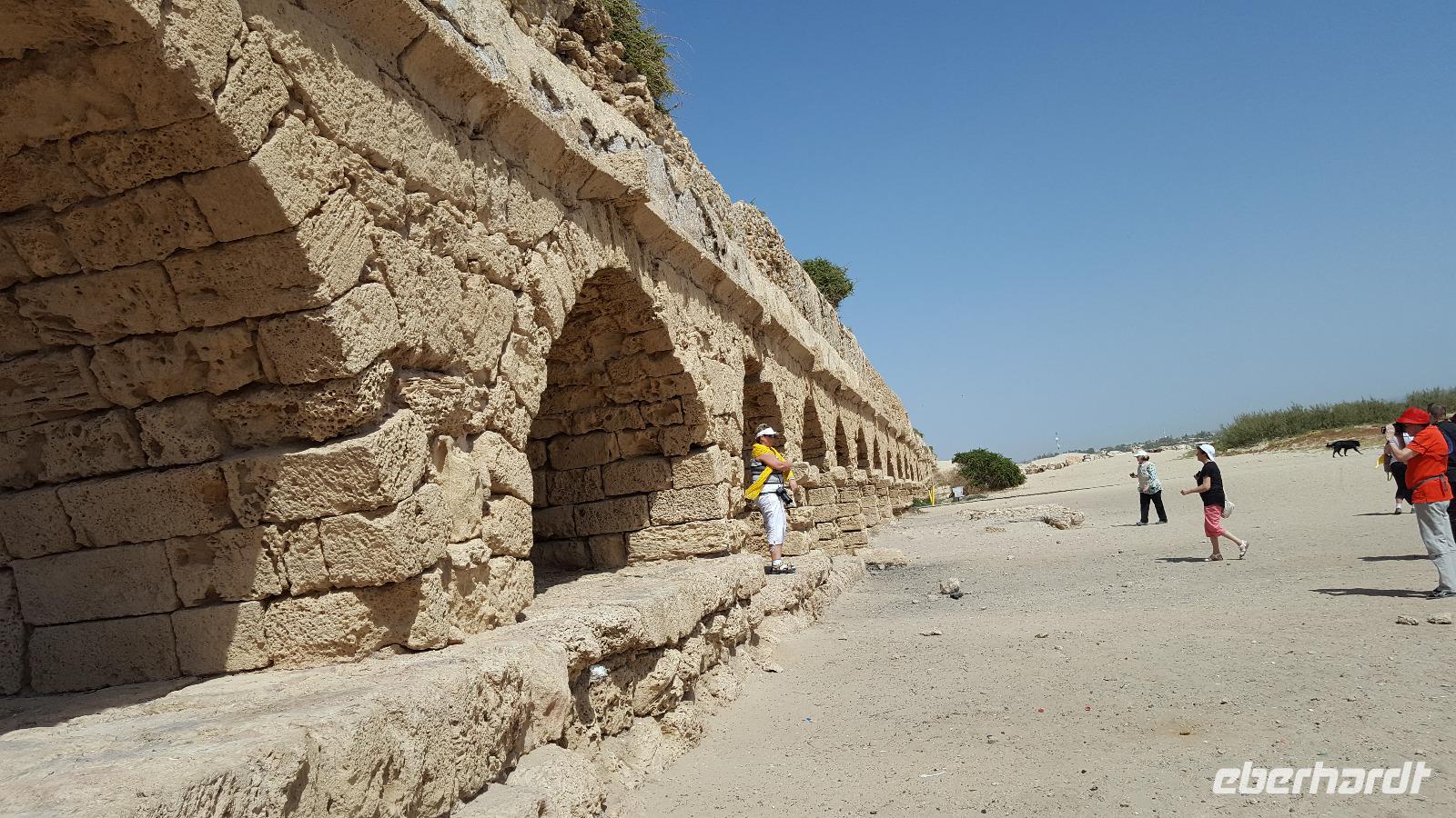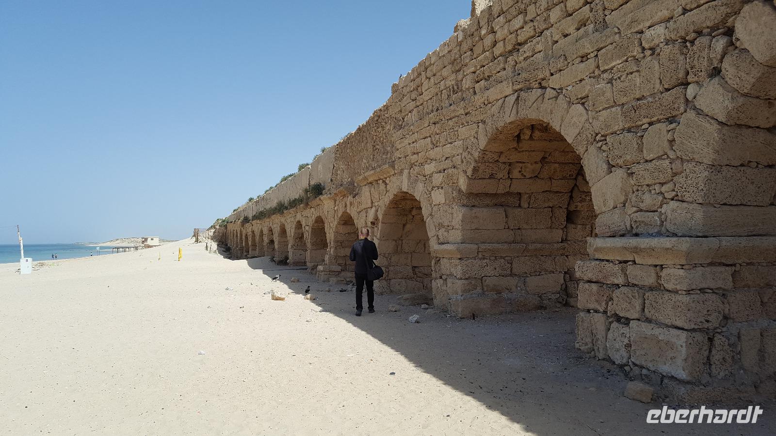 Ein langer Tag liegt vor uns und so heißt es bereits 6 Uhr aufstehen und 6:30 Uhr Frühstück. Das Buffett war mehr als reichlich und einige trauten sich auch an Schakschuka, pochierten Eiern auf einer Zwiebel-Tomaten-Soße. Um 7:45 Uhr hieß es dann Koffer einladen und Abfahrt. Wir verabschieden uns von Tel Aviv, mit seinen fast 600.000 Einwohnern die zweitgrößte Stadt Israels, mit einer kleinen Stadtrundfahrt, sehen die sogenannte weiße Stadt, die an den Bauhausstil erinnert und heute Weltkulturerbe ist. Den Rothschild Boulevard entlang und am Ytzak Rabin Platz vorbei brechen wir auf Richtung Cäsarea. Diese Stadt wurde bereits zu römischen Zeiten gegründet und erhielt ihren Namen zu Ehren der römischen Könige. Sie geht auf Herodes zurück, der hier ein prächtiges Theater, ein Hippodrom, große Bäderanlagen, Geschäfte und auch einen künstlichen Hafen anlegen ließ. Letzterer war mit seinen zwei Wellenbrechern einer der bedeutendsten Hafenanlagen seiner Zeit. Großartige Ausgrabungsarbeiten ließen die Zeit von damals lebendig werden. Gabi überraschte uns immer wieder mit facettenreichen Details, etwa dem Süßwasser-Schwimmbecken im Meer im Palast des Herodes. Interessant auch der Besuch der kleinen Kapelle am Ausgang, Kapitelle und Spitzbögen erinnern an den gotischen Baustil, aber lange vor seiner Ausführung in Europa. Vermutlich haben Kreuzfahrer hier diesen Baustil gelernt und mitgebracht. Unsere Fahrt geht weiter Richtung Haifa, doch bei Chadera halten wir an dem riesigen Äquadukt. Die Römer verstanden es, Wasser in ihre Städte zu bringen. Direkt am Meer gelegen nutzen wir die Zeit für einen kleinen Strandspaziergang und jede Menge toller Fotos. Gegen Mittag kommen wir in Haifa an und erleben staunend die hängenden Gärten der Bahai. Gabi erzählt uns von den Bahai und ihrer Verfolgung, nichts desto trotz gibt es auch heute noch Hunderte Freiwillige, die diese Gärten selbstlos pflegen. Was für eine Oase der Ruhe und Schönheit! Nach den Fotos von den oberen Terrassen fahren wir durch die Stadt, sehen die Gärten und den Schrein nochmals von unten und erleben Haifa: die Gärten, die Prachtstraßen, das Templerviertel...Aber unsere Erkundungsfahrt ist noch nicht zu Ende, Akko wartet auf uns. Auch Akkos Altstadt ist Weltkulturerbe und dazu gehört die sogenannte Kreuzfahrerstadt. Diese unterirdische Stadt kann man heute besichtigen, mächtige Säulen halten die Gewölbe und Licht und Filmeinspielungen lassen das damalige Leben lebendig werden. Natürlich gehört auch ein Spaziergang durch die Altstadt mit ihren Befestigungsanlagen, den Festungsbauten und dem Hafen zu unserem Programm. Wir passieren die Al-Seituna-Moschee, den berühmten Glockenturm und natürlich ehemalige Karawansereien. Sagenhaft, was Gabi alles dazu erzählen kann. Dann geht unsere Fahrt weiter zu unserem Kibbutz in Degania Bet. Unterwegs müssen wir noch einmal anhalten. Bei Kinneret haben wir ein phantastisches Panorama der Landschaft unter uns, die Abendsonne taucht alles in goldenes Licht und wir genießen (und fotografieren). Dann empfängt uns unser Kibbutz, wir treffen uns zum Abendessen und mit einem Gläschen Wein stoßen wir auf die nächsten Tage an.