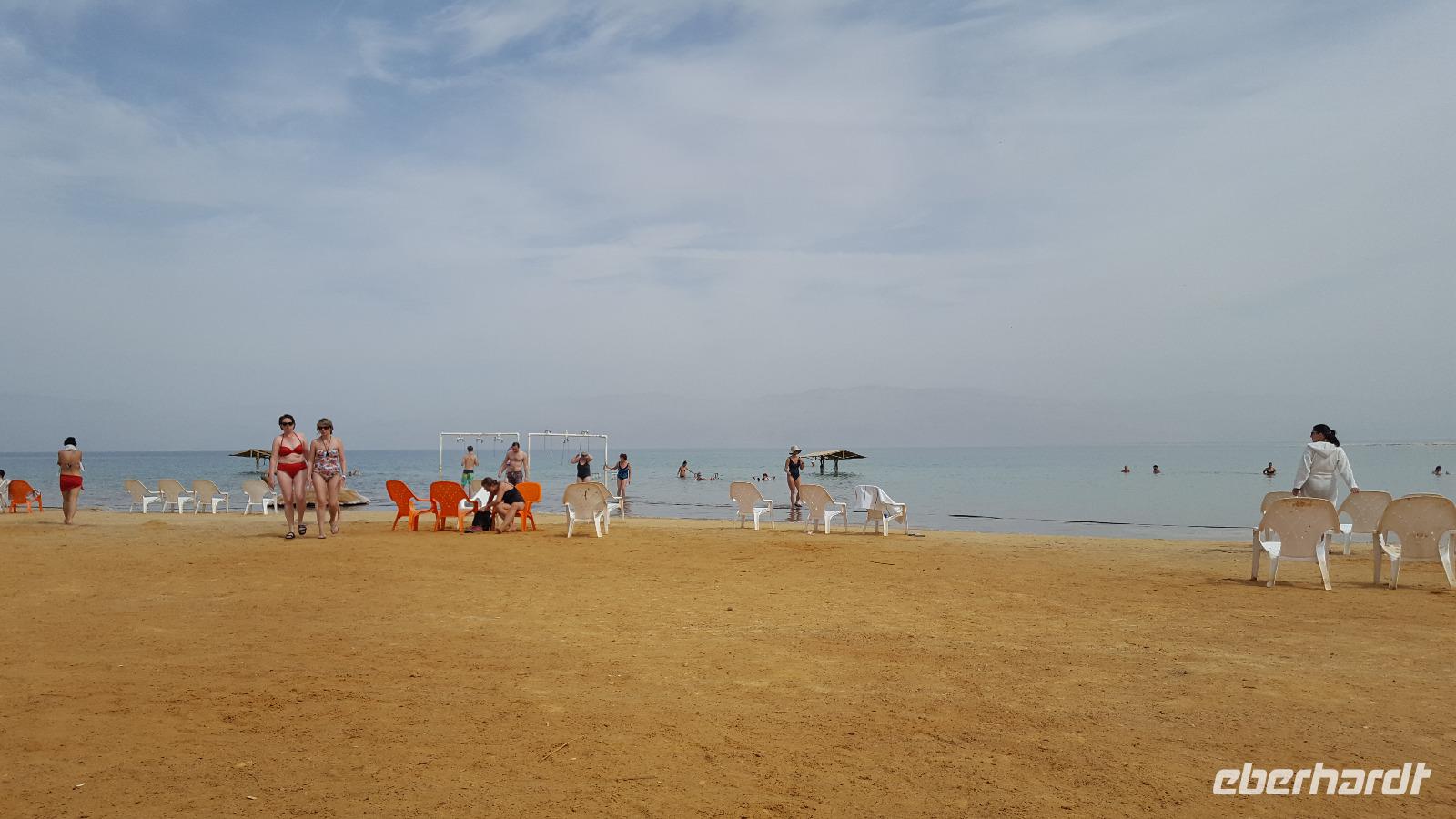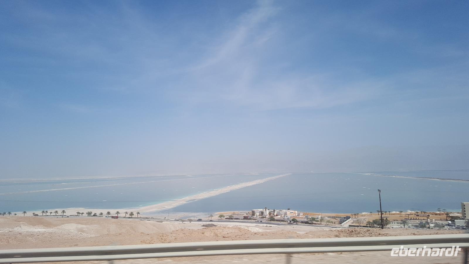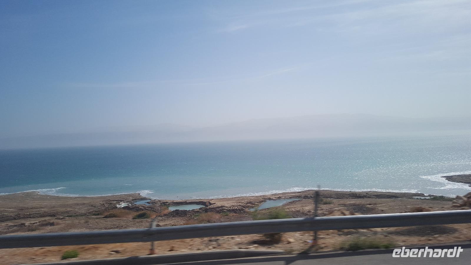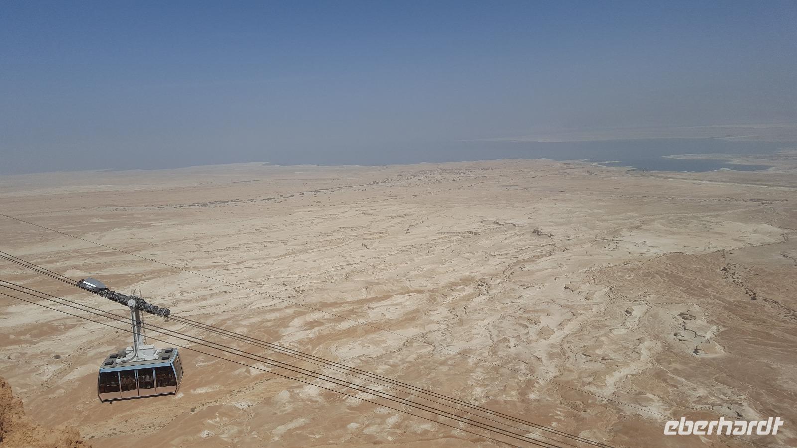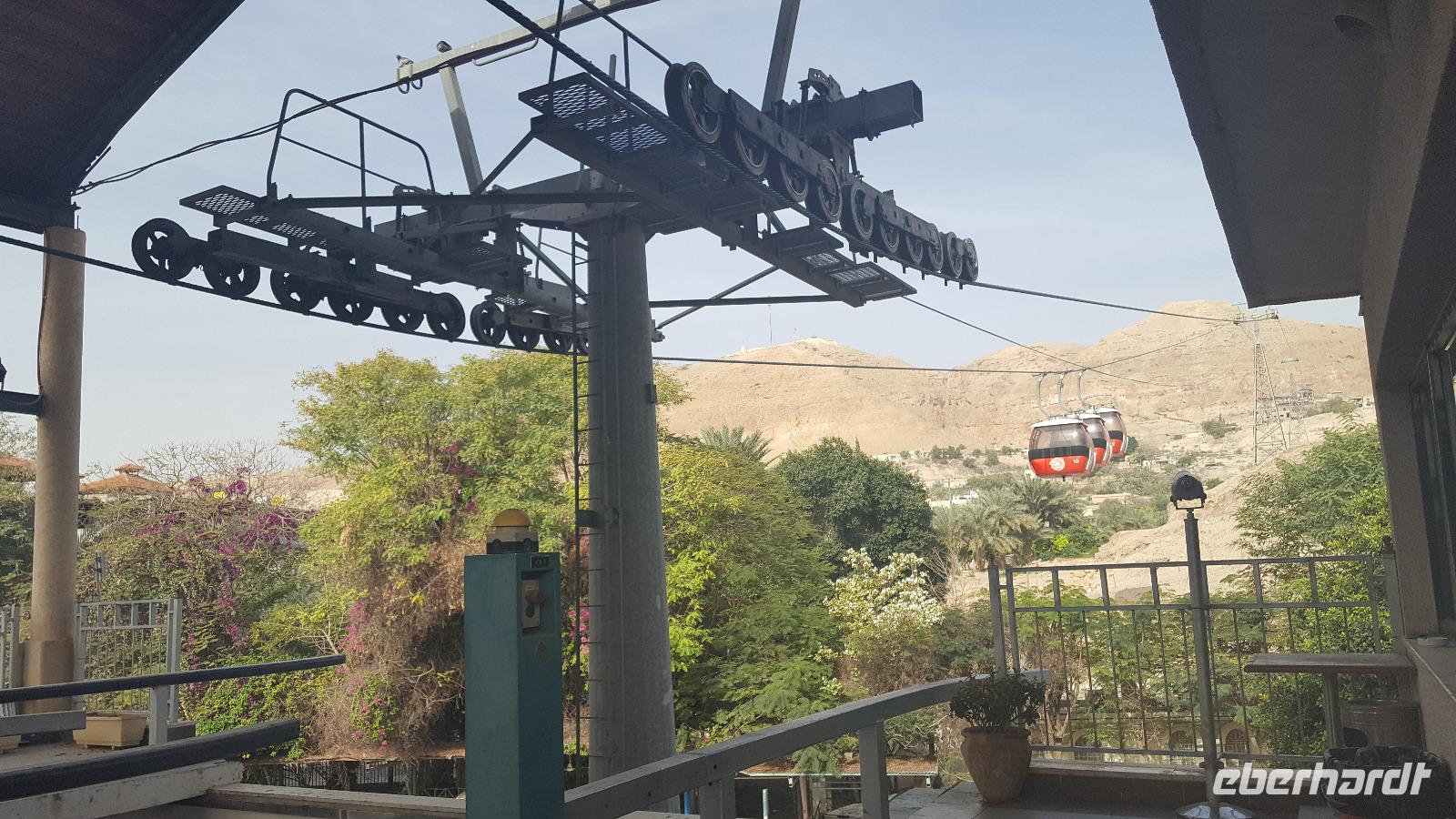 Auch heute Morgen sind 8 Uhr bereits die Koffer wieder im Bus und wir fahren los. Unser erstes Ziel ist Jericho, die älteste Stadt der Welt, aber da hat Gabi noch eine Überraschung für uns: Wir halten am Jordan, der berühmten Taufstelle Jesu. Etwas unwirklich überqueren wir die Grenzeinrichtungen und erreichen Kasser Al-Yahud oder Quasr el Yahud. So früh am Morgen erleben wir erste rituelle Waschungen Gläubiger, und haben selber Gelegenheit, den Jordan zu berühren. Auf der anderen Seite ist schon Jordanien. Einige Gäste hatten diese Seite schon besucht und waren nun tief beeindruckt. Aber nicht nur sie. Wir genossen die ruhige Morgenstunde hier und fuhren dann nach Palästina- wieder Uhren zurück, denn hier ist noch keine Sommerzeit. An einem Maulbeerfeigenbaum im Garten einer ehemaligen Botschaft halten wir, Gabi erzählt uns zur Geschichte dieses Gebietes in der Stadt Jericho und dann fahren wir zur Seilbahnstation. Mit 223 Metern unter dem Meeresspiegel die tiefstgelegene Seilbahn der Welt. Wir haben bei der Fahrt einen tollen Blick über die Stadt und auf die Ausgrabungen unter uns. Oben angekommen suchen wir Schatten und lauschen einem Text der Bibel zu Jericho. Leider konnten wir das Kloster nicht besuchen, offiziell waren Gruppen in der Osterzeit nicht willkommen. Doch wir bleiben noch ein wenig und genießen die Aussicht bevor wir mit der Seilbahn wieder hinunterfahren und zum nächsten Ziel aufbrechen: dem botanischen Garten im Kibbutz Ein Gedi. Ein kurzer Abstecher zum Ein Gedi Nationalpark und Gabis Wunsch erfüllt sich: wir sehen einen kleinen Steinbock. Im Kibbutz erwartet uns Elli, unser Guide hier. Er erzählt zum Kibbutz und zu den Lebensumständen hier, zur Geschichte und zum wunderbaren Garten. Mehr als 900 Pflanzenarten aus aller Welt wurden hier im Laufe der Jahre gepflanzt und die Kakteensammlung umfasst mehr als 1000 Arten. Was für eine Oase inmitten der Wüste. Am frühen Nachmittag fahren wir dann zum Spa Ein Gedi. Alle bekommen einen Schlüssel für ihr Schließfach und ein Handtuch und dann kann es losgehen: das Abenteuer „Schwimmen im Toten Meer". Viele genießen den Schwebezustand oder nutzen den mineralreichen Schlamm für eine Kurpackung. Eine wohltuende Auszeit. Am späten Nachmittag dann fahren wir nach Arad zu unserem Inbar Hotel. Hier werden wir 1 Nacht bleiben und morgen nach Jerusalem aufbrechen.