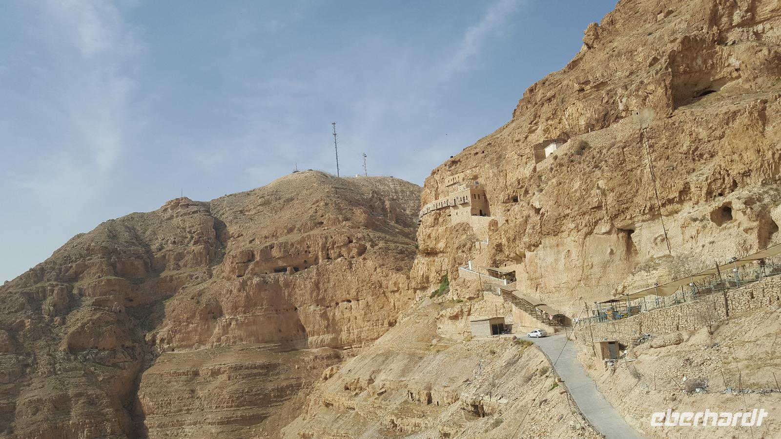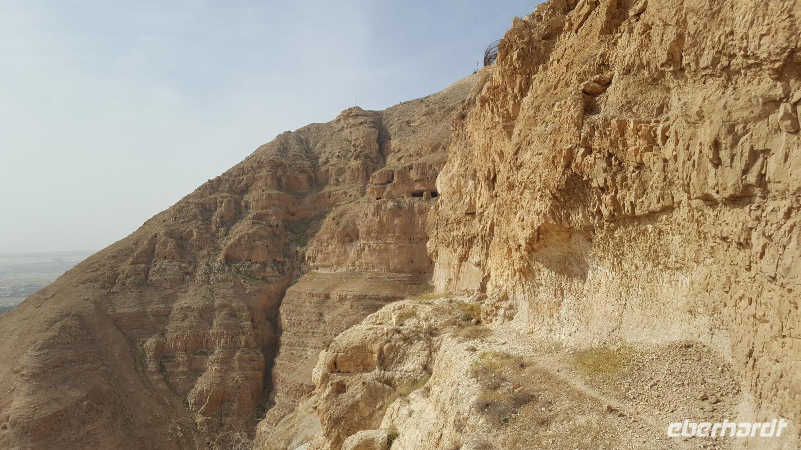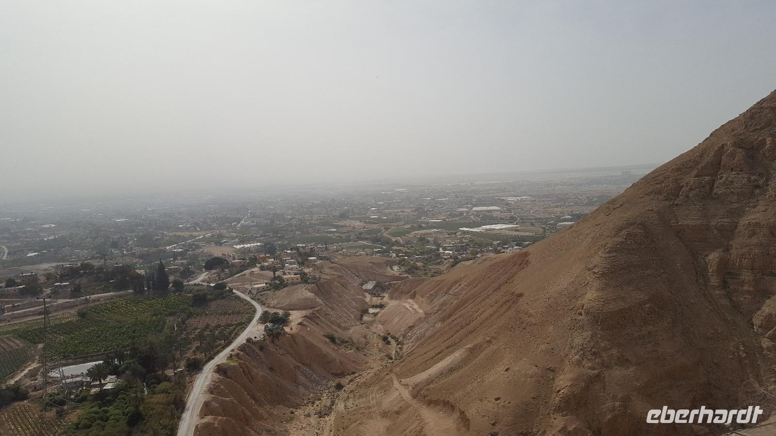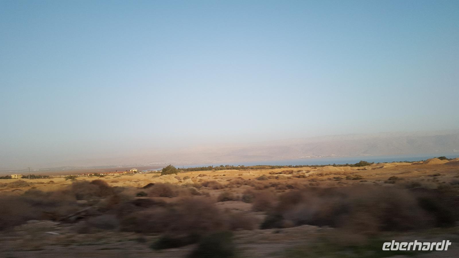 Auch heute Morgen sind 8 Uhr bereits die Koffer wieder im Bus und wir fahren los. Unser erstes Ziel ist Jericho, die älteste Stadt der Welt, aber da hat Gabi noch eine Überraschung für uns: Wir halten am Jordan, der berühmten Taufstelle Jesu. Etwas unwirklich überqueren wir die Grenzeinrichtungen und erreichen Kasser Al-Yahud oder Quasr el Yahud. So früh am Morgen erleben wir erste rituelle Waschungen Gläubiger, und haben selber Gelegenheit, den Jordan zu berühren. Auf der anderen Seite ist schon Jordanien. Einige Gäste hatten diese Seite schon besucht und waren nun tief beeindruckt. Aber nicht nur sie. Wir genossen die ruhige Morgenstunde hier und fuhren dann nach Palästina- wieder Uhren zurück, denn hier ist noch keine Sommerzeit. An einem Maulbeerfeigenbaum im Garten einer ehemaligen Botschaft halten wir, Gabi erzählt uns zur Geschichte dieses Gebietes in der Stadt Jericho und dann fahren wir zur Seilbahnstation. Mit 223 Metern unter dem Meeresspiegel die tiefstgelegene Seilbahn der Welt. Wir haben bei der Fahrt einen tollen Blick über die Stadt und auf die Ausgrabungen unter uns. Oben angekommen suchen wir Schatten und lauschen einem Text der Bibel zu Jericho. Leider konnten wir das Kloster nicht besuchen, offiziell waren Gruppen in der Osterzeit nicht willkommen. Doch wir bleiben noch ein wenig und genießen die Aussicht bevor wir mit der Seilbahn wieder hinunterfahren und zum nächsten Ziel aufbrechen: dem botanischen Garten im Kibbutz Ein Gedi. Ein kurzer Abstecher zum Ein Gedi Nationalpark und Gabis Wunsch erfüllt sich: wir sehen einen kleinen Steinbock. Im Kibbutz erwartet uns Elli, unser Guide hier. Er erzählt zum Kibbutz und zu den Lebensumständen hier, zur Geschichte und zum wunderbaren Garten. Mehr als 900 Pflanzenarten aus aller Welt wurden hier im Laufe der Jahre gepflanzt und die Kakteensammlung umfasst mehr als 1000 Arten. Was für eine Oase inmitten der Wüste. Am frühen Nachmittag fahren wir dann zum Spa Ein Gedi. Alle bekommen einen Schlüssel für ihr Schließfach und ein Handtuch und dann kann es losgehen: das Abenteuer „Schwimmen im Toten Meer". Viele genießen den Schwebezustand oder nutzen den mineralreichen Schlamm für eine Kurpackung. Eine wohltuende Auszeit. Am späten Nachmittag dann fahren wir nach Arad zu unserem Inbar Hotel. Hier werden wir 1 Nacht bleiben und morgen nach Jerusalem aufbrechen.