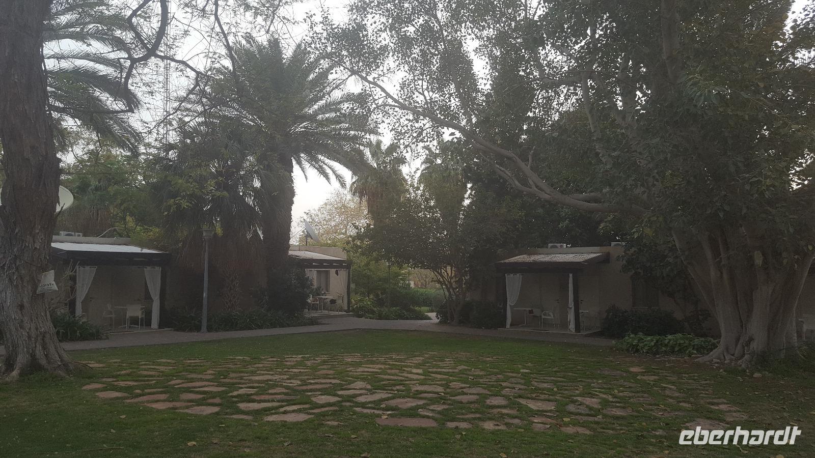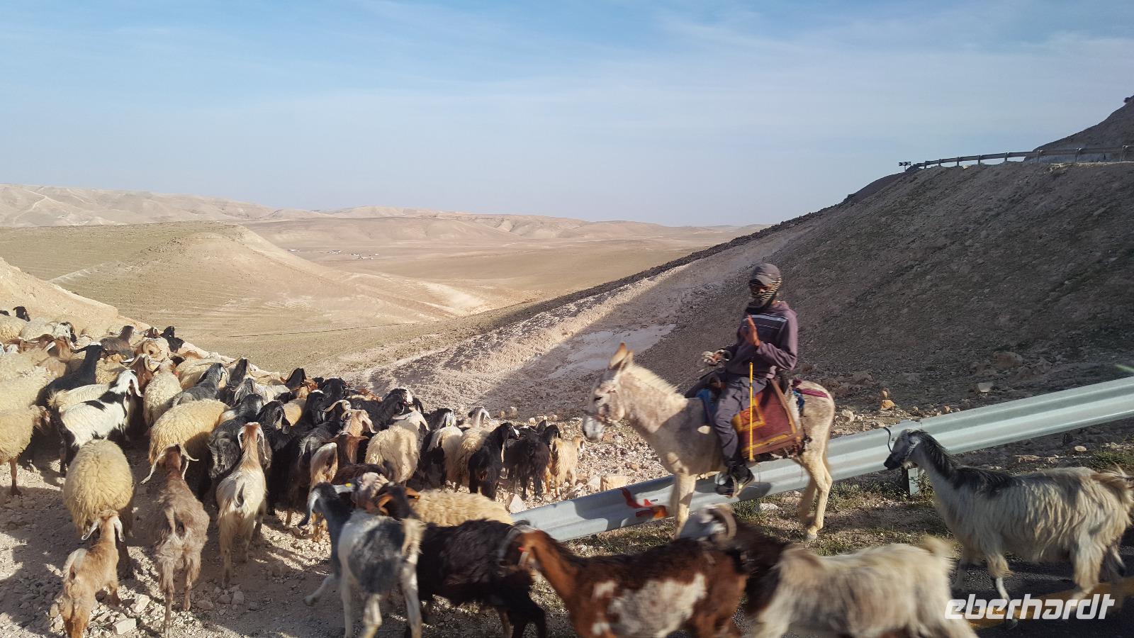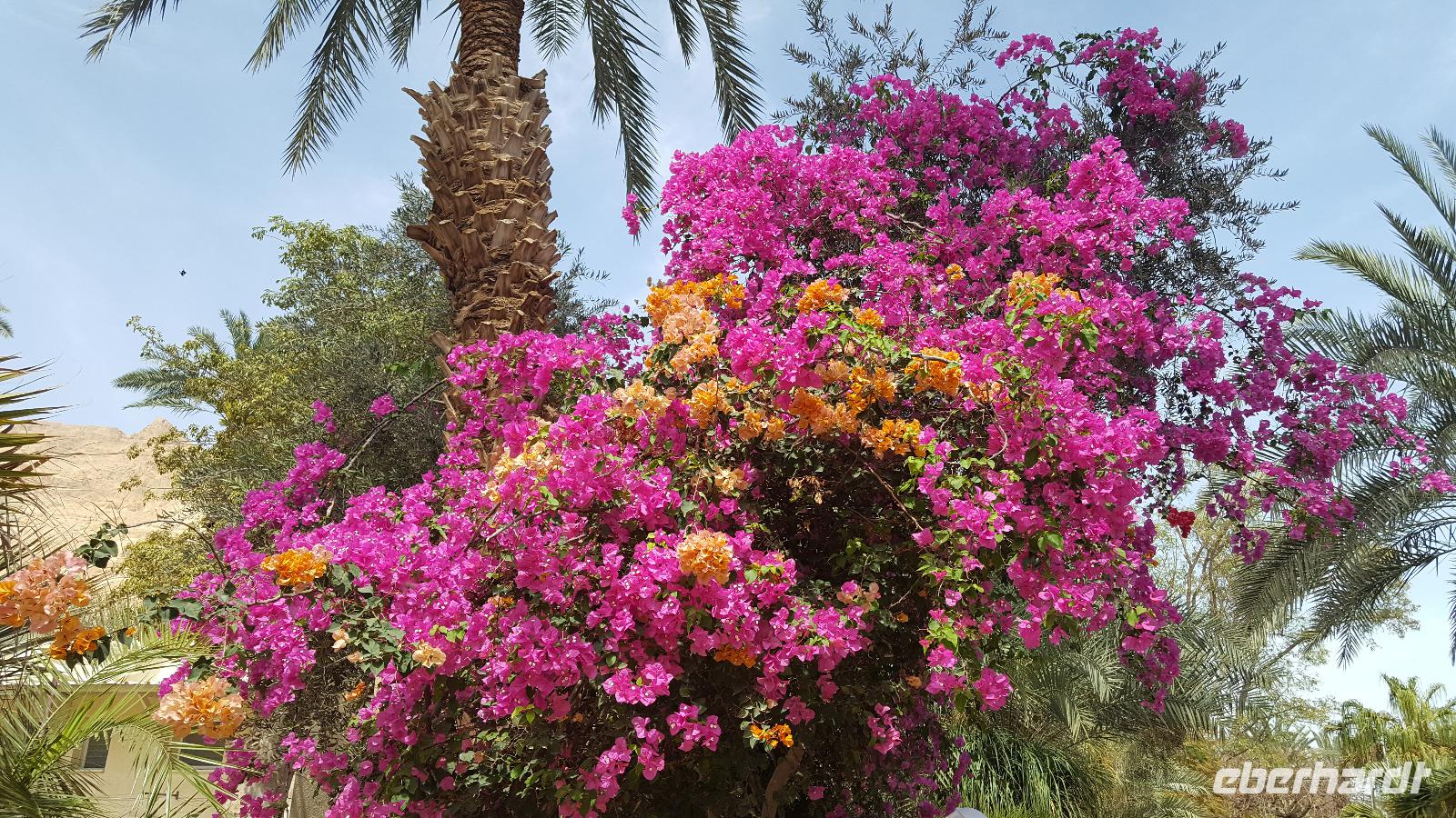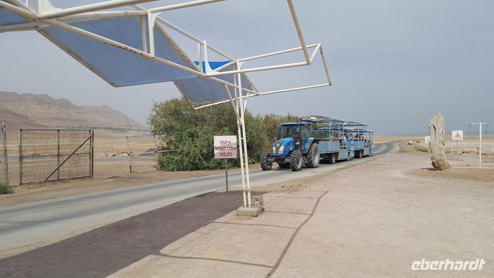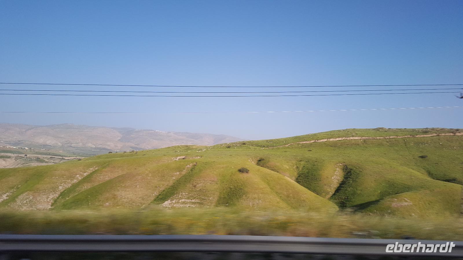 Auch heute Morgen sind 8 Uhr bereits die Koffer wieder im Bus und wir fahren los. Unser erstes Ziel ist Jericho, die älteste Stadt der Welt, aber da hat Gabi noch eine Überraschung für uns: Wir halten am Jordan, der berühmten Taufstelle Jesu. Etwas unwirklich überqueren wir die Grenzeinrichtungen und erreichen Kasser Al-Yahud oder Quasr el Yahud. So früh am Morgen erleben wir erste rituelle Waschungen Gläubiger, und haben selber Gelegenheit, den Jordan zu berühren. Auf der anderen Seite ist schon Jordanien. Einige Gäste hatten diese Seite schon besucht und waren nun tief beeindruckt. Aber nicht nur sie. Wir genossen die ruhige Morgenstunde hier und fuhren dann nach Palästina- wieder Uhren zurück, denn hier ist noch keine Sommerzeit. An einem Maulbeerfeigenbaum im Garten einer ehemaligen Botschaft halten wir, Gabi erzählt uns zur Geschichte dieses Gebietes in der Stadt Jericho und dann fahren wir zur Seilbahnstation. Mit 223 Metern unter dem Meeresspiegel die tiefstgelegene Seilbahn der Welt. Wir haben bei der Fahrt einen tollen Blick über die Stadt und auf die Ausgrabungen unter uns. Oben angekommen suchen wir Schatten und lauschen einem Text der Bibel zu Jericho. Leider konnten wir das Kloster nicht besuchen, offiziell waren Gruppen in der Osterzeit nicht willkommen. Doch wir bleiben noch ein wenig und genießen die Aussicht bevor wir mit der Seilbahn wieder hinunterfahren und zum nächsten Ziel aufbrechen: dem botanischen Garten im Kibbutz Ein Gedi. Ein kurzer Abstecher zum Ein Gedi Nationalpark und Gabis Wunsch erfüllt sich: wir sehen einen kleinen Steinbock. Im Kibbutz erwartet uns Elli, unser Guide hier. Er erzählt zum Kibbutz und zu den Lebensumständen hier, zur Geschichte und zum wunderbaren Garten. Mehr als 900 Pflanzenarten aus aller Welt wurden hier im Laufe der Jahre gepflanzt und die Kakteensammlung umfasst mehr als 1000 Arten. Was für eine Oase inmitten der Wüste. Am frühen Nachmittag fahren wir dann zum Spa Ein Gedi. Alle bekommen einen Schlüssel für ihr Schließfach und ein Handtuch und dann kann es losgehen: das Abenteuer „Schwimmen im Toten Meer". Viele genießen den Schwebezustand oder nutzen den mineralreichen Schlamm für eine Kurpackung. Eine wohltuende Auszeit. Am späten Nachmittag dann fahren wir nach Arad zu unserem Inbar Hotel. Hier werden wir 1 Nacht bleiben und morgen nach Jerusalem aufbrechen.