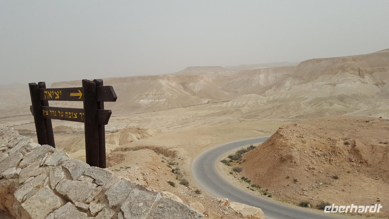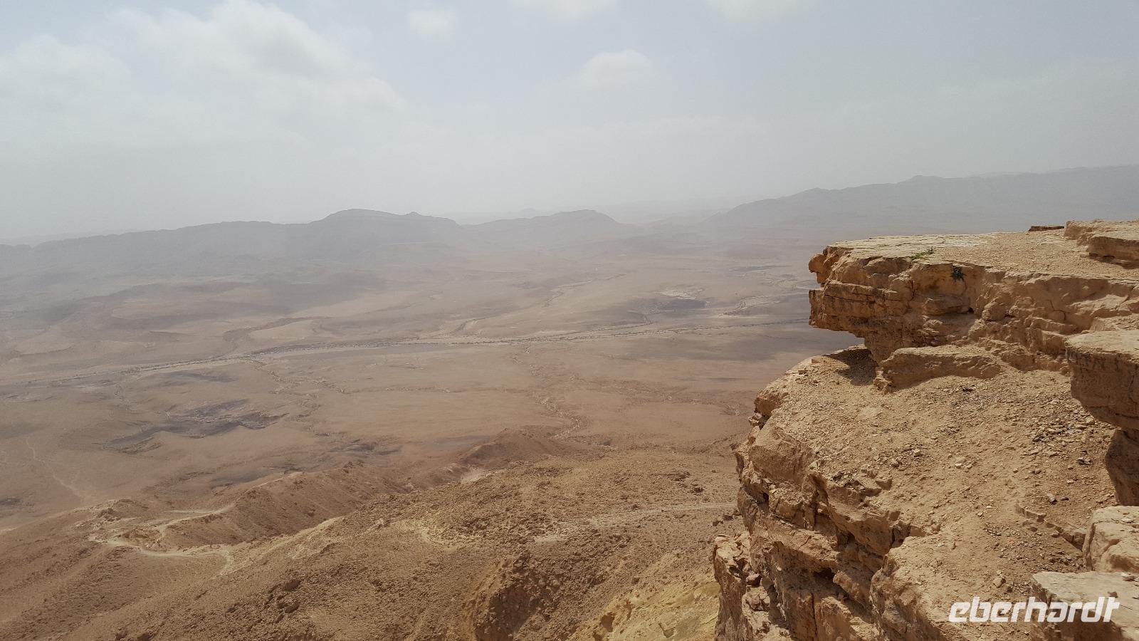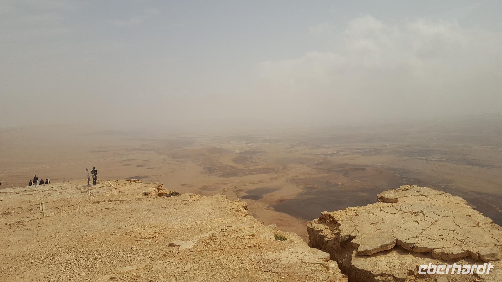 In der Nacht gab es einen Sandsturm und heute Morgen nieselt es ganz leicht. Mit 18 °C sind wir wieder im angenehmen Bereich angekommen und püntktlich 9 Uhr sind die Koffer im Bus und wir- mit einem guten Frühstück, trotz Shabbat, gestärkt- unternehmungslustig. Unterwegs genießen wir leise Klezmer Musik und individuelle Erklärungen, Gabi verzichtet heute auf das Bordmikrofon. An einem Schild „Vorsicht Kamele" machen wir natürlich einen Fotostopp. Dann erreichen wir Mitzpe Ramon und besuchen hier den Erosionskrater Maschtesch Ramon. Der Sturm der letzten Nacht war hier noch sehr aktiv und so schossen wir rasch einige Fotos und flüchteten ins Besucherzentrum. Der Eingangsbereich überraschte dann: er war dem israelischen Astronauten Ilan Ramon gewidmet. Ausstellungsstücke und ein Film erzählten von ihm. Er kam beim Absturz der Columbia ums Leben. Eine weitere Ausstellung erzählte sehr anschaulich von der Entstehung des Kraters durch Erosion, Wind und Wasser. Zum Abschluss dann ein toller Film über die Pflanzen und Tiere des Kraters. Nun war nochmals Zeit, der Wind hatte sich gelegt und wir konnten die nähere Umgebung erkunden bevor wir zum nächsten Ziel aufbrachen: nach Avdat, der berühmten Nabatäerstadt. Auch hier konnten wir im Besucherzentrum zunächst einen informativen Film zu den Nabatäern und Avdat sehen. Sie haben immerhin 65 Karawansereien an der berühmten Weihrauchstraße eingerichtet um die mehr als 2300 km lange Strecke bewältigen zu können und Weihrauch, Myrre und kostbare Gewürze von Arabien durch die Wüste Nevdev bis nach Gaza zum Mittelmeer transportieren zu können. Avdat war Station Nummer 62. Dann fahren wir hinauf auf den Bergrücken und bestaunen die umfangreichen Ausgrabungen, die Baukunst für Bögen und mehrgeschossige Häuser, die römische Villa, den Wachturm, die Zitadellen und auch die Kirchen mit ihren teilweise restaurierten Taufbecken. Weiter ging unsere Reise Richtung Sde Boker, doch unterwegs hielten wir erst einmal für eine kleine Stärkung. In Sde Boker besuchten wir das Grab von David Ben Gurion, dem Staatsgründer Israels und seiner Frau Paula. Auch eine große Gruppe Pfadfinder war zeitgleich hier. So warteten wir ab, bis wir uns und Gabis Erläuterungen wieder verstehen konnten. Gegen 16 Uhr machten wir uns dann auf den Weg nach Jerusalem, stoppten noch einmal für eine kurze Pause in Dvira und kamen am frühen Abend in unserem Hotel Shalom Rimonim an. Ein großes Buffet mit Vorspeisen, warmen Gerichten, Obst und Desserts wartete auf uns zum Abendessen. Das Stadtzentrum von Jerusalem müsse man unbedingt besuchen, wenn der Shabbat nach Sonnenuntergang zu Ende ist und die Stadt wieder erwacht- das wollten wir erleben und so bestellten wir kurzerhand für den Abend einen Bus in die Stadt und erlebten, wie nach 21 Uhr tatsächlich die Läden und Cafes wieder geöffnet wurden. Eine Gruppe junger Leute sang in der Fußgängerzone der Yehuda-Straße und der Rhythmus riss uns förmlich mit. Andere bauten ihre Musikinstrumente auf, nach 22 Uhr sollte es losgehen aber wir waren vernünftig und fuhren zurück zum Hotel, die Nacht würde ohnehin kurz genug werden.