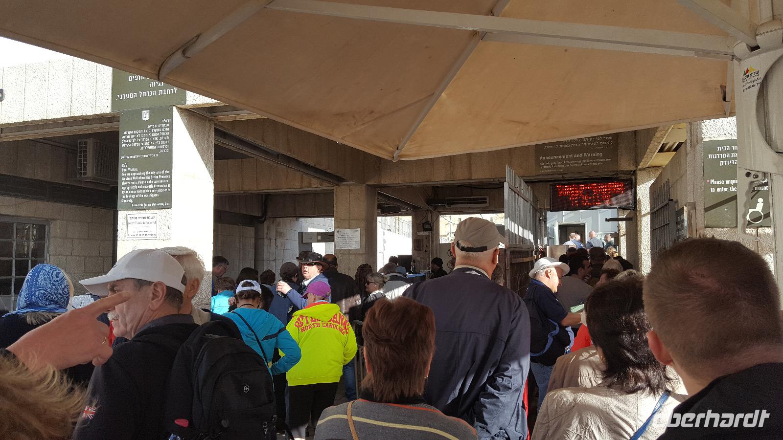 Der Tag heute steht allen bis zum Flughafentransfer zur freien Verfügung. Rasch waren wir uns einig, dass wir noch einmal ins Stadtzentrum fahren möchten. Da traf es sich gut, dass Mudi mit seinem Bus frei war und auch Gabi bot an, nochmals interessierte in der Stadt zu begleiten. Also treffen wir uns nach einem gewöhnungsbedürftigen Frühstück (nur ungesäuertes Brot) im Foyer des Hotels, hier können wir unsere Koffer einschließen lassen und fahren noch einmal los bis zum Jaffa-Tor. Hier treffen wir uns zum Mittag wieder zur Rückfahrt ins Hotel und jeder genießt den Vormittag individuell. Einige gehen mit Gabi die Stadtmauer entlang bis zum Damaskus-Tor. Von dort aus organisiert Gabi noch einen kurzen Besuch des sogenannten „Gartengrab". Und schon müssen wir zurück, die anderen warten bereits. Jetzt heißt es endgültig Abschied nehmen. Die ersten Transfers zum Flughafen starten und gegen 14 Uhr startet auch die Gruppe, die via München nach Hause fliegt. Wir überstehen die Sicherheits- und Passkontrollen, leider hat unser Flieger bereits Verspätung. Das Boarding verzögert sich und es kommt, wie es kommen muss: der Anschlussflieger nach Dresden ist weg. Da heißt es ruhig bleiben und diese Nacht in München verbringen. Also lassen wir uns zum Hotel bringen, essen noch eine Kleinigkeit und stoßen auf die verunglückte Heimkehr an. An der Rezeption besorgen wir uns Zahnbürsten, das Gepäck ist ja auf dem Flughafen ... und gute Nacht!