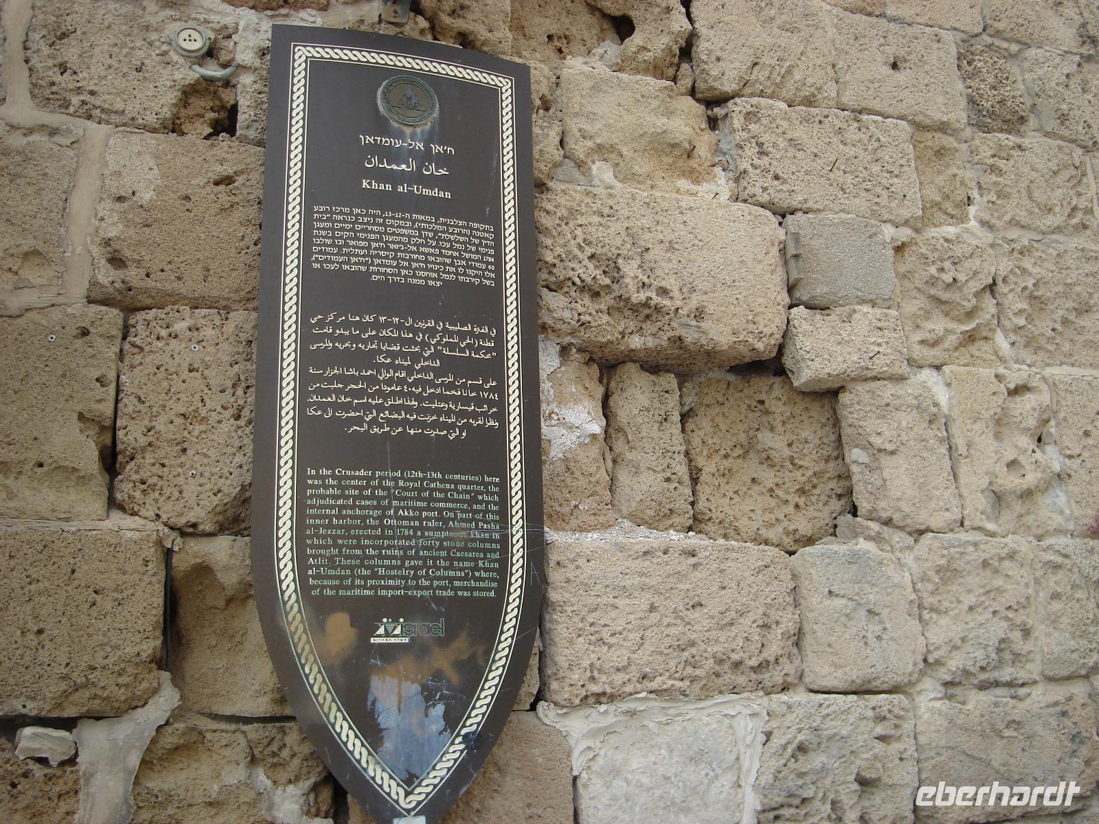Unser nächstes Ziel war Akko, die unterirdische Kreuzfahrerstadt, die ebenfalls zum UNESCO-Weltkulturerbe gehört. Wir gingen über den Hof, dann in die Gefängnishalle und durch die ehemaligen Rittersäle. Gabbi erklärte und zeigte wieder alles. Wir kamen wirklich aus dem Staunen nicht heraus und schlossen natürlich auch manche Bildungslücke bei dieser Gelegenheit. Anschließend aßen wir eine Kleinigkeit in einem nahen Straßenrestaurant. Frisch gestärkt tauchten wir nun in den arabischen Basar Akkos ein. Auf dem Rückweg zum Bus machte uns Gabbi noch auf eine Reihe historischer Gebäude aufmerksam, auch Drusen sahen wir in der Stadt. Und gleich war ein weiteres spannendes Thema angesprochen, auf das Gabbi bereitwillig und auf der Stelle einging.