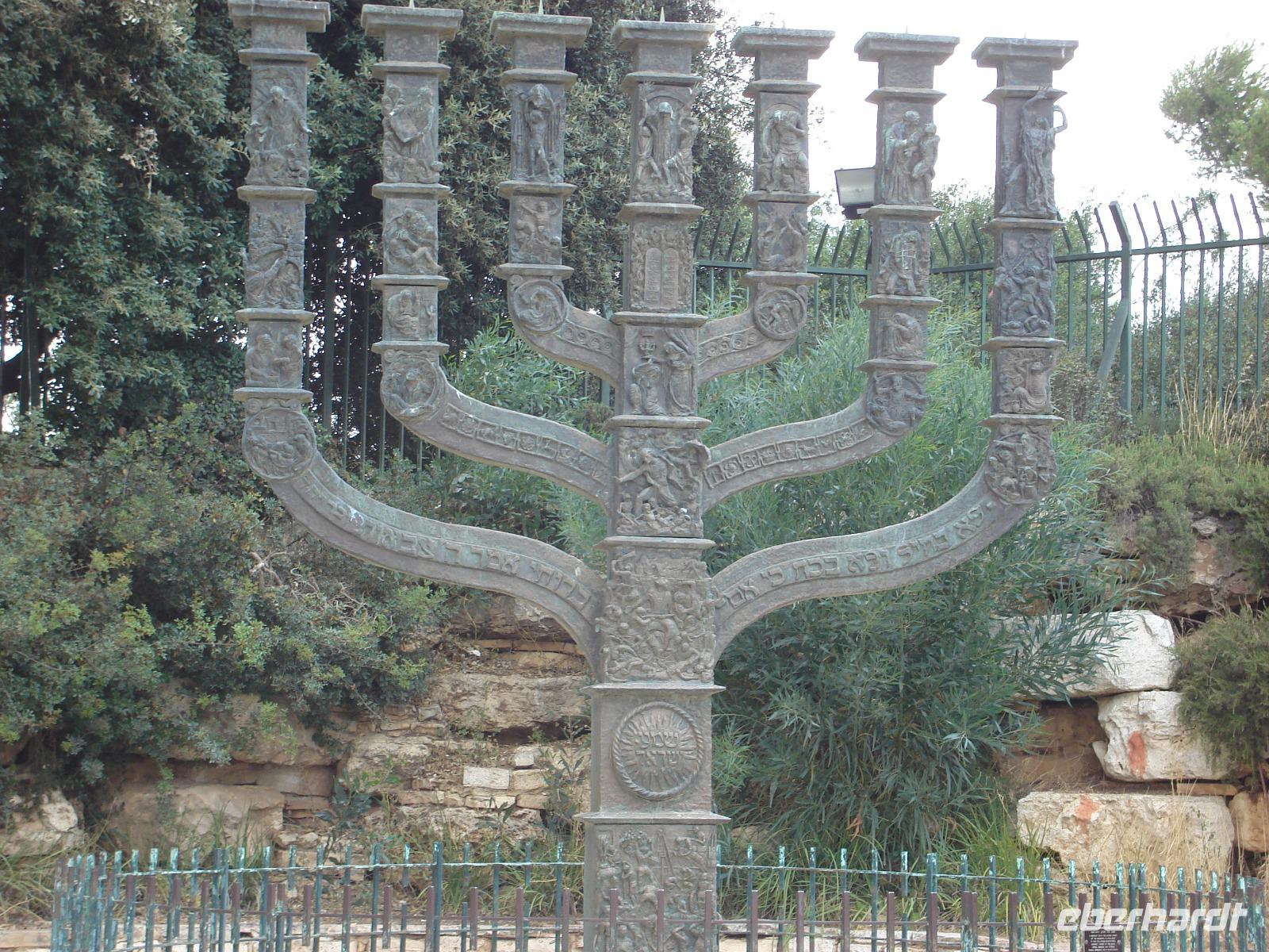 Wieder zurück in Jerusalem, wandten wir uns dem Regierungsviertel zu. Wir sahen das Gebäude der Knesset. Gegenüber der Knesset steht eine Menora, die uns Gabbi erläuterte.