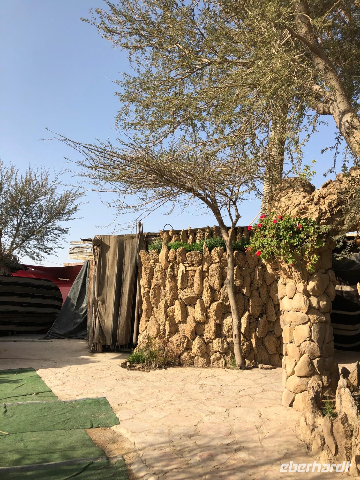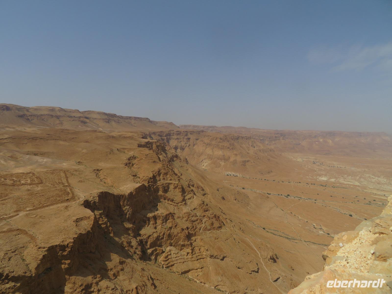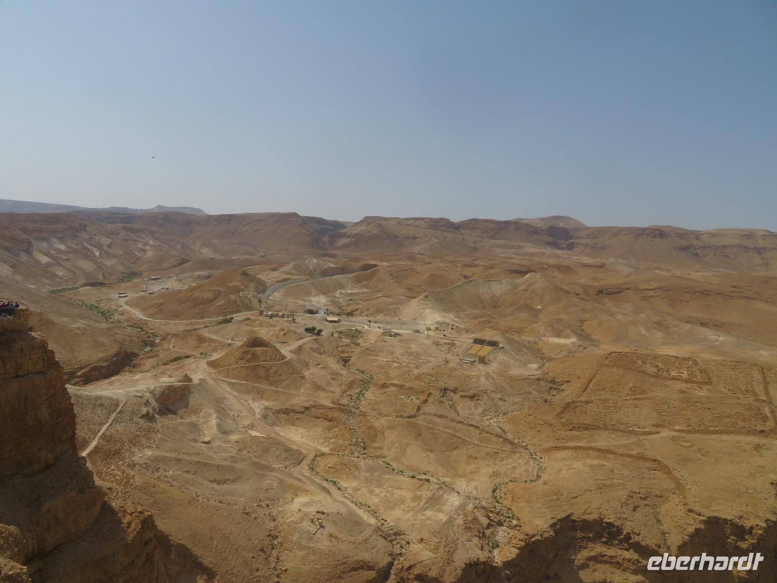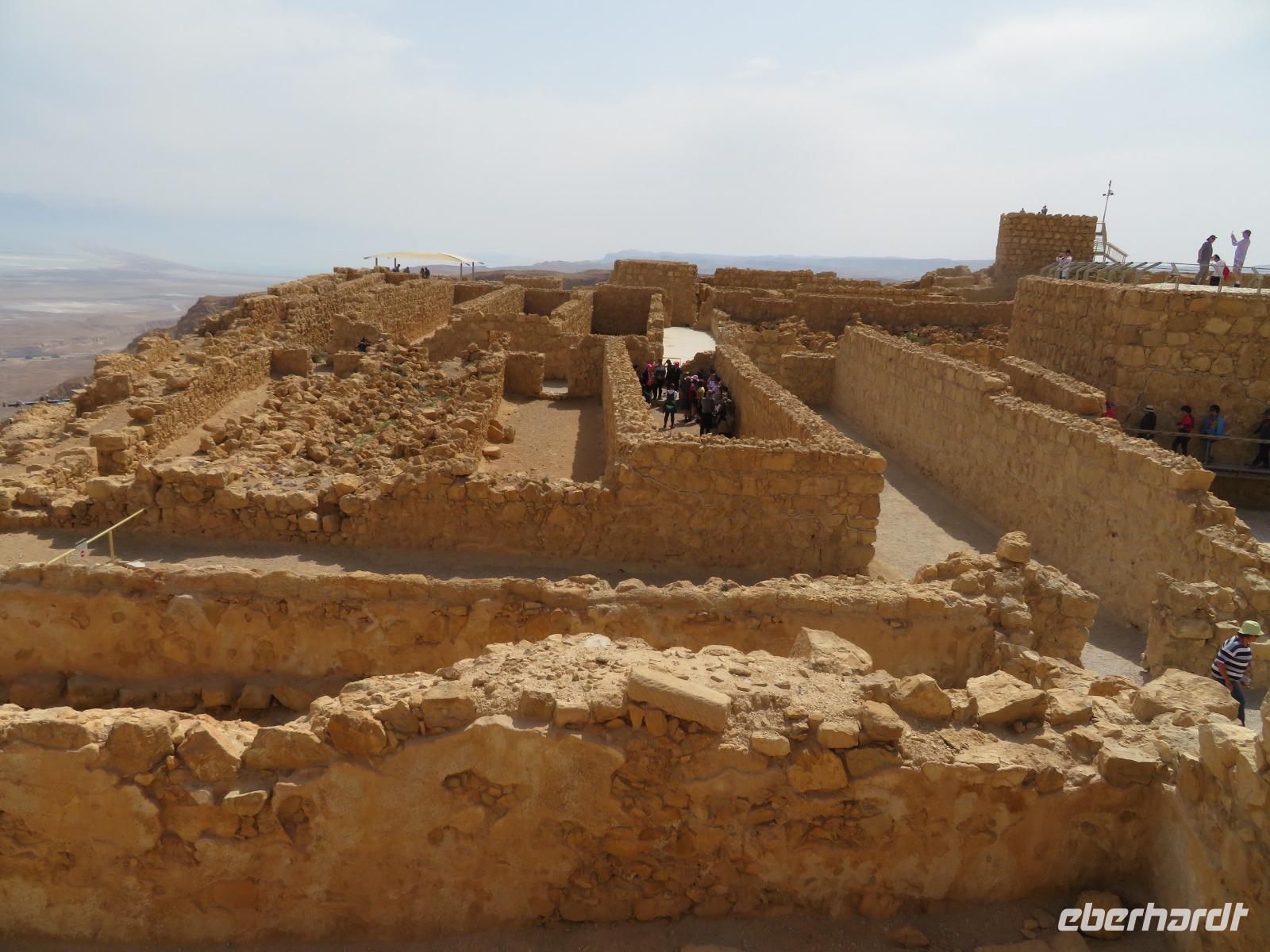 Unser erstes Ziel heute ist Qumran, keine 10 Minuten vom Kibbuz entfernt. Im Besucherzentrum sehen wir zunächst eine kleine Filmvorstellung mit Erläuterungen zum damaligen Leben in der antiken Siedlung. Wir besichtigen anschließend die Ausgrabungen, verschiedene Bäder und die Zisterne. In der Nähe von Qumran wurden in den 50er Jahren ebenfalls die Schriftrollen aus dem antiken Judentum gefunden. Heute befinden sich die berühmten Schriftrollen aus Qumran im „Schrein des Buches", einem Teil des Israel-Museums in Jerusalem. Auf unserem Weg nach Massada legen wir einen zusätzlichen Stopp bei „Ahava" ein, ein Kosmetikunternehmen in Israel, welches diverse Hautpflegeprodukte auf Mineralölbasis des Toten Meeres anbietet. Nach einer kurzen Filmvorführung haben wir die Möglichkeit, verschiedene Produkte zu testen und zu kaufen. Anschließend geht es weiter zur gigantischen Felsenfestung Massada. Am Besucherzentrum angekommen, gibt es zunächst wieder einen kurzen Film zur Einführung, bevor wir auf Menschenmassen und pures Chaos an der Seilbahnstation treffen. Schließlich schaffen wir es dann doch alle mit der Seilbahn hinauf zur Festung. Die Sonne brennt heute unermüdlich. Knapp 30 Grad stehen auf dem Thermometer. Seit 2001 zählt die Anlage zum Weltkulturerbe. Hier errichtete einst Herodes seine Festung und Palast. Nach interessanten Erklärungen zum Plateau verlassen wir die Festung übe die Römische Rampe. Wir fahren weiter zu einem Beduinencamp, wo man uns herzlich empfängt. Zum Mittagessen gibt es wieder reichlich Vorpeisen, frische Pita, Hummus, Kuskus sowie verschiedenes Fleisch. Dazu ein paar erfrischende Getränke. Gut gestärkt begeben wir uns in ein Beduinenzelt, wo wir aus erster Hand viele interessante Dinge aus dem Leben einer Beduinenfrau erfahren. Dazu gibt es Kaffee und Tee. Nach einer aufschlussreichen Gesprächsrunde fahren wir weiter zum Hotel direkt am Toten Meer.