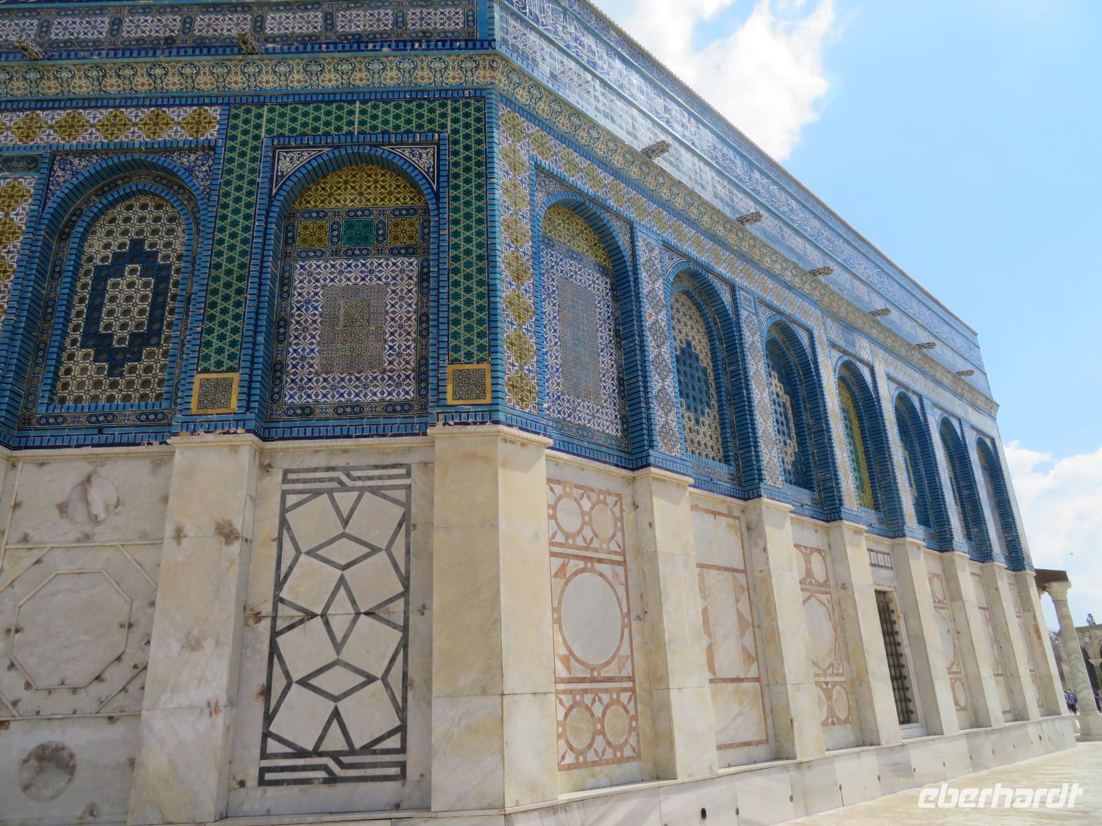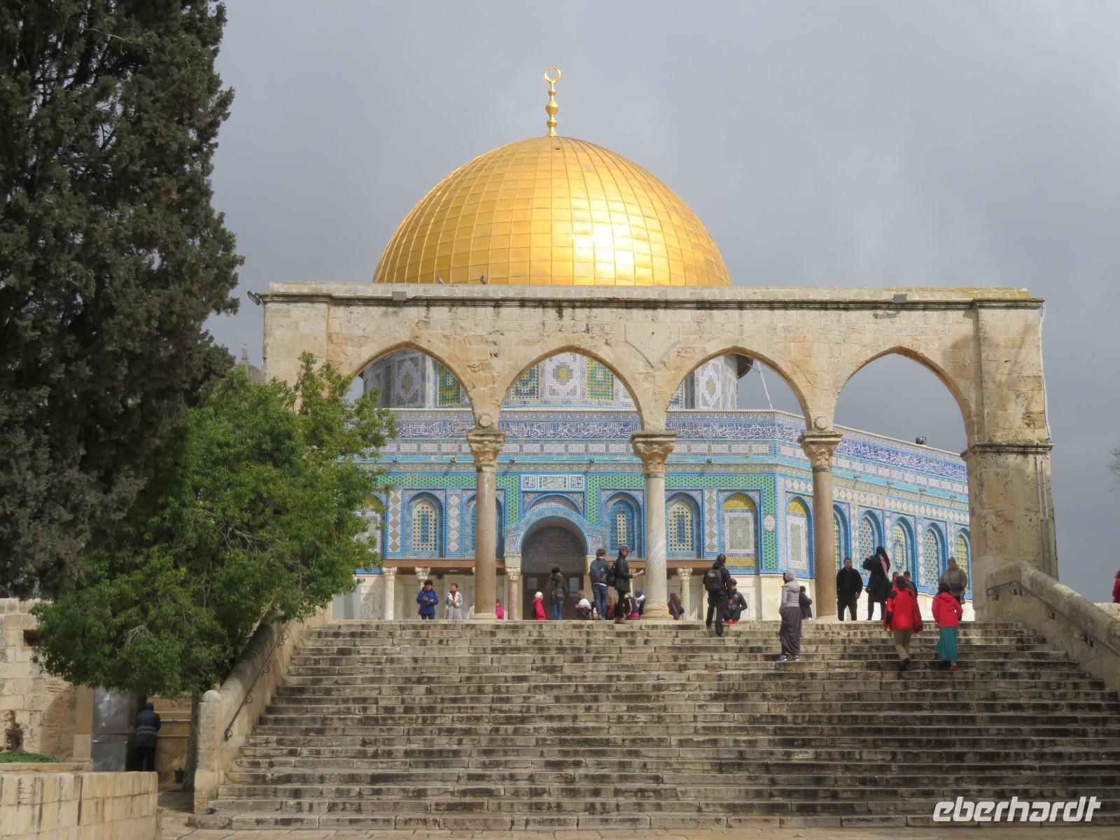 Wieder beginnen wir unseren Tag pünktlich um 8 Uhr. Erstes Ziel heute ist der Tempelberg mit Felsendom und Al-Aqsa-Moschee. Nirgendwo sonst sind Judentum, Christentum und der Islam so eng verbunden wie hier. Der Felsendom ist das wohl bedeutendste islamische Bauwerk der Stadt und nach Mekka und Medina das bedeutendste islamische Heiligtum. Der Schrein wurde unter dem Kalifen Abd-el Malik über dem heiligen Felsen errichtet, von dem Mohammed gen Himmel geritten sein soll. Die Al-Aqsa-Moschee nimmt den größten Teil des südlichen Tempelberges ein. Die Gebetsrichtung natürlich gen Süden, Richtung Mekka. Die größte Moschee Jerusalems bietet Platz für rund 5.000 Gläubige. Nach einigen interessanten Erklärungen verlassen wir den Tempelberg und begeben uns zur Westmauer an der Südwestseite des Tempelbezirks. Die 48 Meter lange und 18 Meter hohe Klagemauer sind die einzigen Überreste des zweiten Tempels und das bedeutendste Heiligtum der Juden. Täglich kommen Tausende von Pilgern und beten hier oder stecken kleine Zettel mit Fürbitten in die großen Kalksteinsteinquader. Anschließend erreichen wir nach einem kurzen Spaziergang die Davidstadt. Das davidische Jerusalem ist terrassenförmig angelegt und liegt am Hang des Berges Ophel. Das Gelände ist eine sehenswerte Ausgrabung. Über Treppen und Holzstege gelangt man, vorbei an Tonscherben und Geröll, zu den Überresten von Davids Palast und dem verbrannten Haus. Allerdings gilt eine tatsächliche Verbindung zu David noch längst nicht als erwiesen. Heute entscheiden wir uns mal wieder für ein gemütliches Picknick in freier Natur, bevor wir Knesset, das israelische Parlament von außen besichtigen sowie den siebenarmigen Leuchter davor, die Menorah. Zum Abschluss des Tages besuchen wir Yad Vashem, Holocaust- Gedenstätte im Westen der Stadt. Der sechsarmige Leuchter am Eingang der Gedenkstätte gilt als Symbol von Yad Vashem. Die sechs Arme stehen für die rund 6 Mio. Juden, welche Opfer des Dritten Reiches wurden.