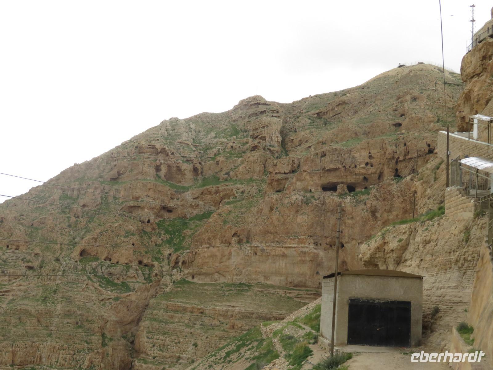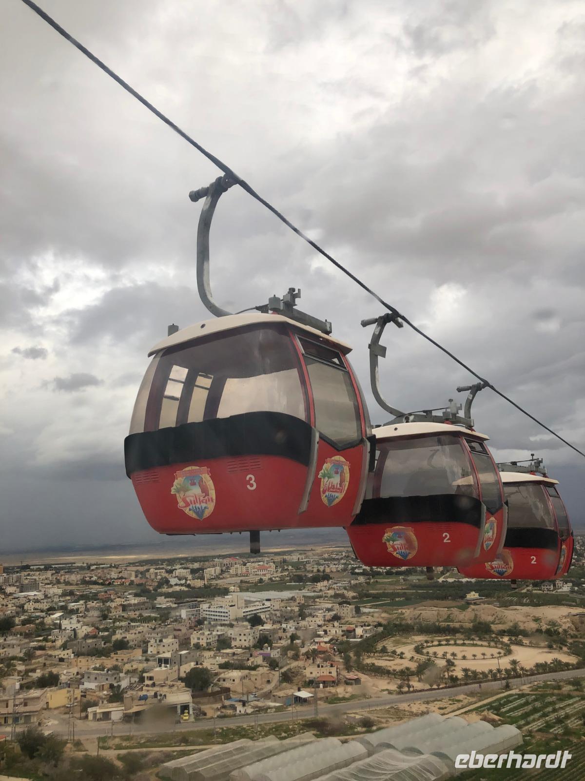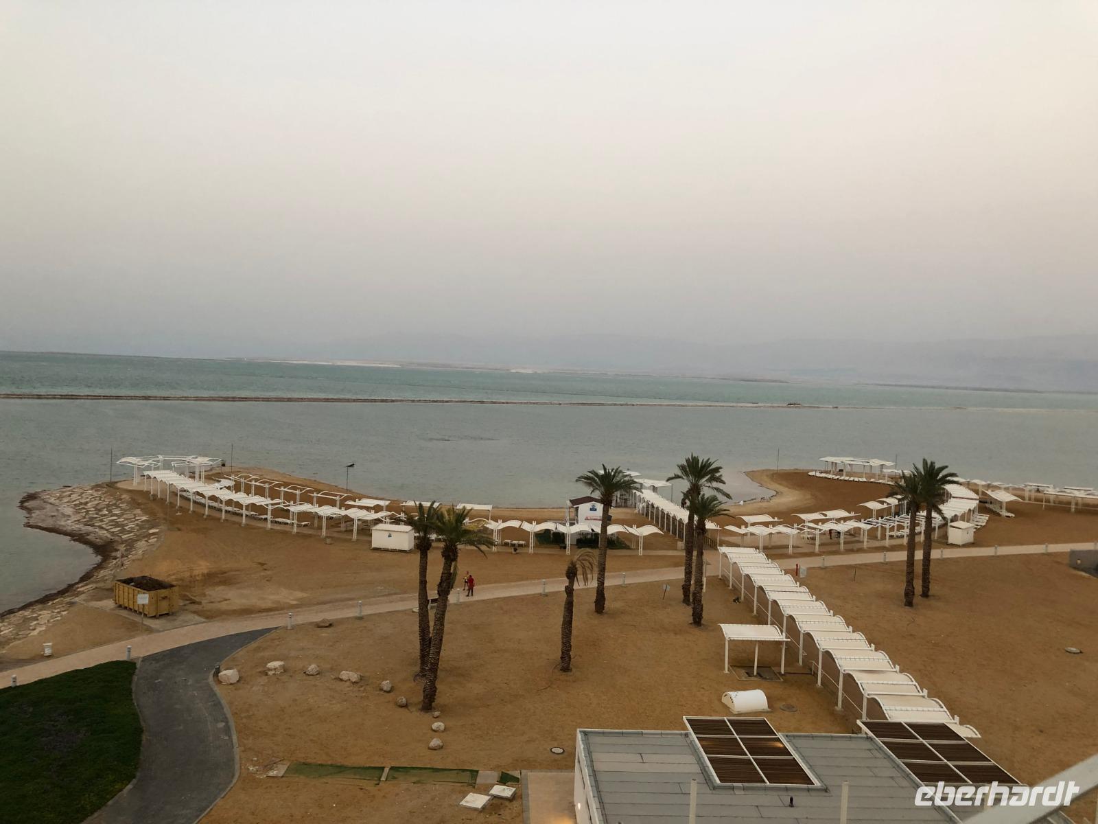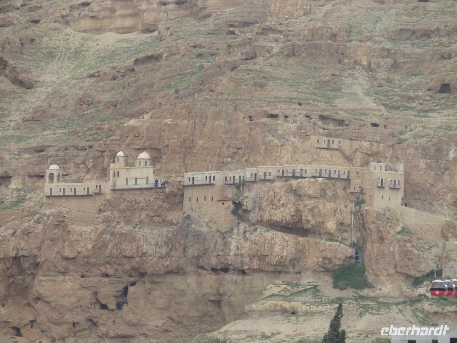 Heute können wir zunächst ein bisschen ausschlafen und die Gelegenheit nutzen, ein Bad im Toten Meer zu nehmen. Leider spielt das Wetter nicht ganz so mit, wie wir es gerne hätten. Dennoch stürzt sich ein Großteil von uns in die salzigen „Fluten". Gegen 10:30 Uhr brechen wir dann auf und fahren wieder gen Westjordanland ins palästinensische Autonomiegebiet nach Jericho. Beim Klang des Namens kann man förmlich die Posaunen blasen hören. Jericho ist die tiefstgelegene und älteste Stadt der Welt. Die Oase Jericho ist rund 15 Kilometer vom Toten Meer entfernt und ist dank vieler Süßwasserquellen ein wunderbarer Ort für den Anbau von Bananen, Datteln und anderen Früchten. Schon kurz bevor wir Jericho erreichen, säumen zahlreiche Dattelpalmen die Straßenränder. Wir fahren mit einer Seilbahn auf den Berg der Versuchung. Nachdem Jesus von Johannes dem Täufer im Jordan getauft wurde, fastete er 40 Tage lag in der judäischen Wüste. Dies führte den Teufel herbei, der Jesus auf jenen Berg führte und die Herrschaft über das weite Land versprach. Ronit erzählt uns viele Geschichten dazu und wir besuchen das Kloster der Versuchung. Wir haben Glück und es ist heute für uns geöffnet. Anschließend begeben wir uns wieder ins Tal und sehen die Ausgrabungen Tell es Sultan, bevor wir eine kurze Mittagspause einlegen. Wir fahren wieder zurück Richtung Süden und legen einen Stopp im Kibbuz Ein Gedi ein, wo wir den Botanischen Garten besuchen. Oberhalb des Toten Meeres thront in einem tropischen Pflanzenparadies das Gästehaus Ein Gedi. Der Besitzer empfängt uns freundlich und unternimmt mit uns einen Rundgang durch sein Reich. Schließlich erreichen wir am Abend wieder unser Hotel in En Bokek und lassen uns noch einmal das Essen so richtig schmecken.