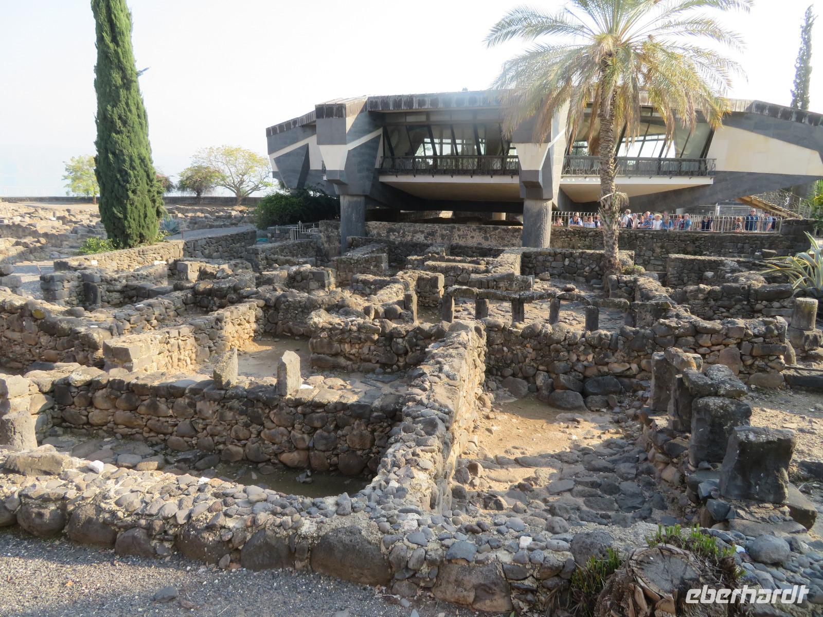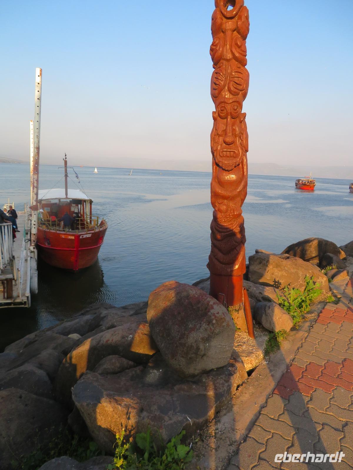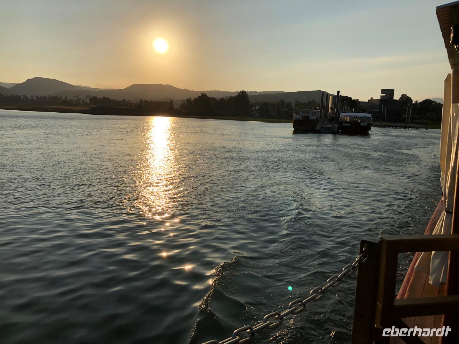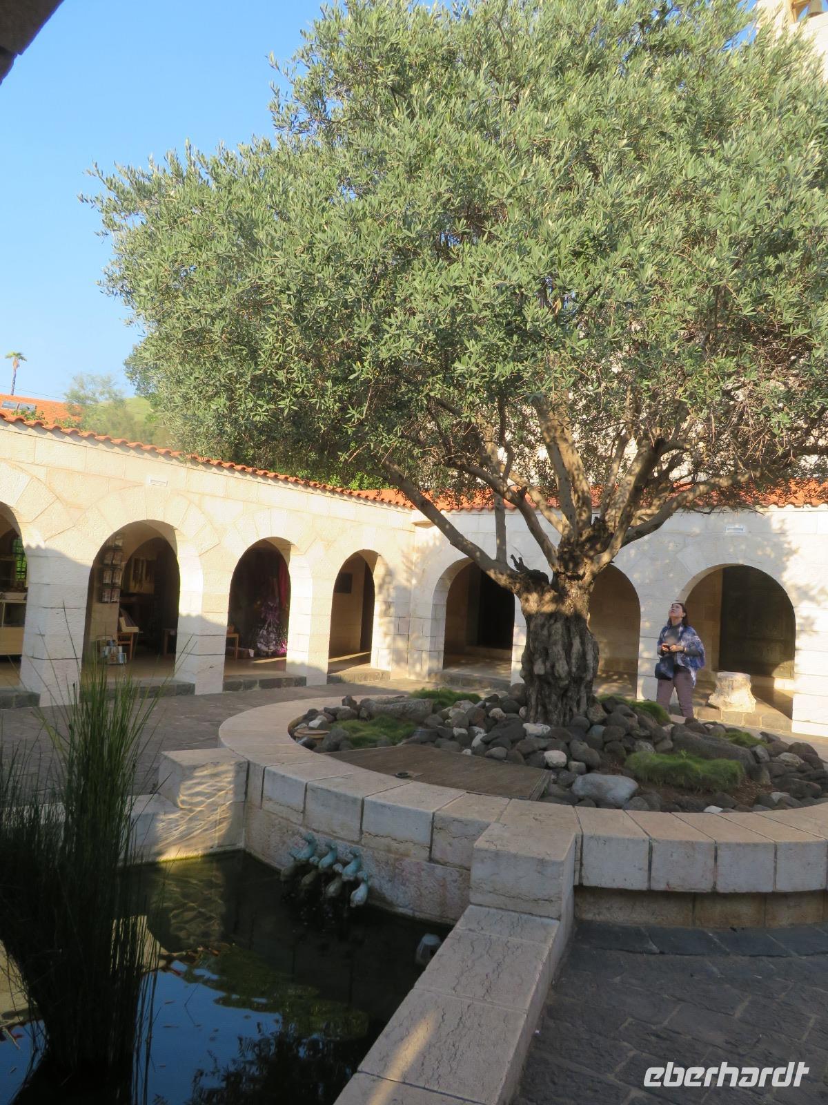 Nach dem Frühstück in unserem tollen Kibbuz wartet ein weiterer aufregender Tag auf uns. Heute stehen verschiedene biblische Stätten rund um den See Genezareth, im Hebräischen "Kinnereth", auf unserem Programm. „Selig sind die Barmherzigen, denn sie werden Barmherzigkeit erlangen." Erstes Ziel ist der Berg der Seligpreisung. Hier hielt Jesu seine Bergpredigt, nachzulesen im Matthäusevangelium der Bibel. Wir fahren weiter Richtung Norden und besuchen Banyas, eine der drei Jordanquellen und antike Herrschaftsresidenz Caesarea Philippi. Nun wird es etwas politisch, wir fahren auf den Golan, nahe der syrischen Grenze und haben bei bestem Wetter guten Blick auf das Nachbarland. Anschließend kehren wir zurück zum Kibbuz Ein Gev, wo wir zur Mittagspause den leckeren St. Peter-Fisch genießen, welchen es nur im See Genezareth zu fangen gibt. Als Vorspeise gibt es natürlich wieder reichlich Hummus, Pita und verschiedenes Gemüse. Nach der Mittagspause fahren wir wieder ein Stück Richtung Norden nach Kapernaum. Das ehemalige Fischerdorf in Galiläa ist heute Ausgrabungsort und beherbergt die römisch-katholische Petruskirche, welche über dem als Ausgrabung bekanntes Haus des Petrus steht. Anschließend fahren wir weiter ins benachbarte Tabgha und besuchen die allseits bekannte Brotvermerhrungskirche. Hier soll nach dem Evangelium von Matthäus die Brot-und Fischvermerhrung bei der Speisung der Fünftausend stattgefunden haben. Zum Abschluss des Tages genießen wir bei einer Bootsfahrt die abendliche Stimmung am See Genezareth. Ein wunderschöner Tag neigt sich dem Ende...