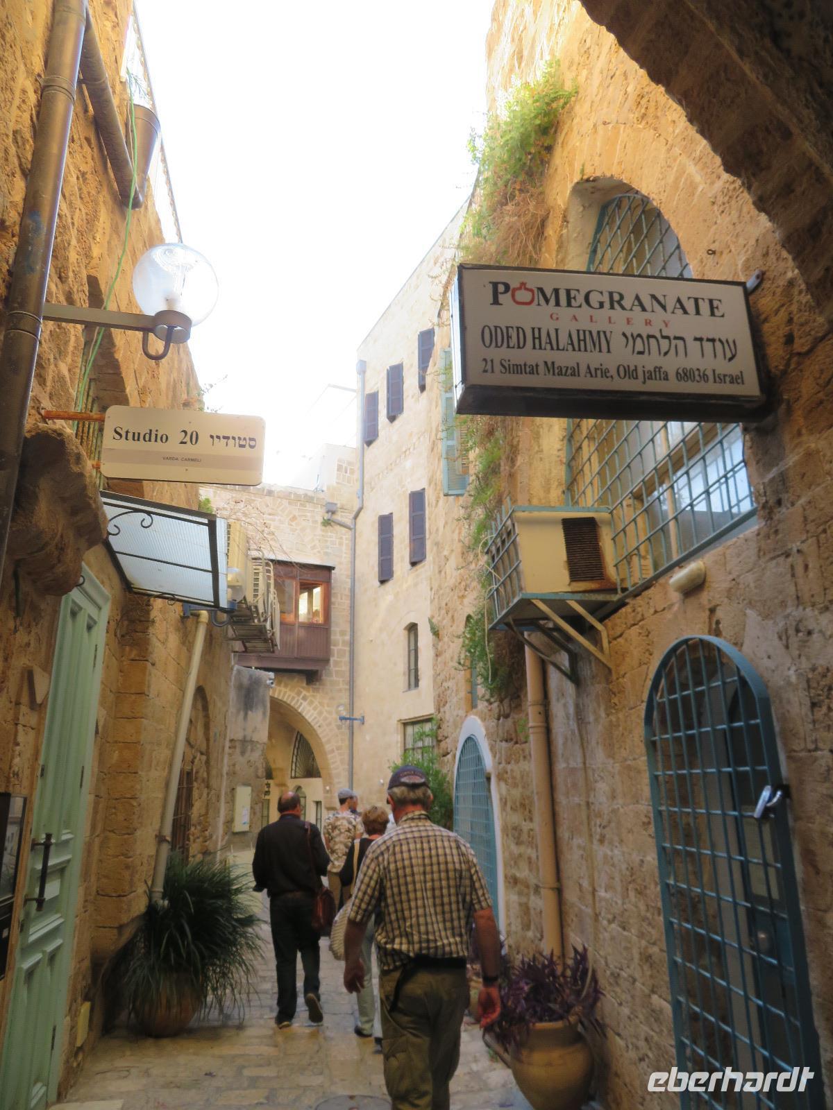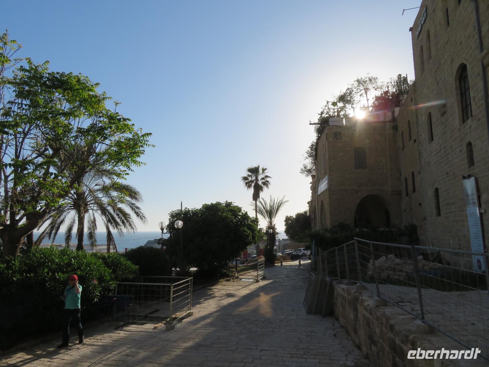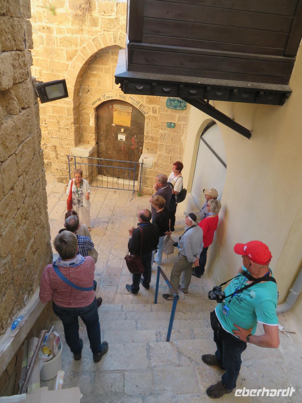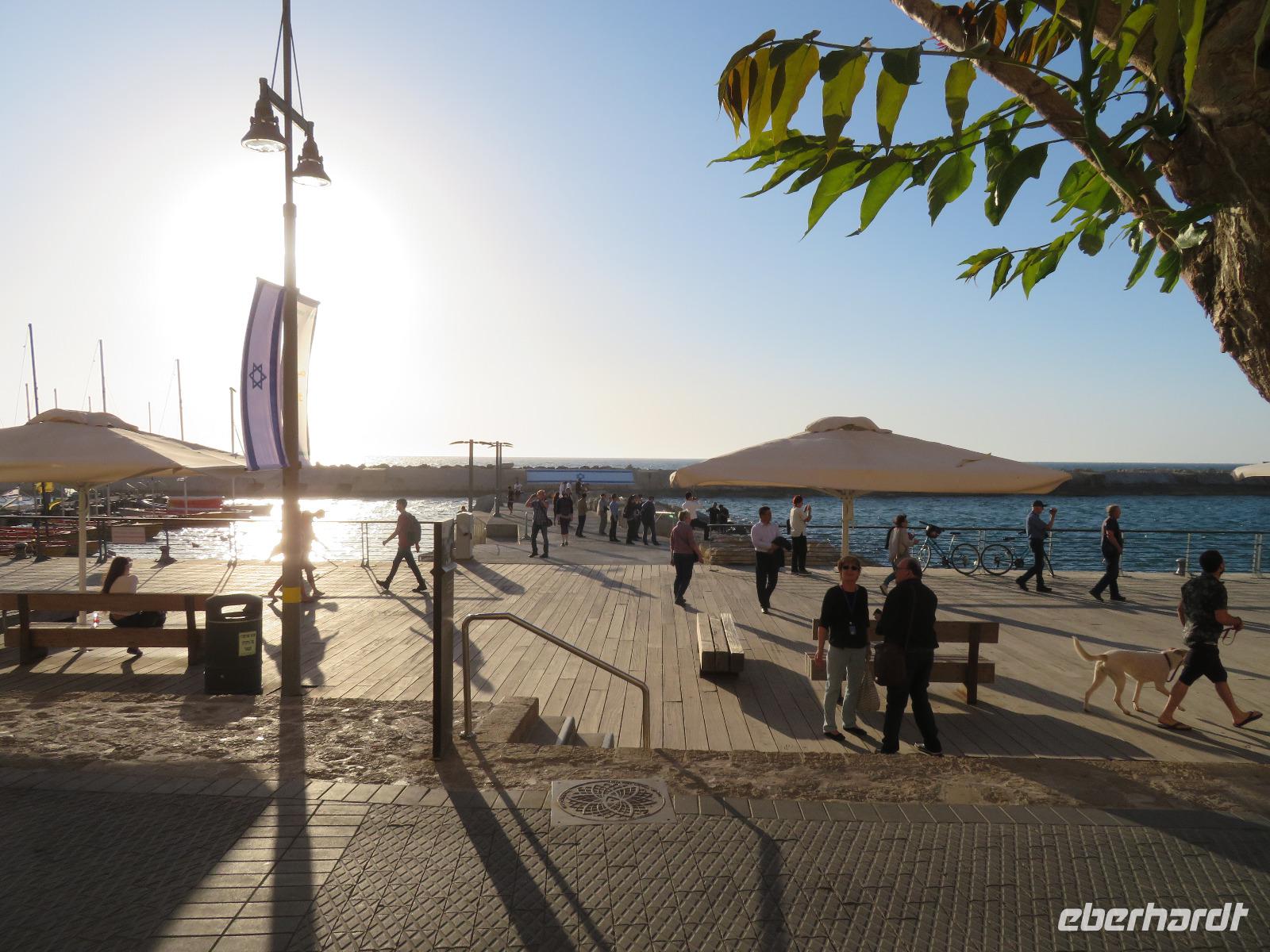 Eine tolle Reise begann am Sonntag Morgen. Von unseren verschiedenen Abflughäfen ausgehend traf sich die gesamte Reisegruppe auf dem Flughafen in Tel Aviv. Unsere Reiseleiterin Ronit begrüßte uns herzlich und wir fuhren gemeinsam mit unserem Busfahrer Ami in das alte Jaffa. Oder Yafo, wie Ronit den südlichsten und ältesten Stadtteil Tel Avivs auf hebräisch aussprach. Dort angekommen, schlenderten wir in den kleinen geschichtsträchtigen Gassen bis zum Haus Simon des Gerbers. Unser Rundgang führte uns weiter an den alten Hafen. Das Mittelmeer glitzerte in der Sonne und wir nahmen im Restaurant "old man and the sea" Platz, welches auch bei den Einheimischen sehr beliebt war. Bei leckerem Essen genossen wir die Stimmung der untergehenden Sonne und konnten uns so schon ein wenig näher kennen lernen. Danach spazierten wir im nächtlich beleuchteten Alt-Jaffa bis zur St. Peter-Kirche sowie dem angrenzenden Springbrunnen mit modernen Abbildungen der Sternzeichen. Da außerdem der Eurovision Song Contest bevor stand, konnten wir von weitem die bunten Lichter der Veranstaltungshalle am Strand von Tel Aviv erkennen. Nun war der Tag für uns alle recht lang, daher waren wir froh, als wir im Hotel eincheckten aber auch neugierig auf den nächsten Tag.