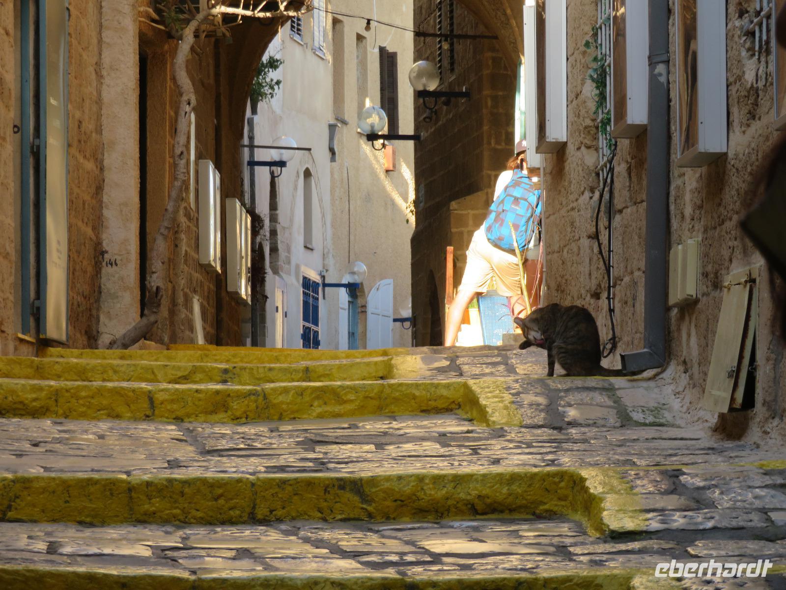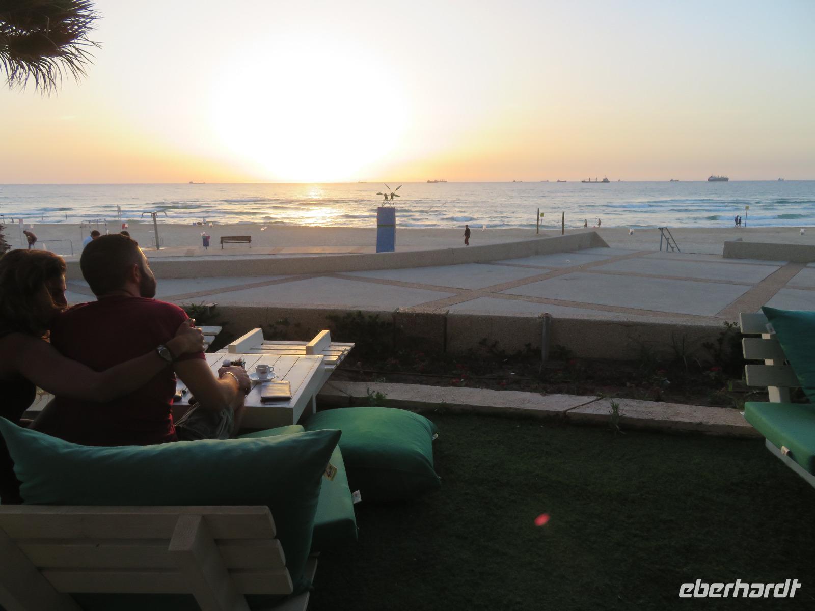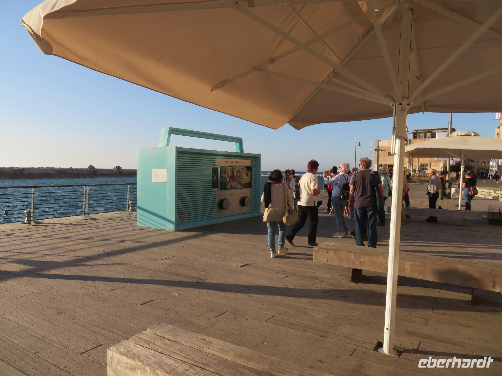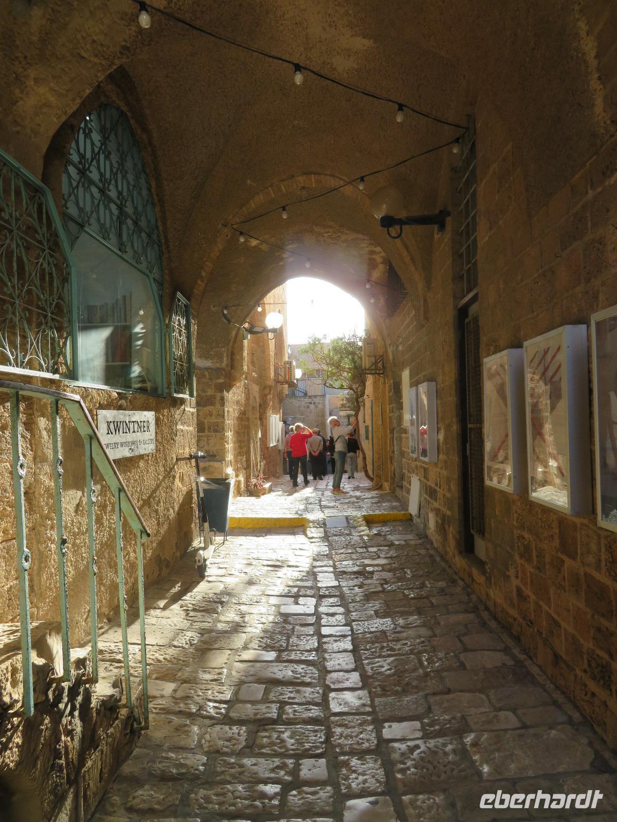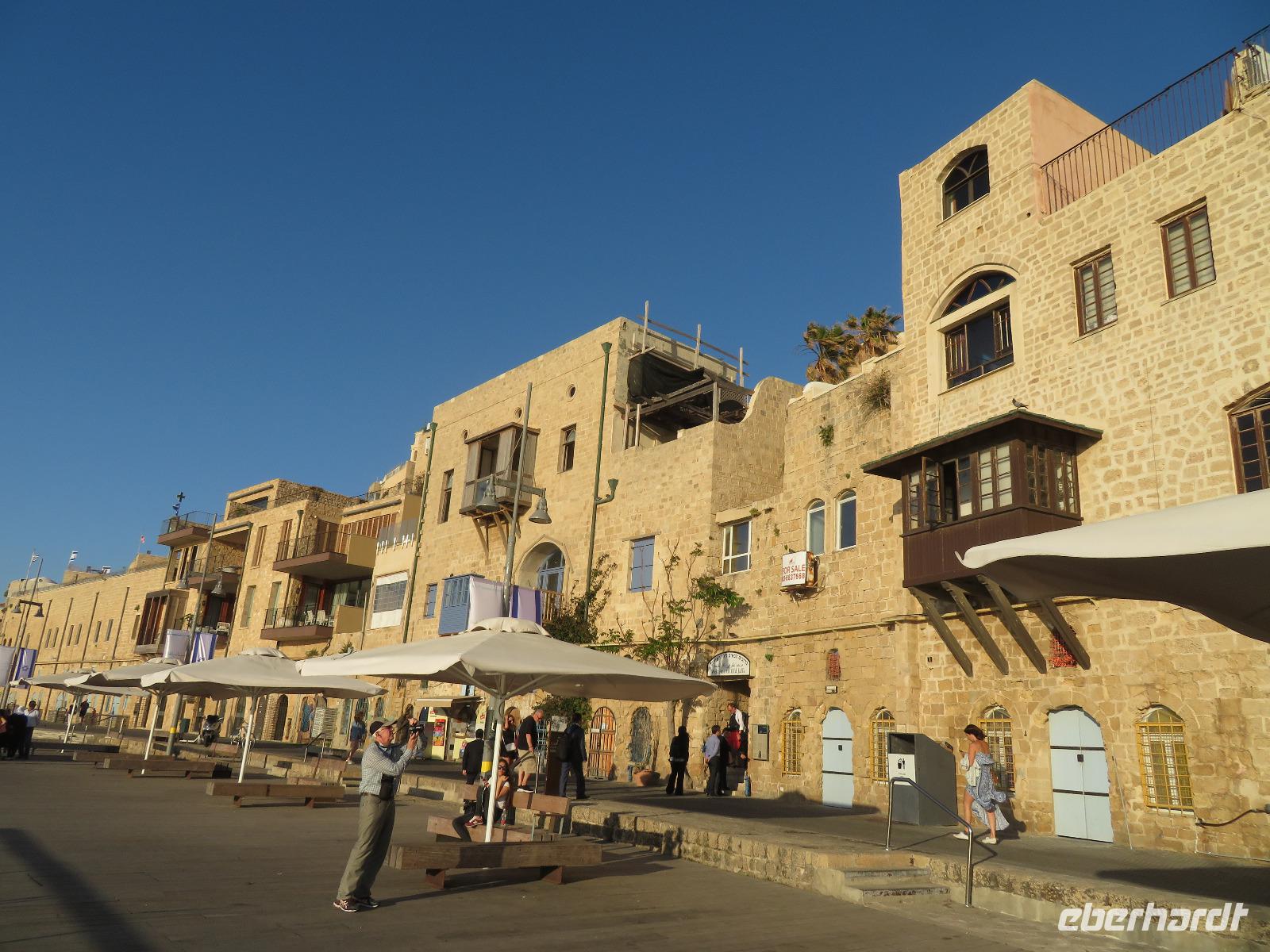 Eine tolle Reise begann am Sonntag Morgen. Von unseren verschiedenen Abflughäfen ausgehend traf sich die gesamte Reisegruppe auf dem Flughafen in Tel Aviv. Unsere Reiseleiterin Ronit begrüßte uns herzlich und wir fuhren gemeinsam mit unserem Busfahrer Ami in das alte Jaffa. Oder Yafo, wie Ronit den südlichsten und ältesten Stadtteil Tel Avivs auf hebräisch aussprach. Dort angekommen, schlenderten wir in den kleinen geschichtsträchtigen Gassen bis zum Haus Simon des Gerbers. Unser Rundgang führte uns weiter an den alten Hafen. Das Mittelmeer glitzerte in der Sonne und wir nahmen im Restaurant "old man and the sea" Platz, welches auch bei den Einheimischen sehr beliebt war. Bei leckerem Essen genossen wir die Stimmung der untergehenden Sonne und konnten uns so schon ein wenig näher kennen lernen. Danach spazierten wir im nächtlich beleuchteten Alt-Jaffa bis zur St. Peter-Kirche sowie dem angrenzenden Springbrunnen mit modernen Abbildungen der Sternzeichen. Da außerdem der Eurovision Song Contest bevor stand, konnten wir von weitem die bunten Lichter der Veranstaltungshalle am Strand von Tel Aviv erkennen. Nun war der Tag für uns alle recht lang, daher waren wir froh, als wir im Hotel eincheckten aber auch neugierig auf den nächsten Tag.