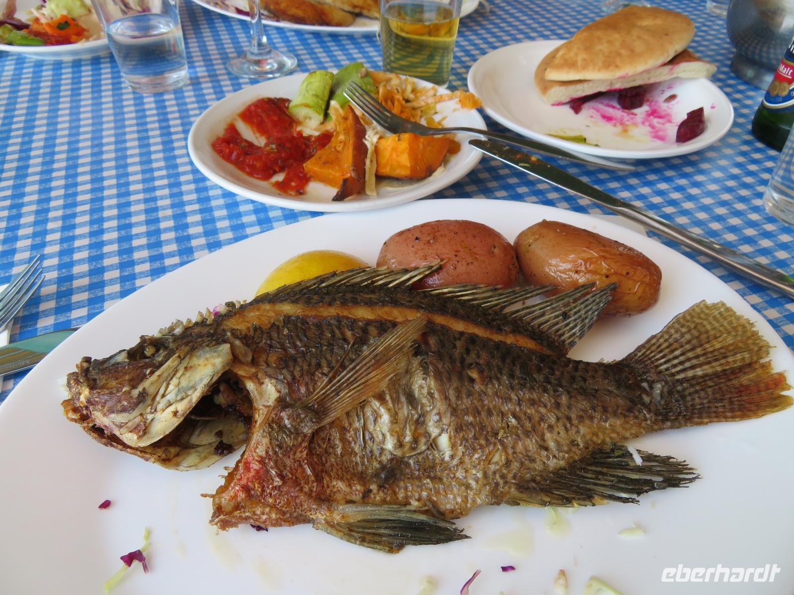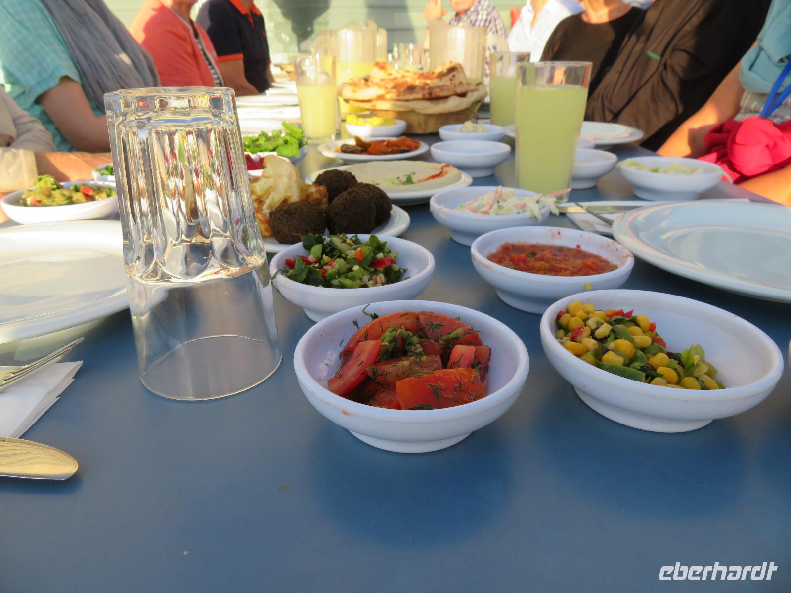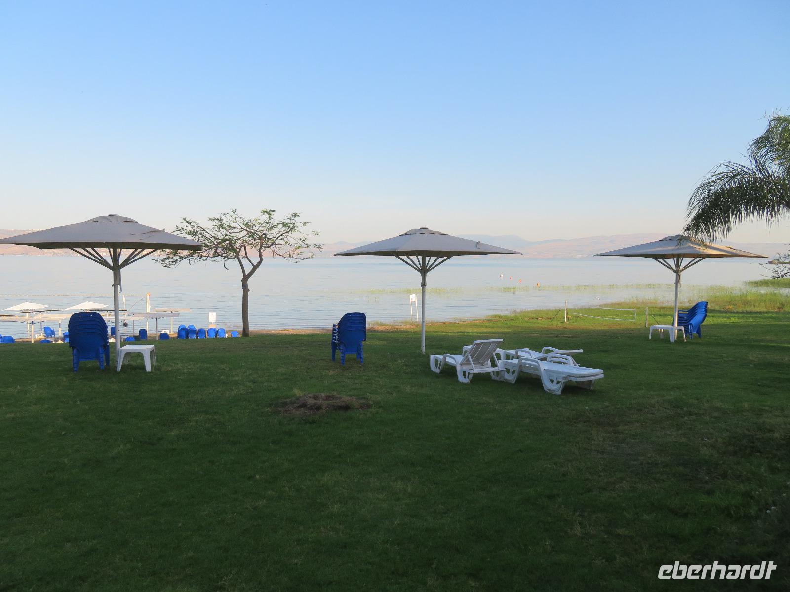 Unsere Weiterfahrt führte uns vorbei am Karmel-Gebirge Richtung Haifa zu den wahrlich beeindruckenden Bahaii-Gärten. Diese hängenden Gärten liegen direkt am Karmel-Berg, inmitten einiger Heiligtümer der Bahai-Religionsanhänger und zeigen typisch florale Elemente persischer Gärten. Wir standen oberhalb der imposanten Grünanlage und genossen diese einmalige Aussicht über die Bucht, sogar die Grenze zum Libanon war zu sehen. Der folgende Halt war in der Kreufahrerstatdt Akko. Nach einer kurzen Mittagspause zeigte uns Ronit die unterirdische Festung mit ihrem gewaltigen Kreuzgewölben und mächtigen Säulen unter der heutigen Altstadt, welche ebenfalls zum UNESCO-Weltkulturerbe zählt. Ebenso war faszinierend, dass viele Gebäude der Stadt auf alten Fundamenten standen. So konnten wir uns bildhaft vorstellen, wie die Stadt zur Zeit der Kreuzritter, Hospitaler und Eroberer aussah. Der Tag der Weltkulturerbe neigte sich dem Ende entgegen und wir erreichten unseren Kibbutz am See Genezareth mit kleinen Bungalows am Ufer gelegen.