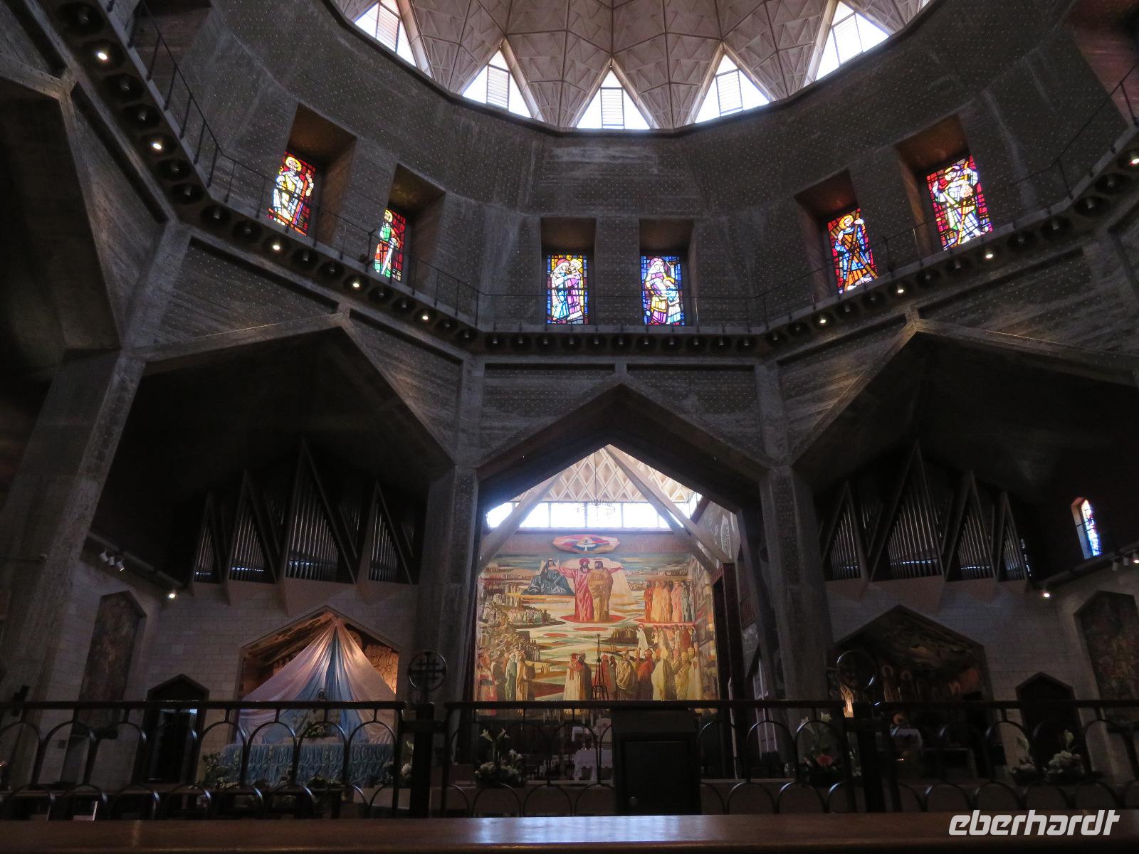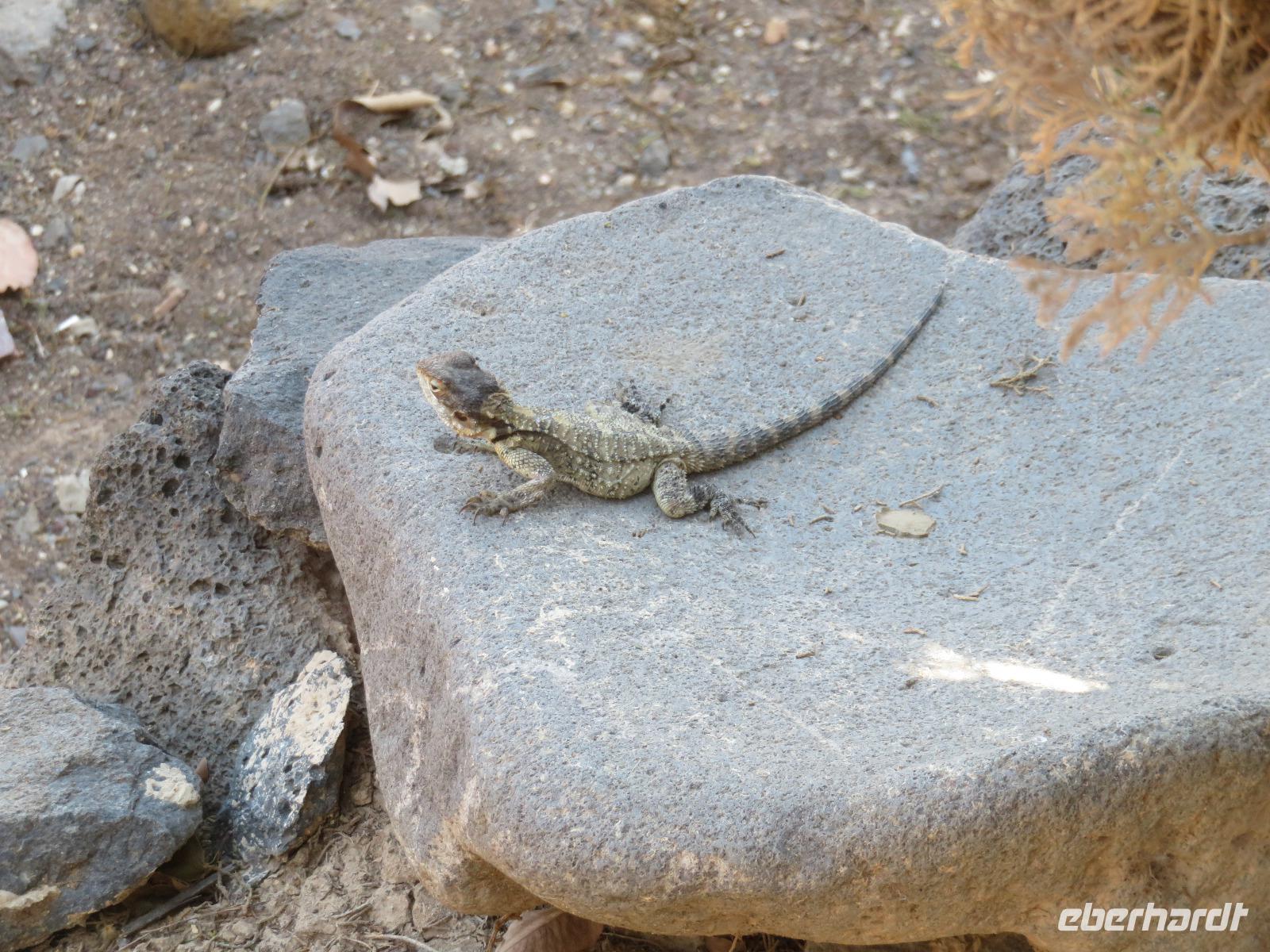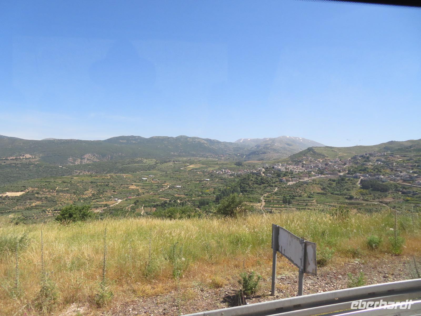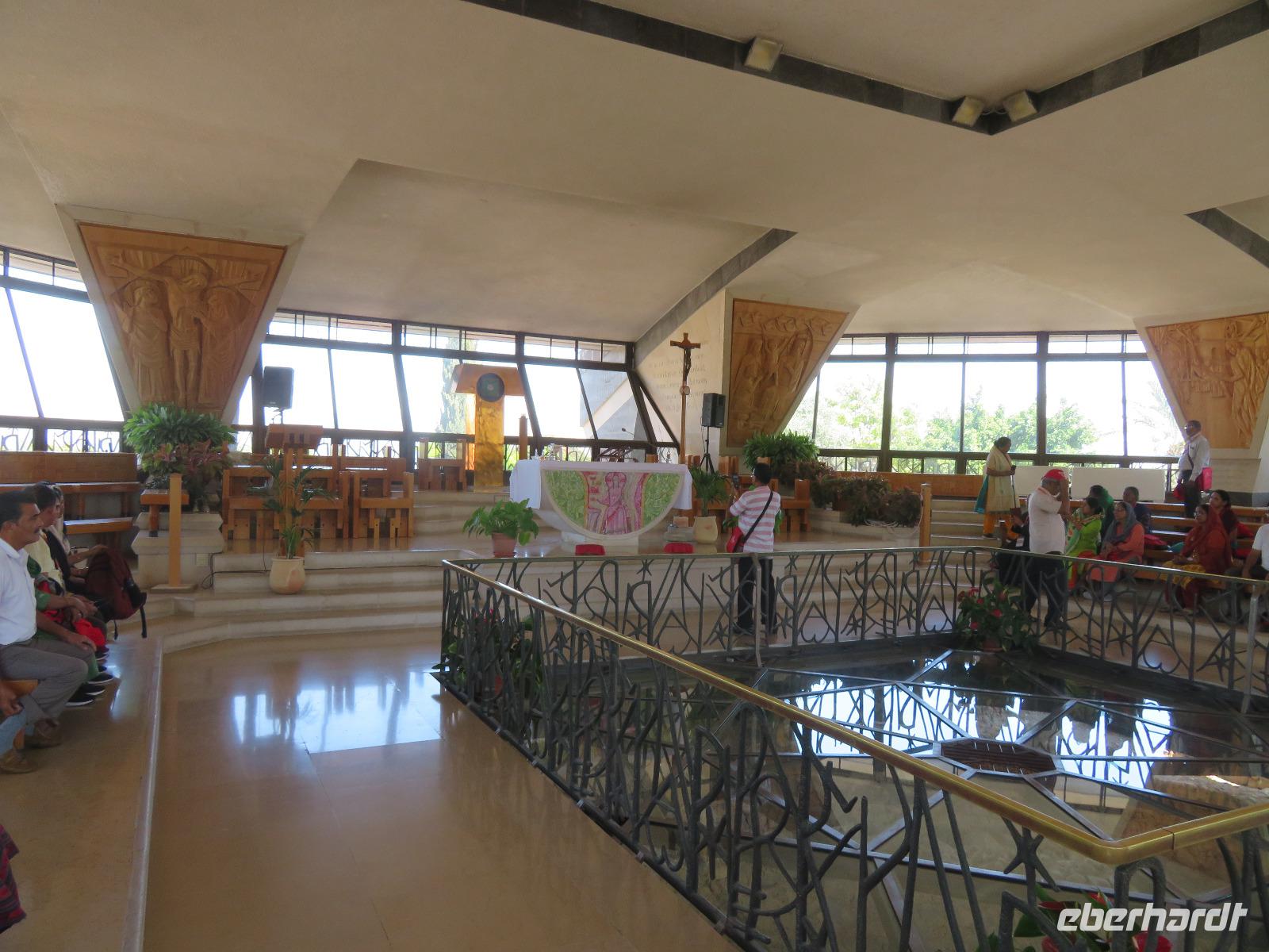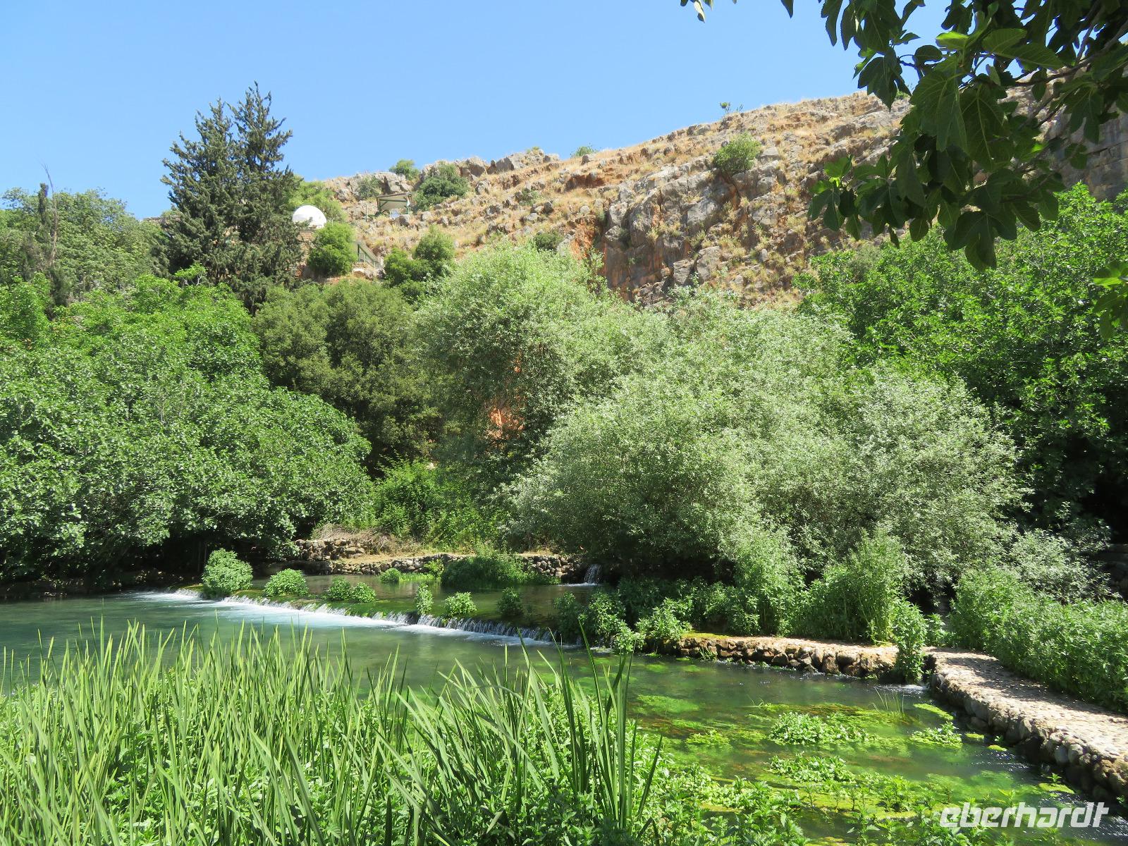 Unser heutiges Tagesprogramm führte uns von 200 Meter unter Null bis auf 1.000 Meter über Null. Wir fuhren durch grünes bergiges Land mit vielen Weinreben. Die Golanhöhen sind ebenfalls bekannt für den Anbau guter Weine. Den ersten Halt legten wir an der Grenze zu Syrien gegenüber dem Ort Quneitra ein. Ronit erklärte uns die Umstände der Situation, erwähnte den UN-stützpunkt, welcher direkt vor uns lag und wie der Golan von Israel annektiert wurde. Gespannt lauschten wir ihren Ausführungen und blickten über die Grenze hinweg. Unsere Fahrt führte uns durch mehrere kleine Drusendörfer, immer wieder könnten wir bis in die bergige Landschaft des Libanon blicken. Ronit erzählte von der beqegten Vergangenheit dieser Gegend, auch von den Angriffen 2006. Wir erreichten Banyas und besichtigten eine der üppig bewachsenen Quellen des Jordan-Flusses. Die blühenden Granatapfelbäume und das rauschende Wasser hielten uns im Bann. Ein weiterer Besichtigungspunkt erwartete uns in Tabgha. Hier besichtigten wir die berühmte Brotvermehrungskirche in der nach dem Matthäusevangelium die wundersame Brot- und Fischvermehrung bei der Speisung der Fünftausend stattfand. Da wir alle einen kleinen Hunger verspürten, kehrten wir im Anschluss Kinnereth ein um den berühmten St. Peter-Fisch zu essen. Wir reisten weiter nach Capernaum und besichtigten die Ruinen der Synagogen, in denen bereits zur Zeit Jesu gelehrt wurde. Eine kleine Eule bekam dabei ebenfalls unsere Aufmerksamkeit. Wir folgten weiter den biblischen Spuren immer entlang des Ufers des Sees Genezareth und fuhren hinauf zum Berg der Seligpreisung, wo Jesus seine berühmte Bergpredigt hielt. Schnell suchten wir uns ein schattiges Plätzchen und laßen diese bedeutungsvollen Verse aus der Bibel. Die anschließende Zeit besuchten wir die Kirche der Seligpreisungen, welche 1937 aus schwarzem Basalt und weißem Kalkgestein erbaut wurde. Abkühlung versprach eine Bootsfahrt auf dem See Genezareth. Entspannt ließen wir an Bord die Seele baumeln und tanzten am Ende sogar. Den ereignisreichen Tag ließen wir am Abend am Ufer des Sees in geselliger Runde ausklingen.