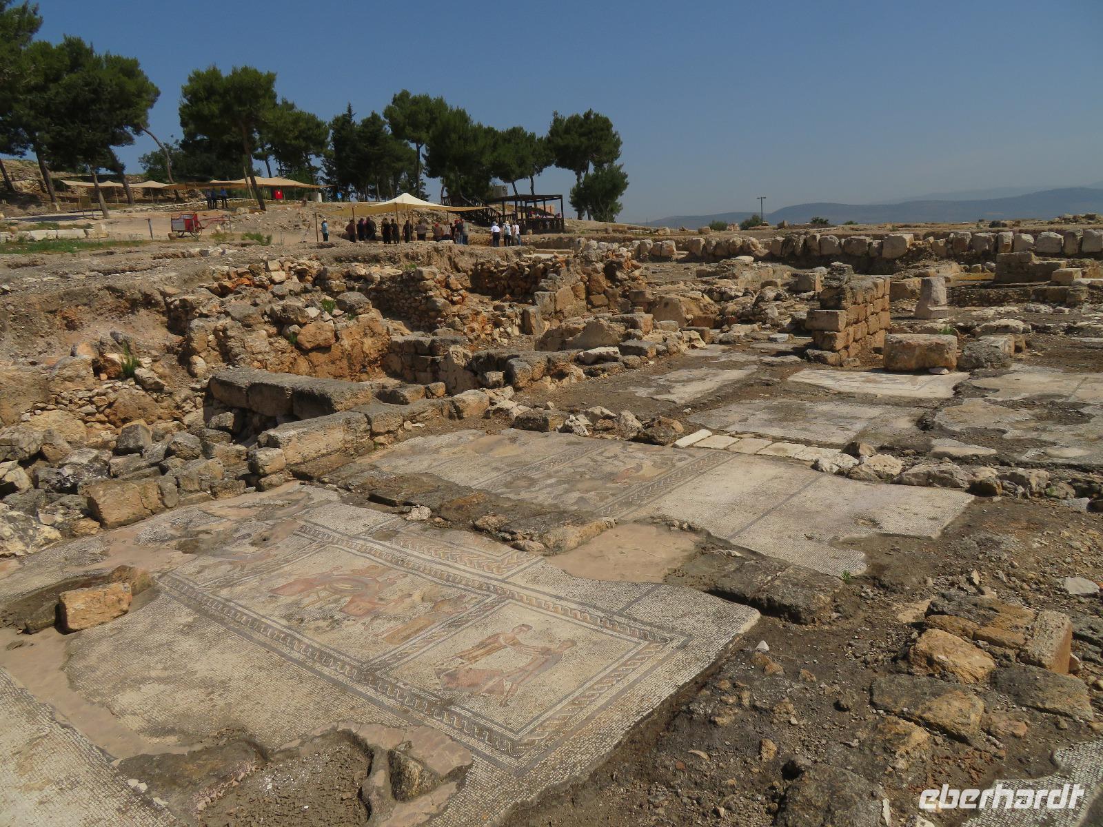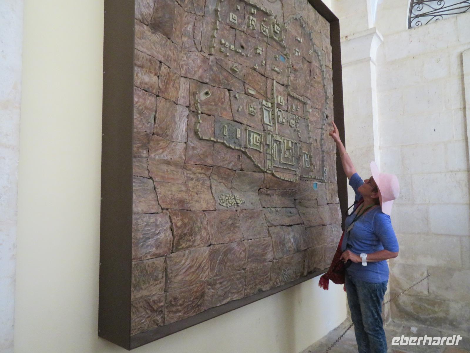 Heute hieß es Abschied nehmen vom idyllischen See Genezareth, denn unser Tagesziel war das berühmte Tote Meer. Doch bevor wir dies erreichten, zeigte uns Ronit das antike Sephoris mit wirklich wunderschönen Mosaikfußböden. Die Stadt wurde zu römischer Zeit völlig zerstört, gelangte jedoch durch den Wiederaufbau durch Herodes Antipas zu solch einer Schönheit, dass der römisch-jüdische Geschichtsschreiber Josephus Flavius die neu entstandene Stadt "Das Ornament von ganz Galiläa" nannte. Besonders bemerkenswert fanden wir alle "Mona Lisa Galiläas", eine Frauendarstellung mit einer enormen Detailtreue, welche für die antike Zeit beachtlich ist. Unsere Reise führte uns nun weiter nach Nazareth. Unser erster Besichtigungspunkt war der Marienbrunnen und die griechisch-orthodoxe Verkündigungskirche. Wir bummelten durch schmale Straßen und Gassen, durch einen bunten Souk bis zur katholischen Verkündigungsbasilika, welche auf den alten Grundmauern einer Kreuzfahrerkirche errichtet wurde. Hier erschien Maria der Erzengel Gabriel, der ihr die Geburt eines Sohnes verkündigte. Nachdem wir außen die zahlreichen Marienbildnisse aus aller Welt betrachteten, besichtigten wir das sehenswerte Innere der sehr modern wirkenden Kirche mit den Verkündigungsgrotten. Da die Tagestemperaturen sehr hoch waren, beschlossen wir, in einer Oase eine kleine erfrischende Bade- und Picknickpause einzulegen. Anschließend reisten wir zur antiken Stadt Beit She´an sowie durch das karge Jordantal zum Toten Meer. Gespannt schauten wir auf den an uns vorbeiziehenden Salzsee, welcher mehr als 400 Meter unter dem Meeresspiegel liegt. Im Hotel angekommen, bezogen wir unsere Zimmer und genossen am Abend ein großes köstliches Buffet.